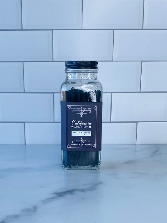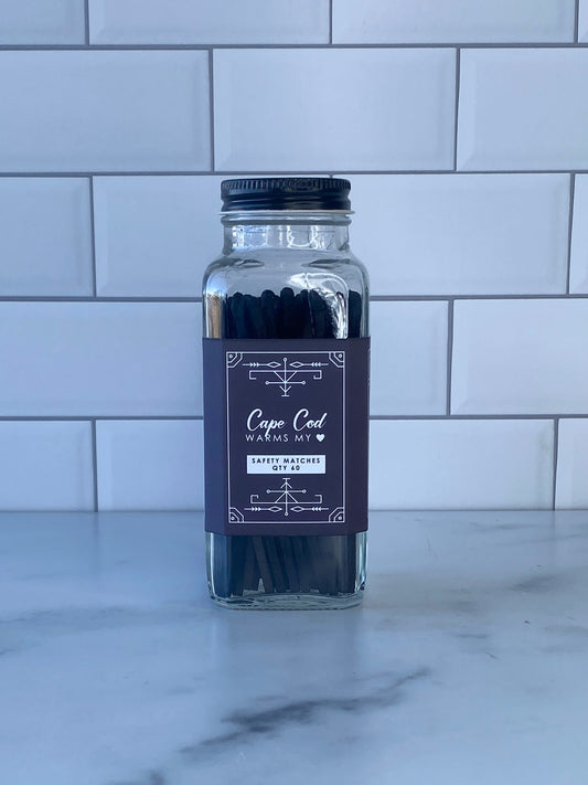 Our stylish safety matches are the perfect gift along side one of our soy coconut wax candles. Each clear jar contains 60 matches with a striker located on the bottom. Be sure to use caution and handle with care. Close the bottle before striking the match. Always keep out of reach of children and pets.