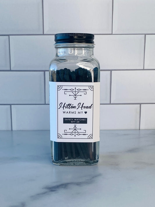 Our stylish safety matches are the perfect gift along side one of our soy coconut wax candles. Each clear jar contains 60 matches with a striker located on the bottom. Be sure to use caution and handle with care. Close the bottle before striking the match. Always keep out of reach of children and pets.