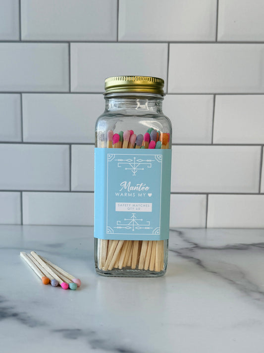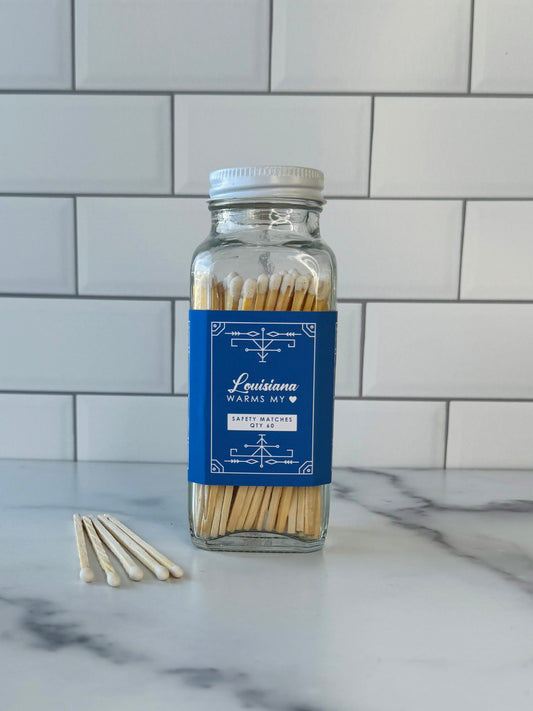 Our stylish safety matches are the perfect gift along side one of our soy coconut wax candles. Each clear jar contains 60 matches with a striker located on the bottom. Be sure to use caution and handle with care. Close the bottle before striking the match. Always keep out of reach of children and pets.