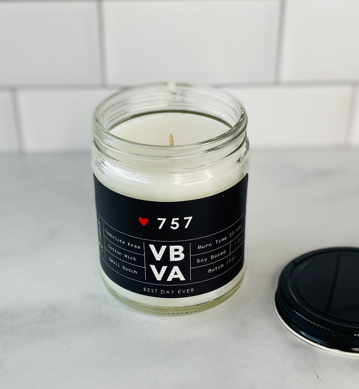 757 Area Code Candle Eastern Shore/Hampton Roads/Virginia Beach, Virginia- Rambling Caravan candles are inspired by home, travel and adventure. Made from a soy/coconut based wax blend, the candles are hand poured in Virginia Beach, Virginia. We use phthalate free fragrances and have an assortment of fragrances from which to choose. Many of our candles have different color labels to choose from as well. We use cotton wicks with no zinc or lead. We do not use additives, nor scent enhancers or UV blockers. The burn time is approximately 50 hours.