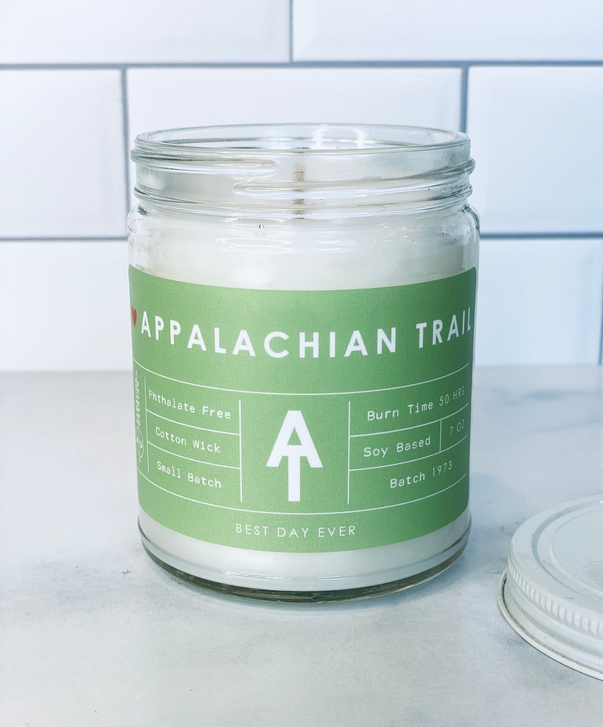 Appalachian Trail AT Candle - Rambling Caravan candles are inspired by home, travel and adventure. Made from a soy/coconut based wax blend, the candles are hand poured in Virginia Beach, Virginia. We use phthalate free fragrances and have an assortment of fragrances from which to choose. Many of our candles have different color labels to choose from as well. We use cotton wicks with no zinc or lead. We do not use additives, nor scent enhancers or UV blockers. The burn time is approximately 50 hours.