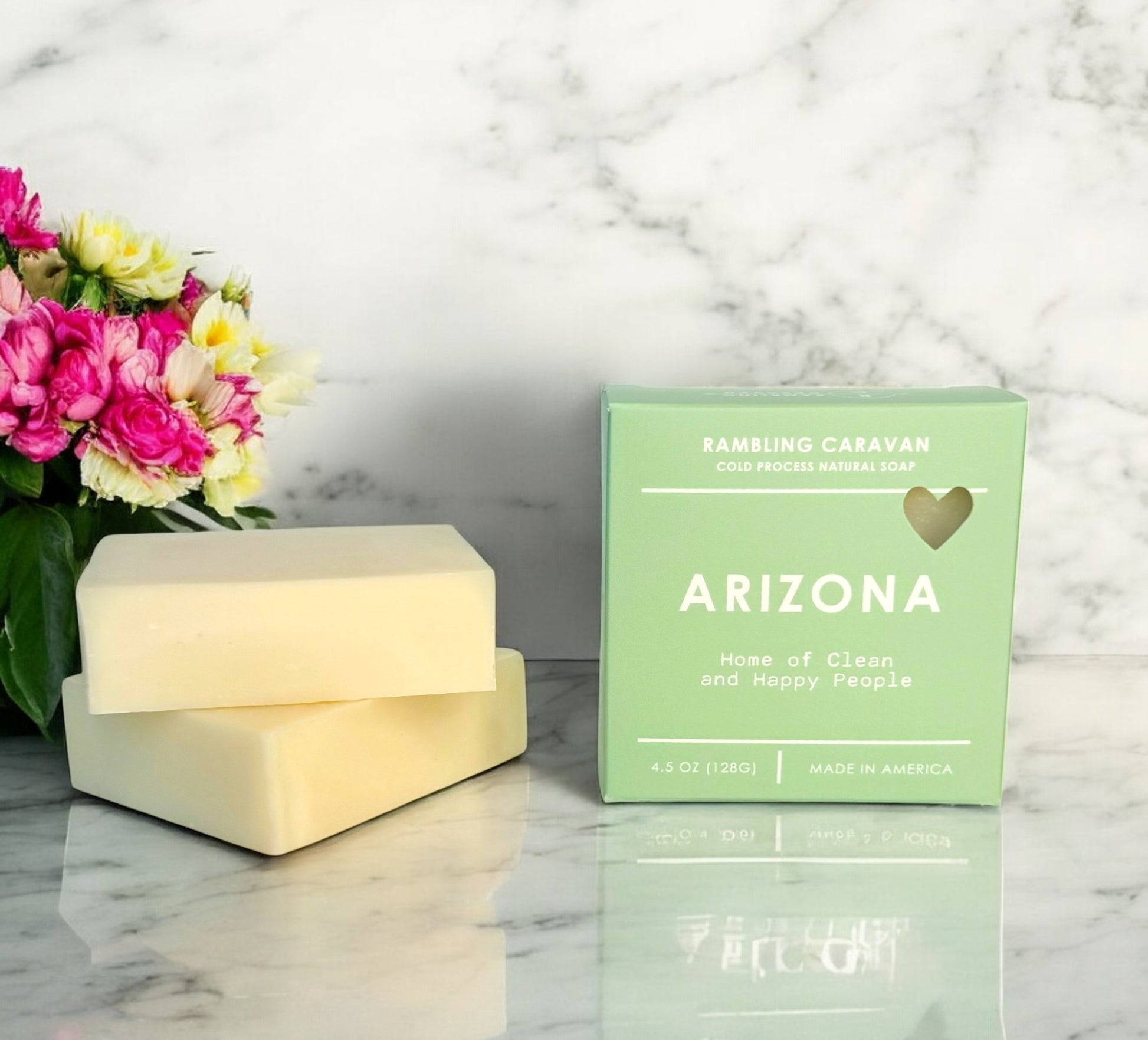 Our 5 ounce natural cold process bar soap is made in Virginia and features different destinations. The scent of this soap is whatever you happen to get. Just like with people. People from everywhere are a mixed bag of nuts. Accepting people for who they are and living in peace is key to a happy life. If this soap scent isn't one you love, say a prayer and pass it along to one of your friends, family members, or neighbors. Somebody will love it. FYI: We only use the best scents.
