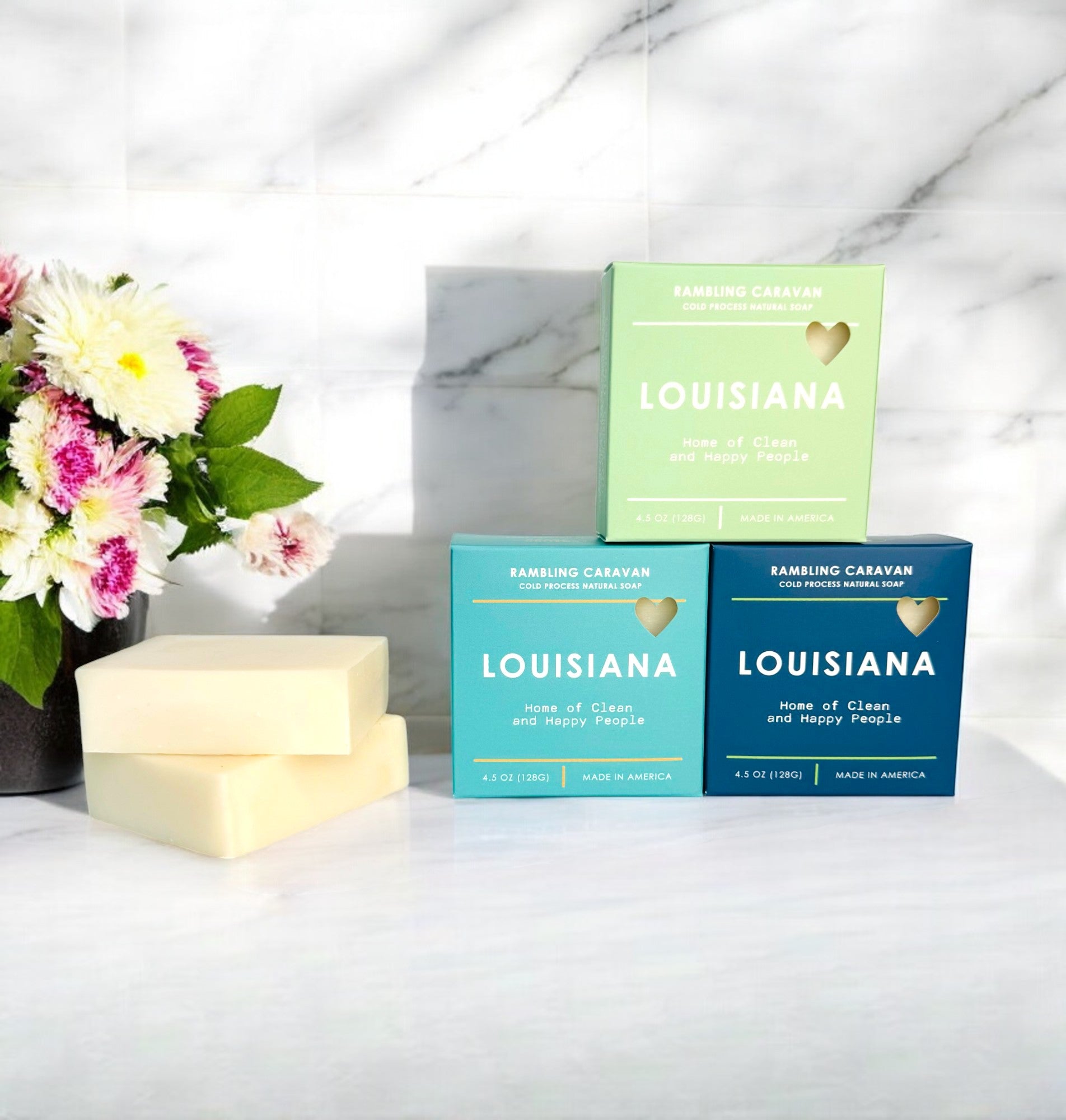 Our 5 ounce natural cold process bar soap is made in Virginia and features different destinations. The scent of this soap is whatever you happen to get. Just like with people. People from everywhere are a mixed bag of nuts. Accepting people for who they are and living in peace is key to a happy life. If this soap scent isn't one you love, say a prayer and pass it along to one of your friends, family members, or neighbors. Somebody will love it. FYI: We only use the best scents.