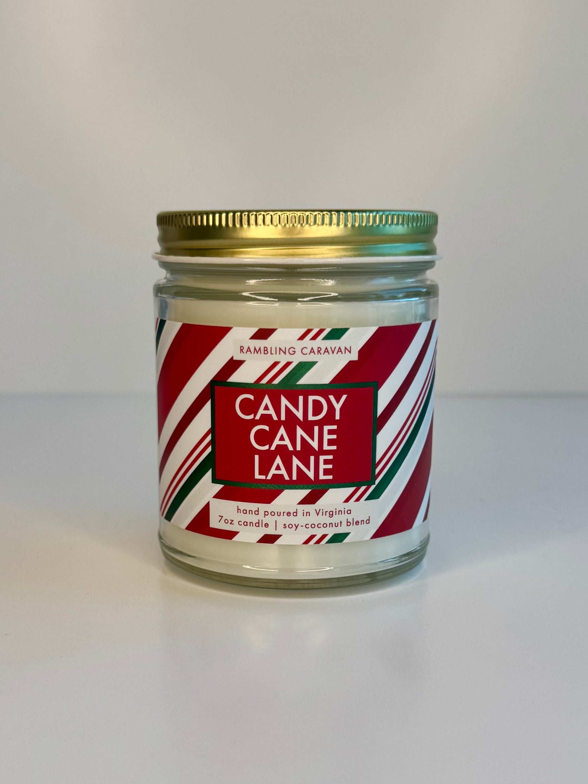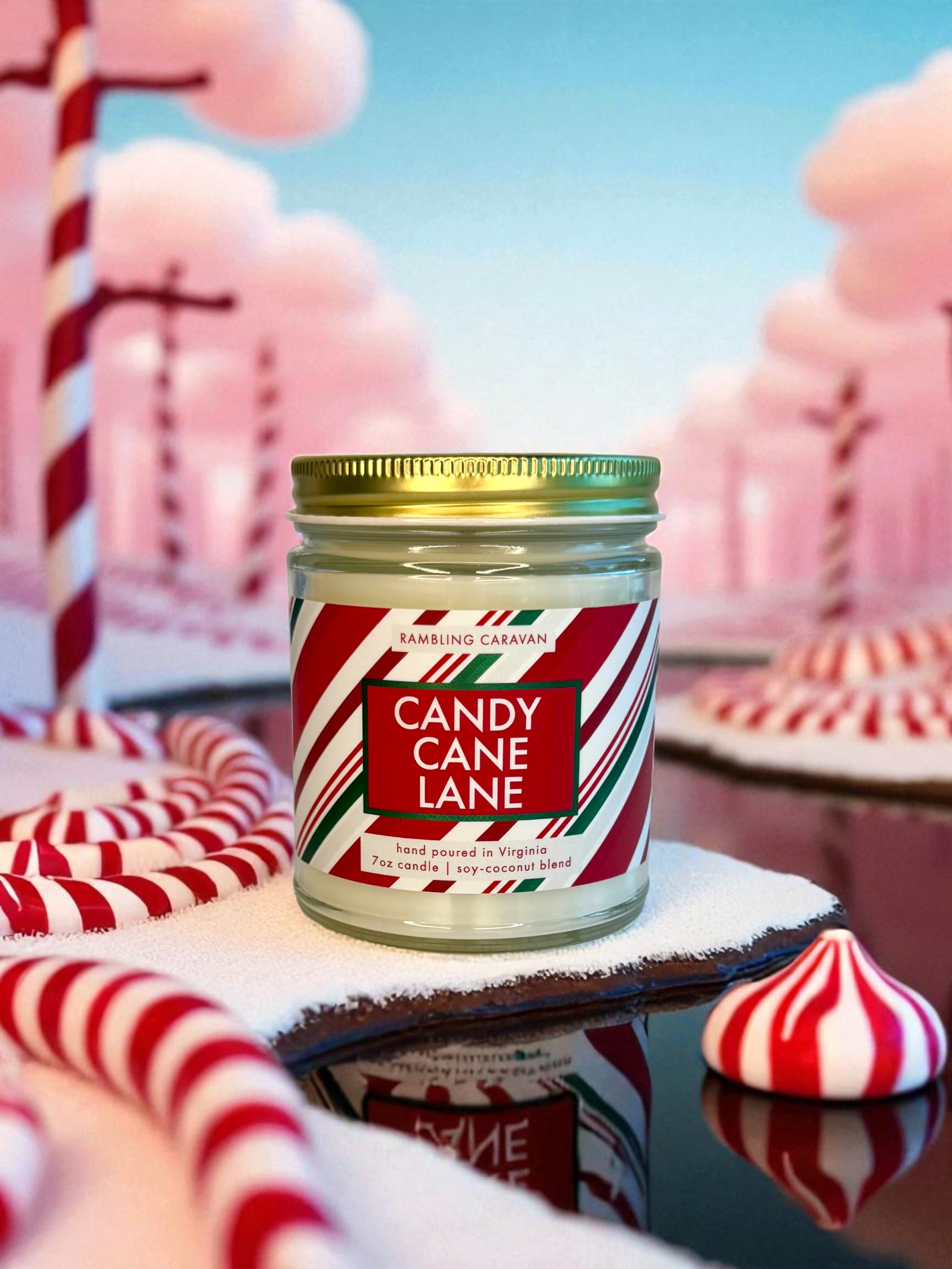 Candy Cane Lane Candle - The Candy Cane Lane aroma begins with bright and refreshing peppermint blended with sweet sugar crystals.