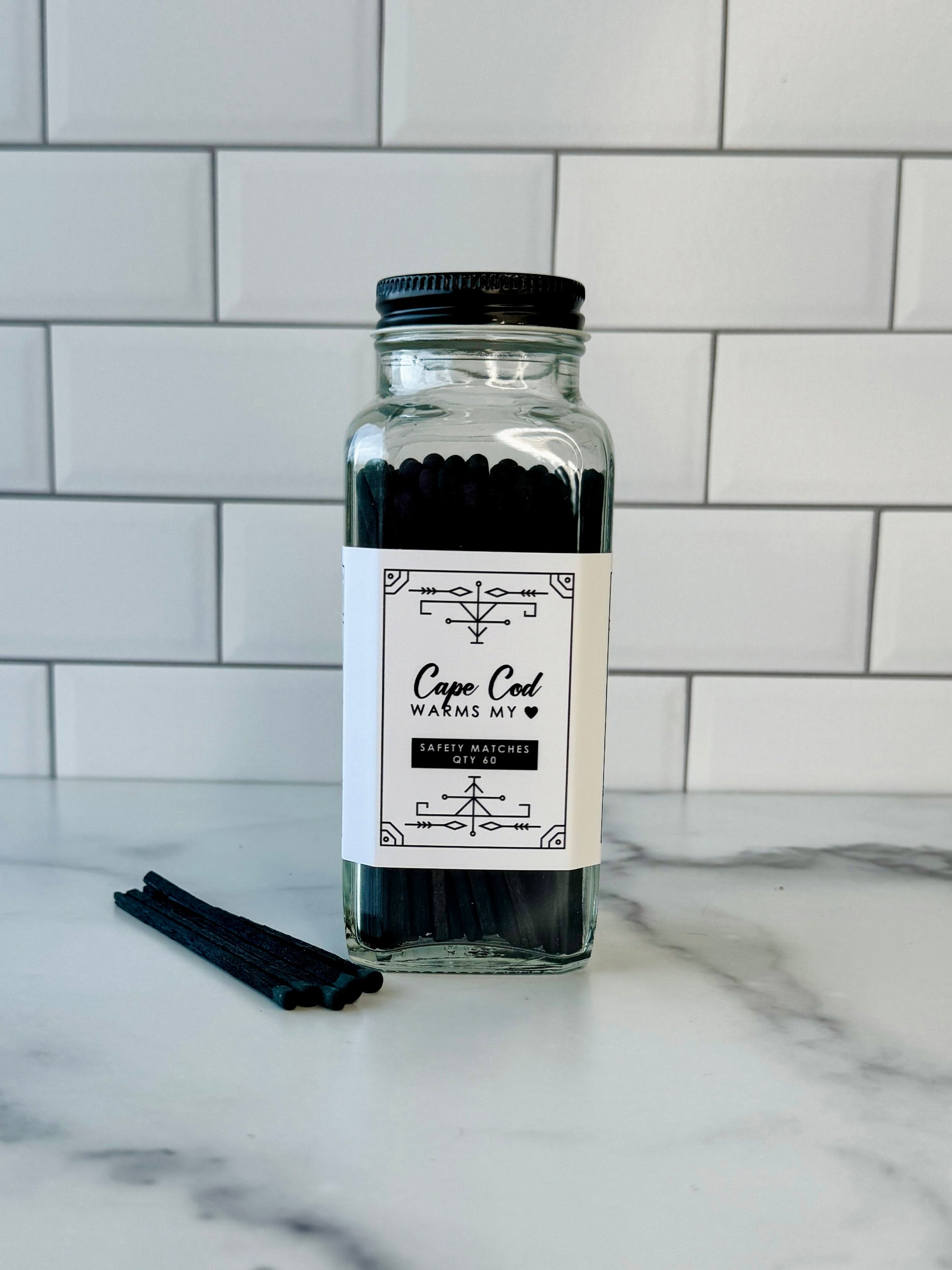 Our stylish safety matches are the perfect gift along side one of our soy coconut wax candles. Each clear jar contains 60 matches with a striker located on the bottom. Be sure to use caution and handle with care. Close the bottle before striking the match. Always keep out of reach of children and pets.