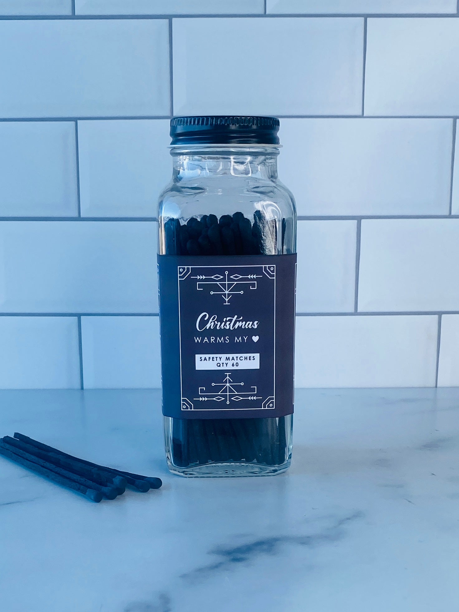 Our stylish safety matches are the perfect gift along side one of our soy coconut wax candles. Each clear jar contains 60 matches with a striker located on the bottom. Be sure to use caution and handle with care. Close the bottle before striking the match. Always keep out of reach of children and pets.
