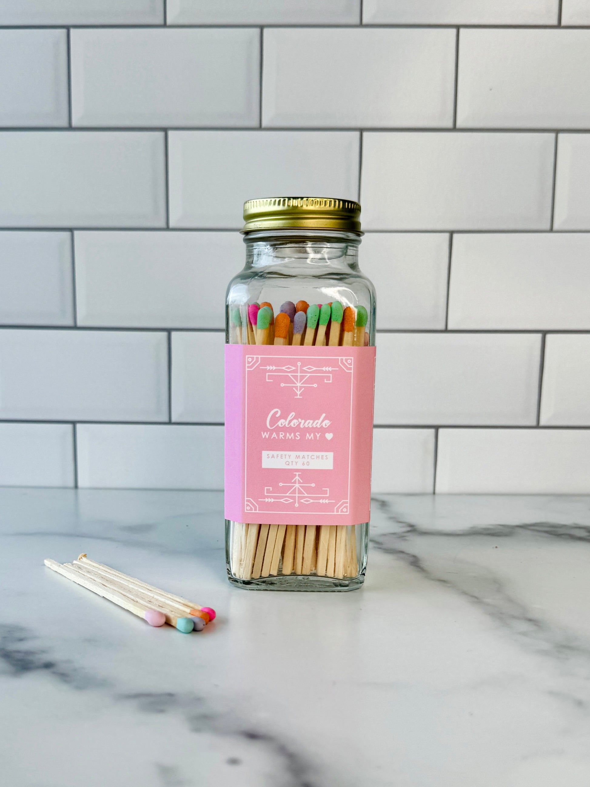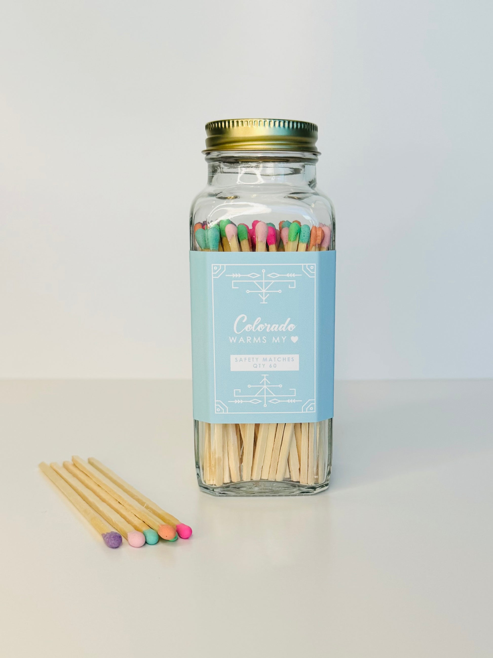 Our stylish safety matches are the perfect gift along side one of our soy coconut wax candles. Each clear jar contains 60 matches with a striker located on the bottom. Be sure to use caution and handle with care. Close the bottle before striking the match. Always keep out of reach of children and pets.