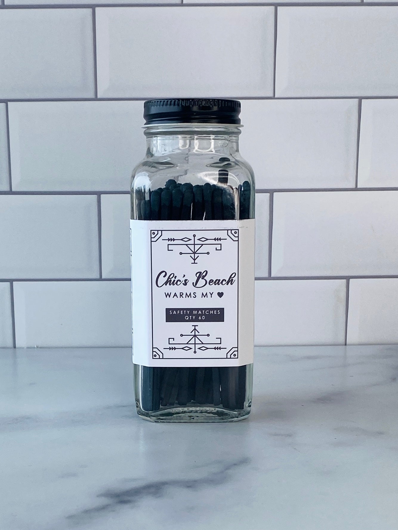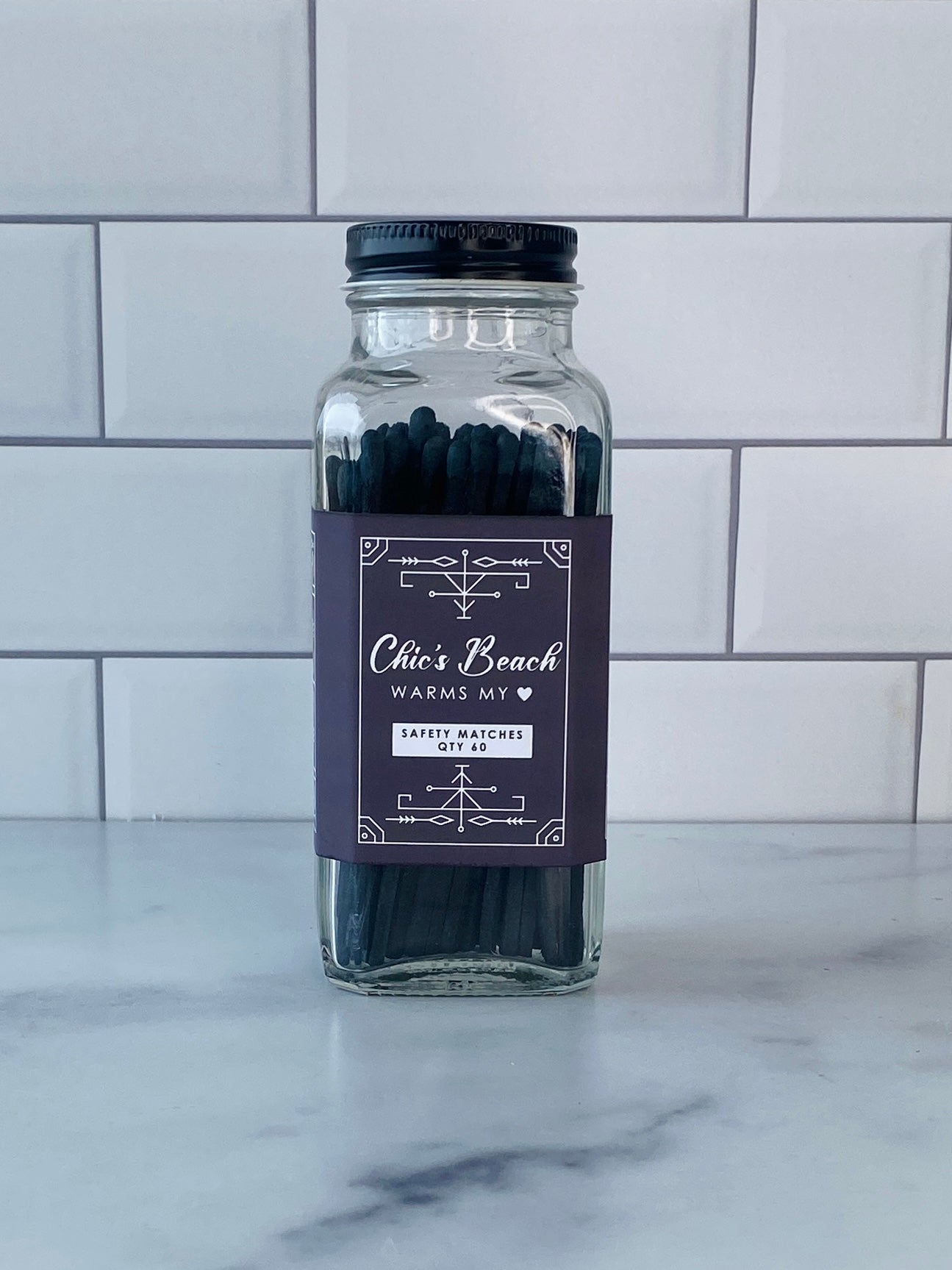 Our stylish safety matches are the perfect gift along side one of our soy coconut wax candles. Each clear jar contains 60 matches with a striker located on the bottom. Be sure to use caution and handle with care. Close the bottle before striking the match. Always keep out of reach of children and pets.