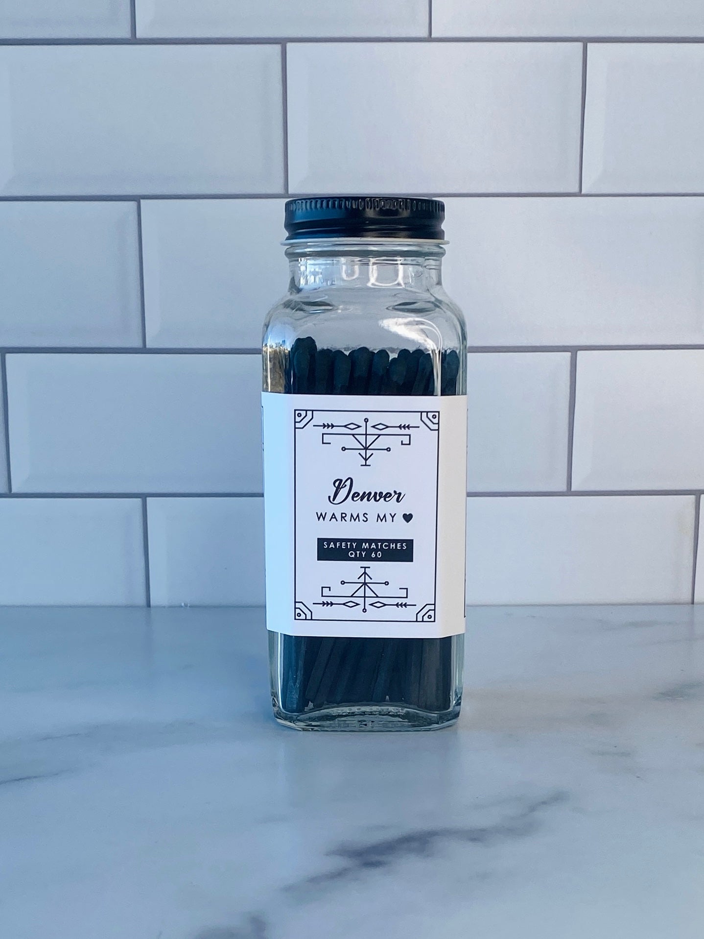 Our stylish safety matches are the perfect gift along side one of our soy coconut wax candles. Each clear jar contains 60 matches with a striker located on the bottom. Be sure to use caution and handle with care. Close the bottle before striking the match. Always keep out of reach of children and pets.