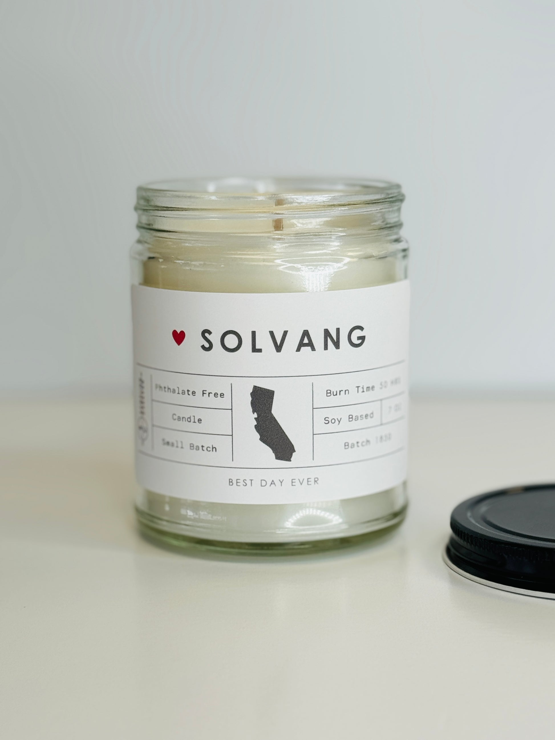 Solvang, California Candle - Rambling Caravan candles are inspired by home, travel and adventure. Made from a soy/coconut based wax blend, the candles are hand poured in Virginia Beach, Virginia. We use phthalate free fragrances and have an assortment of fragrances from which to choose. Many of our candles have different color labels to choose from as well. We use cotton wicks with no zinc or lead. We do not use additives, nor scent enhancers or UV blockers. The burn time is approximately 50 hours.