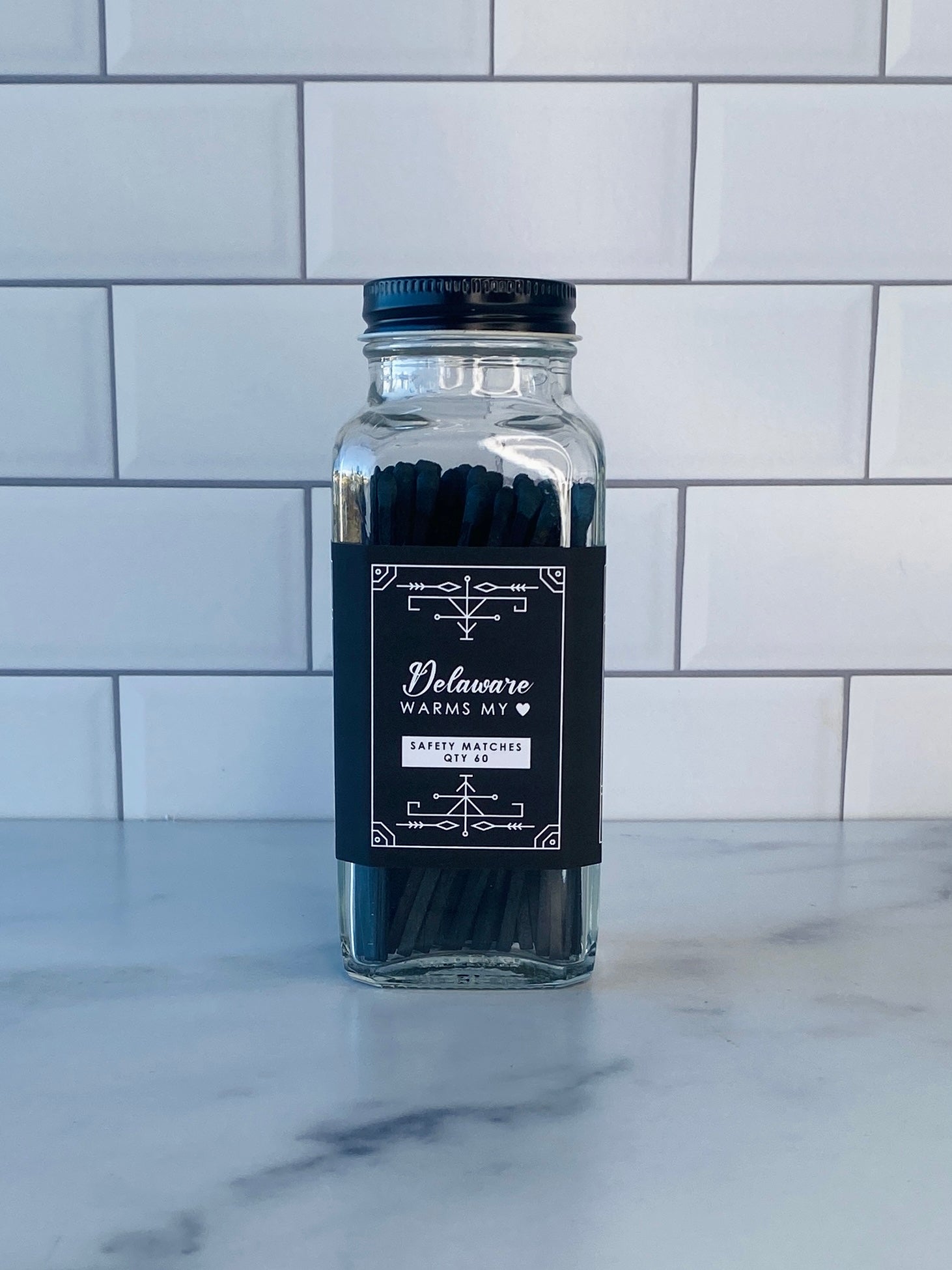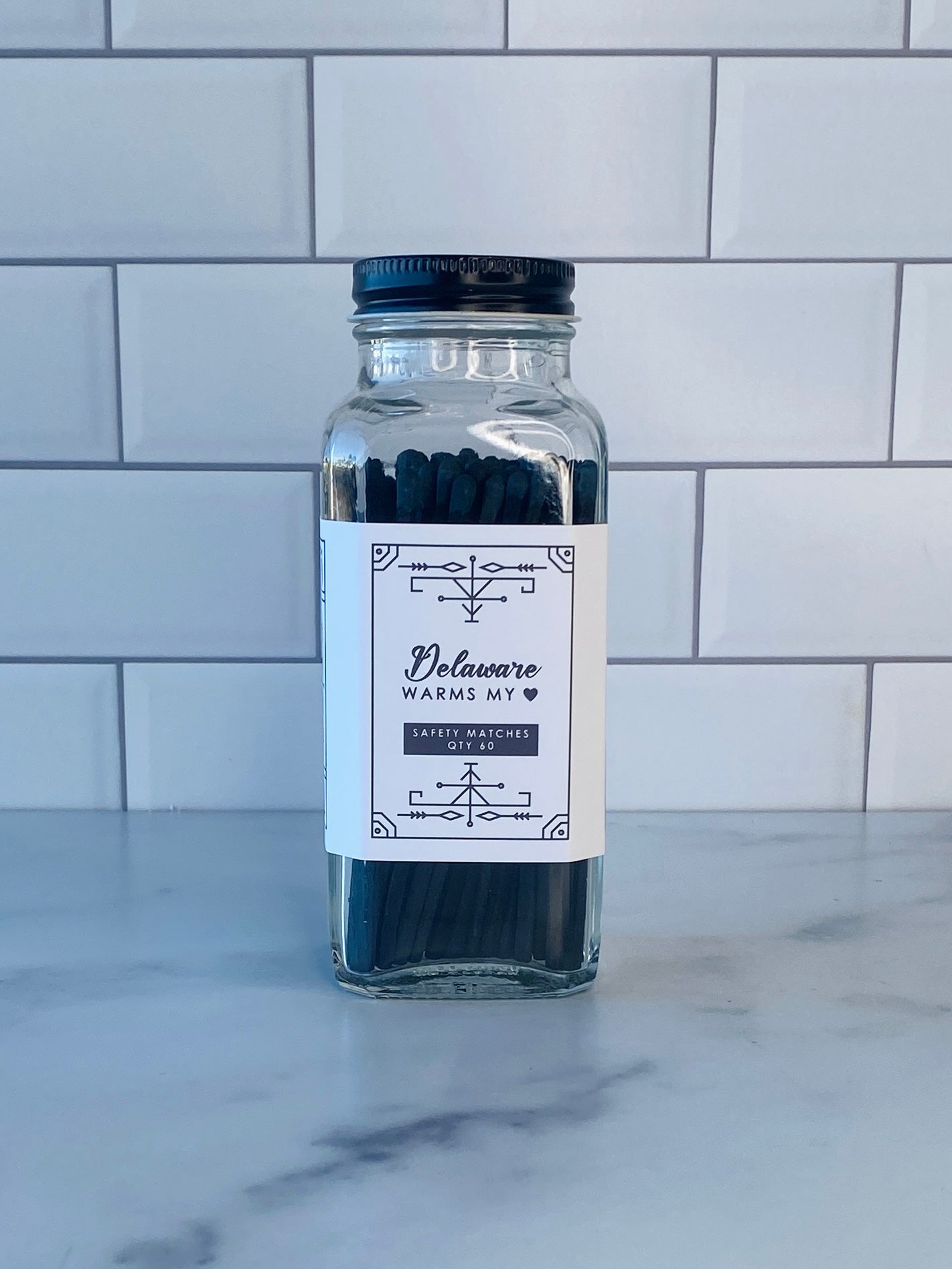 Our stylish safety matches are the perfect gift along side one of our soy coconut wax candles. Each clear jar contains 60 matches with a striker located on the bottom. Be sure to use caution and handle with care. Close the bottle before striking the match. Always keep out of reach of children and pets.