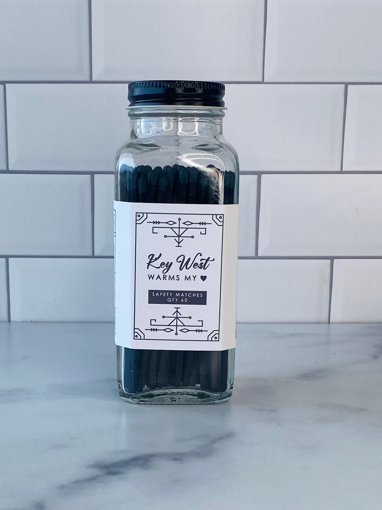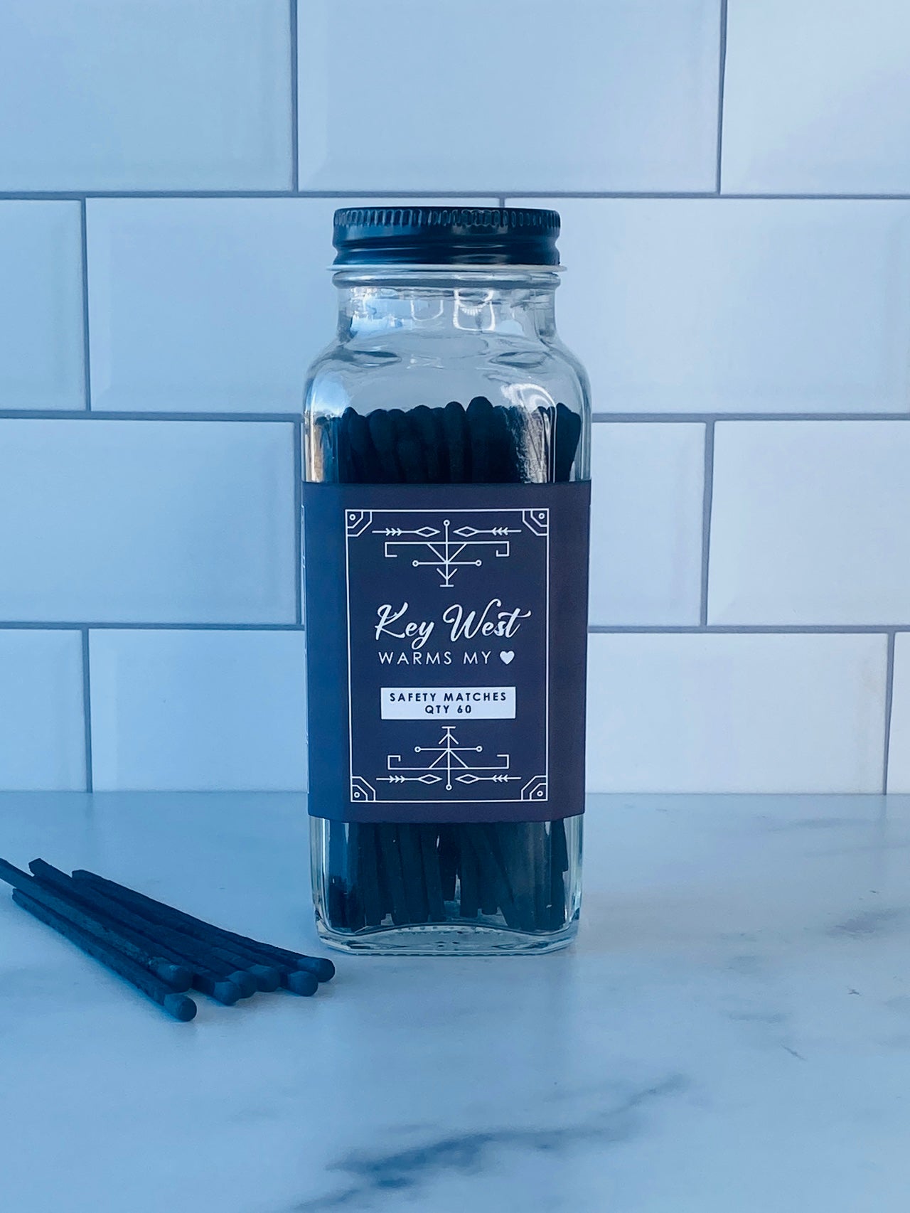 Our stylish safety matches are the perfect gift along side one of our soy coconut wax candles. Each clear jar contains 60 matches with a striker located on the bottom. Be sure to use caution and handle with care. Close the bottle before striking the match. Always keep out of reach of children and pets.