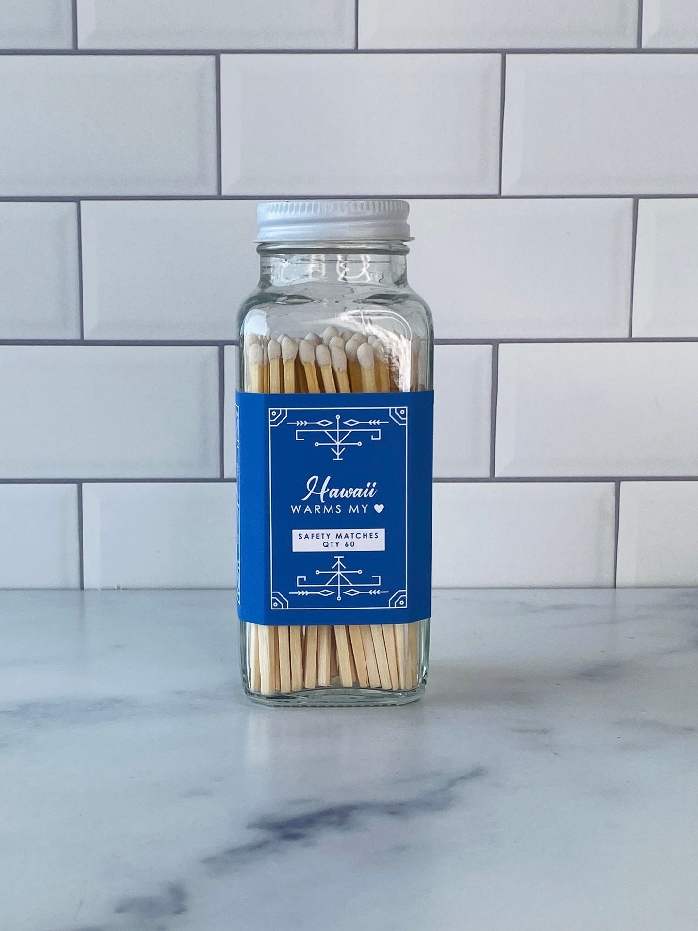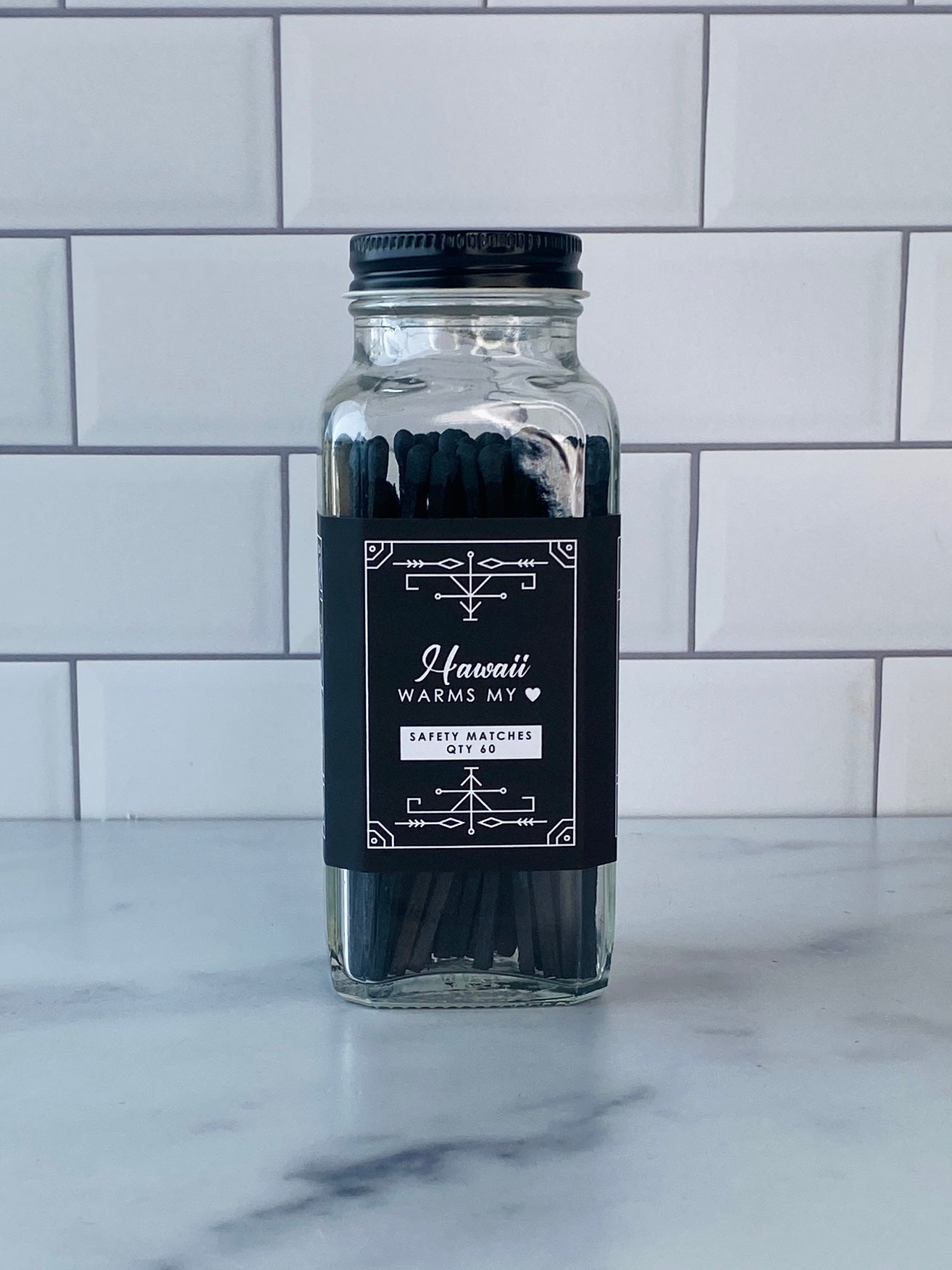 Our stylish safety matches are the perfect gift along side one of our soy coconut wax candles. Each clear jar contains 60 matches with a striker located on the bottom. Be sure to use caution and handle with care. Close the bottle before striking the match. Always keep out of reach of children and pets.