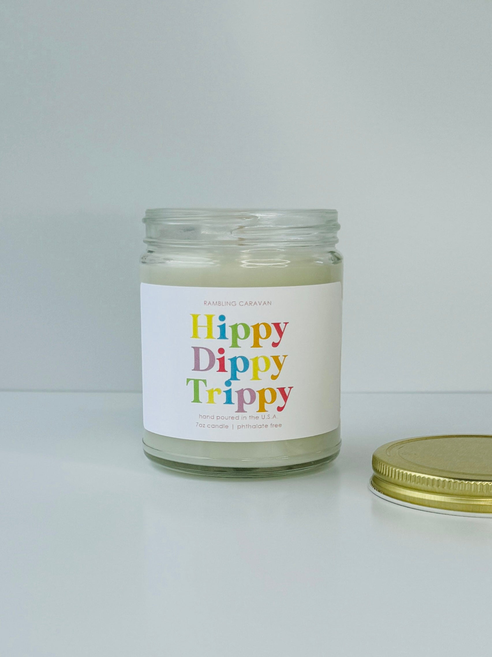 Hippy, Dippy, Trippy Candle - Rambling Caravan candles are inspired by home, travel and adventure. Made from a soy/coconut based wax blend, the candles are hand poured in Virginia Beach, Virginia. We use phthalate free fragrances and have an assortment of fragrances from which to choose. Many of our candles have different color labels to choose from as well. We use cotton wicks with no zinc or lead. We do not use additives, nor scent enhancers or UV blockers. The burn time is approximately 50 hours.