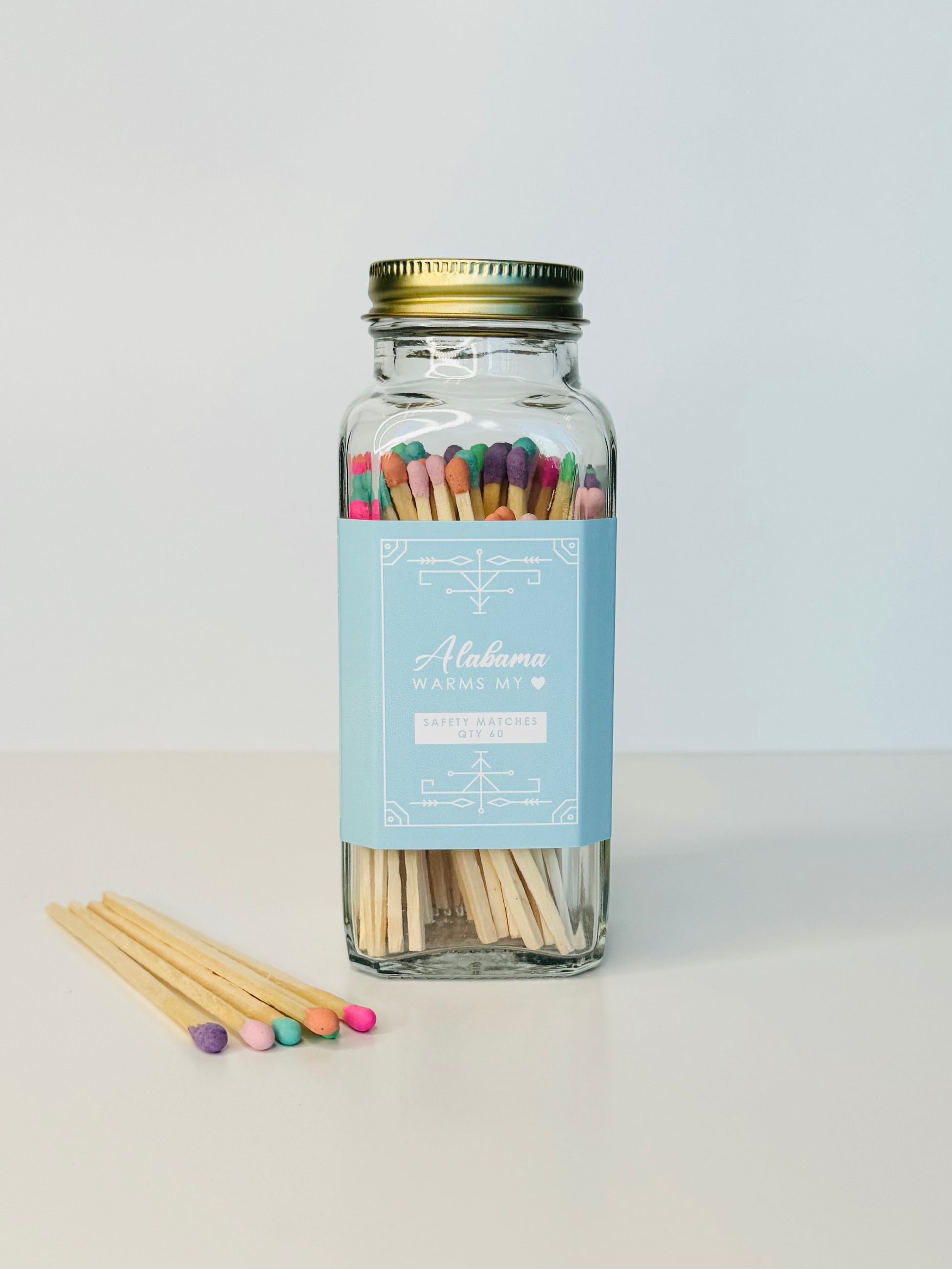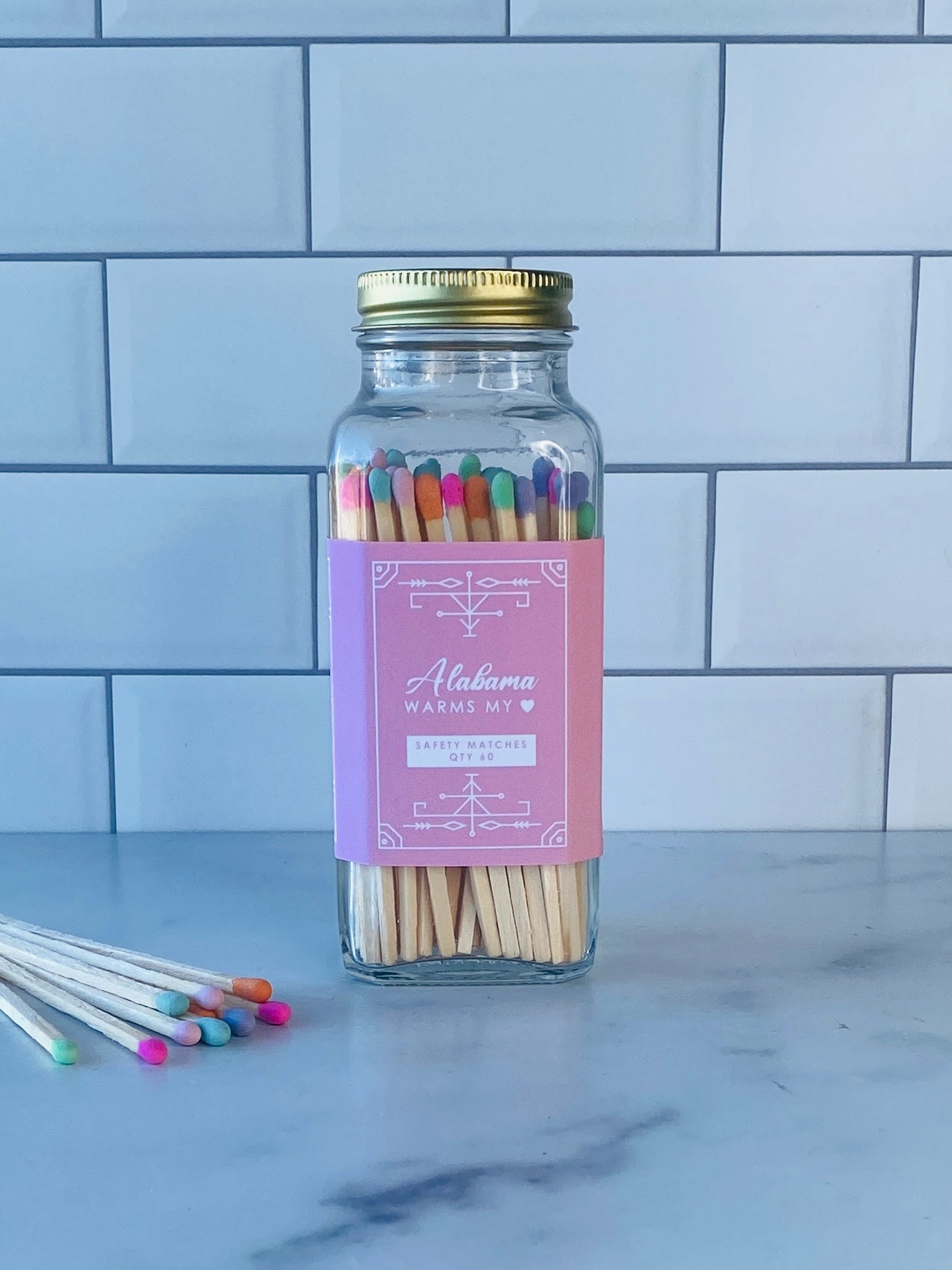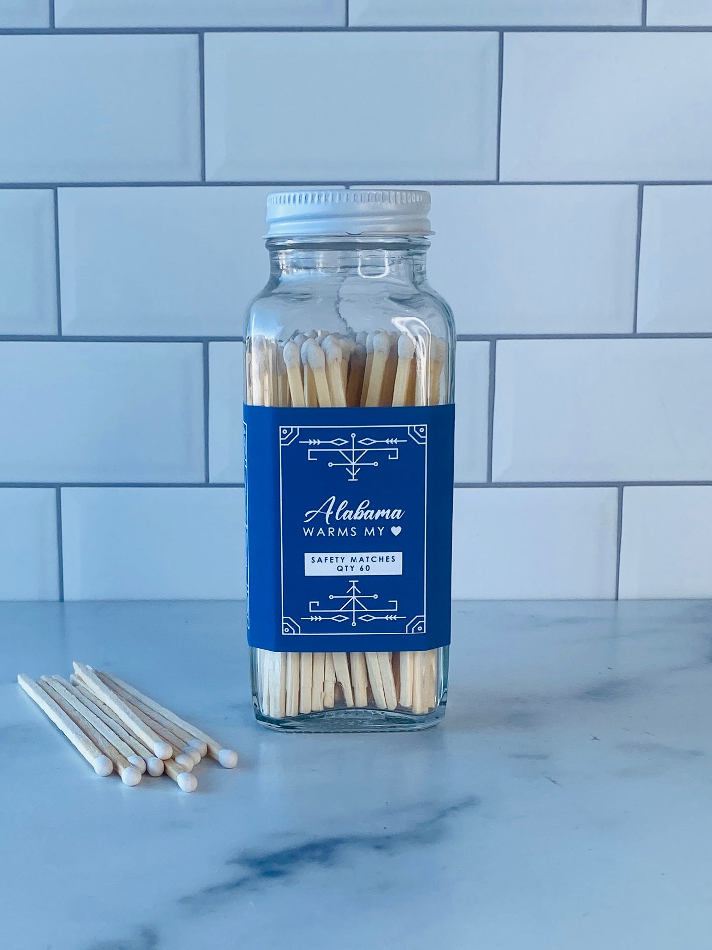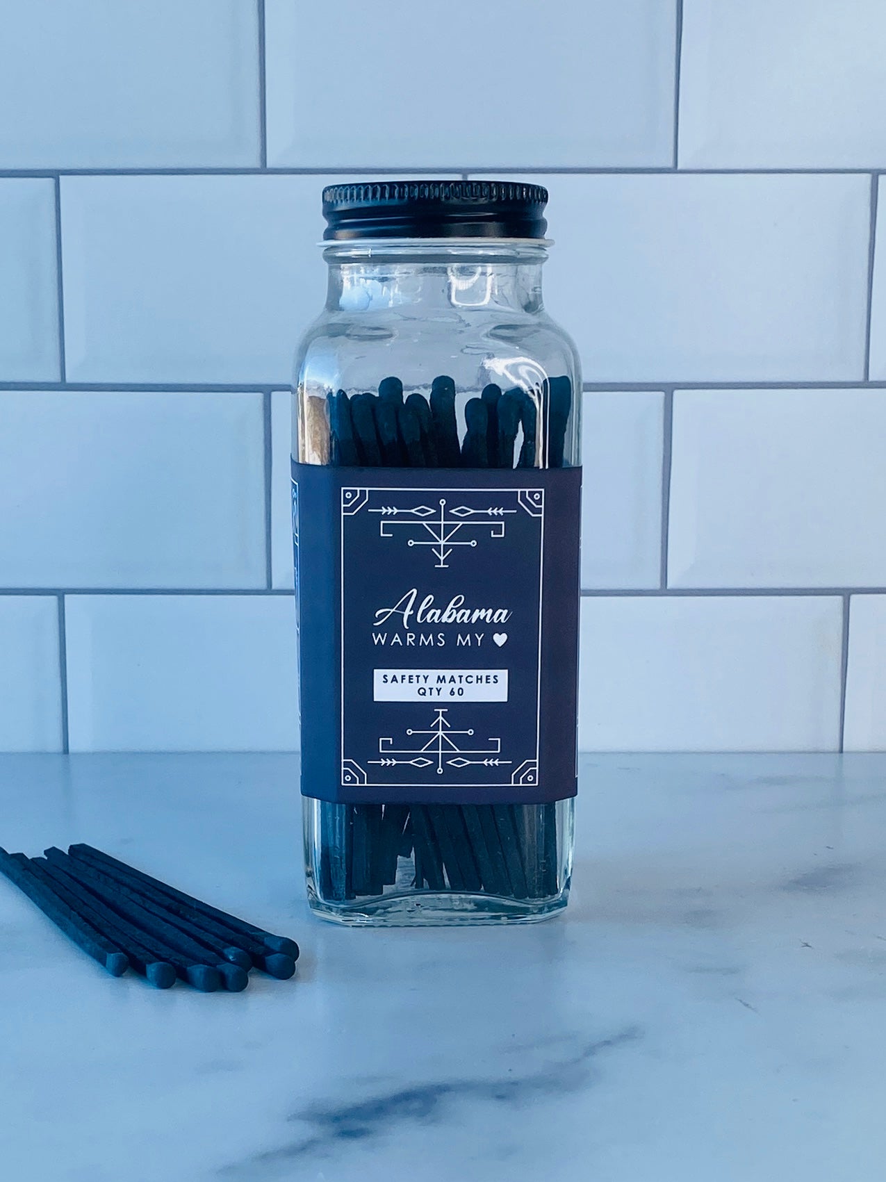 Our stylish safety matches are the perfect gift along side one of our soy coconut wax candles. Each clear jar contains 60 matches with a striker located on the bottom. Be sure to use caution and handle with care. Close the bottle before striking the match. Always keep out of reach of children and pets.