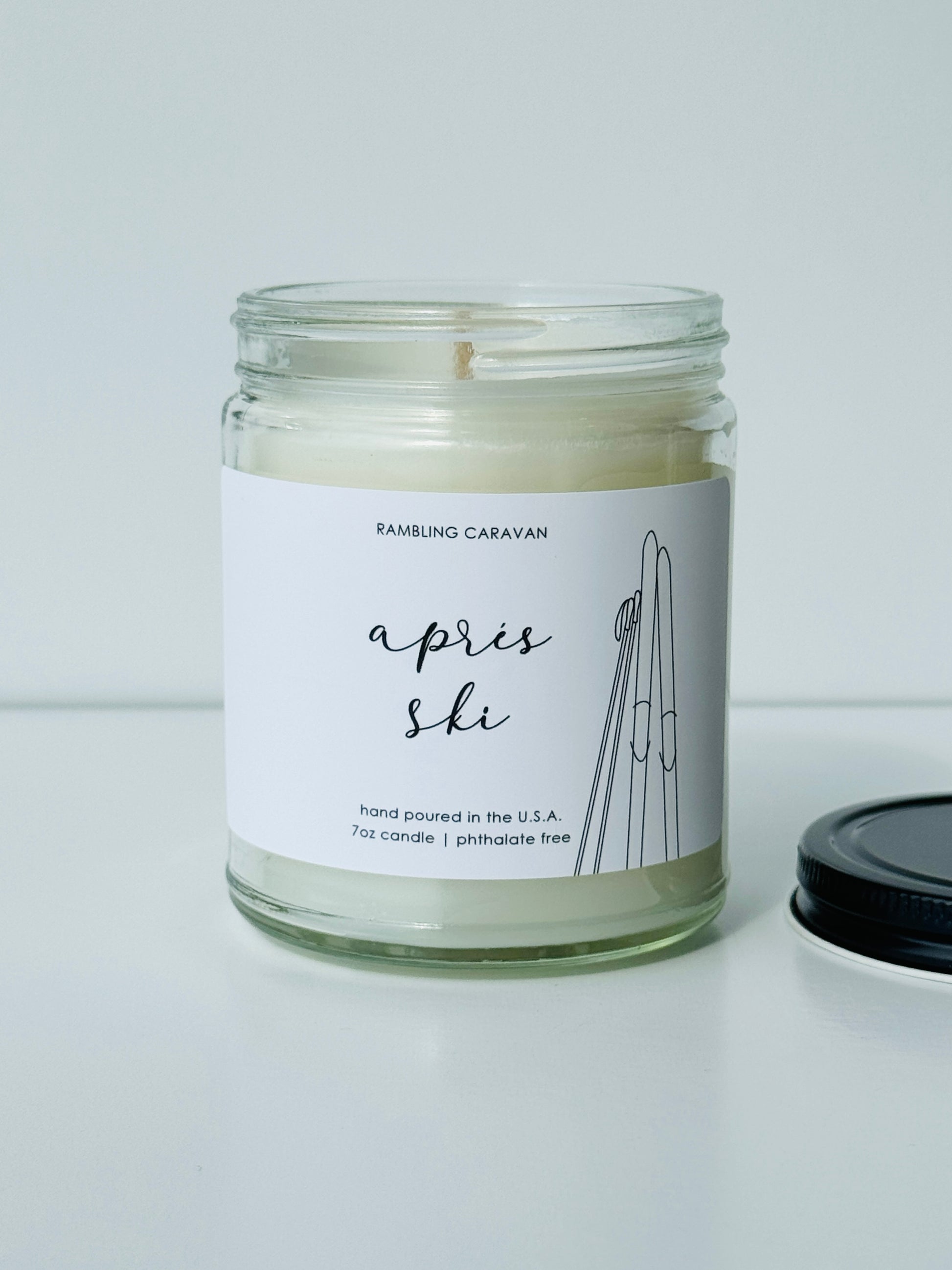 Aprés Ski - Rambling Caravan candles are inspired by home, travel and adventure. Made from a soy/coconut based wax blend, the candles are hand poured in Virginia Beach, Virginia. We use phthalate free fragrances and have an assortment of fragrances from which to choose. Many of our candles have different color labels to choose from as well. We use cotton wicks with no zinc or lead. We do not use additives, nor scent enhancers or UV blockers. The burn time is approximately 50 hours.