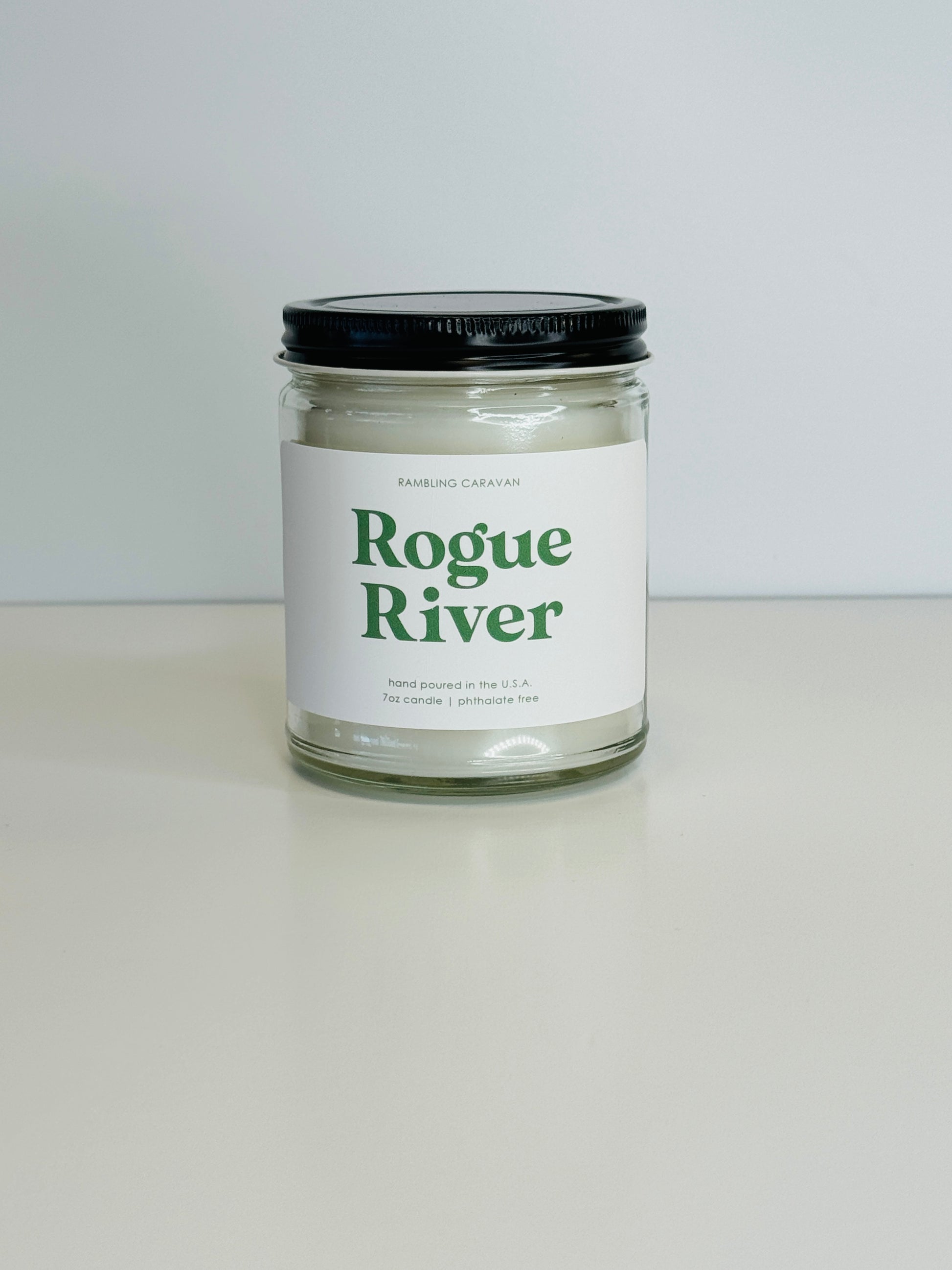 Rogue River, Oregon Candle - Rambling Caravan candles are inspired by home, travel and adventure. Made from a soy/coconut based wax blend, the candles are hand poured in Virginia Beach, Virginia. We use phthalate free fragrances and have an assortment of fragrances from which to choose. Many of our candles have different color labels to choose from as well. We use cotton wicks with no zinc or lead. We do not use additives, nor scent enhancers or UV blockers. The burn time is approximately 50 hours.