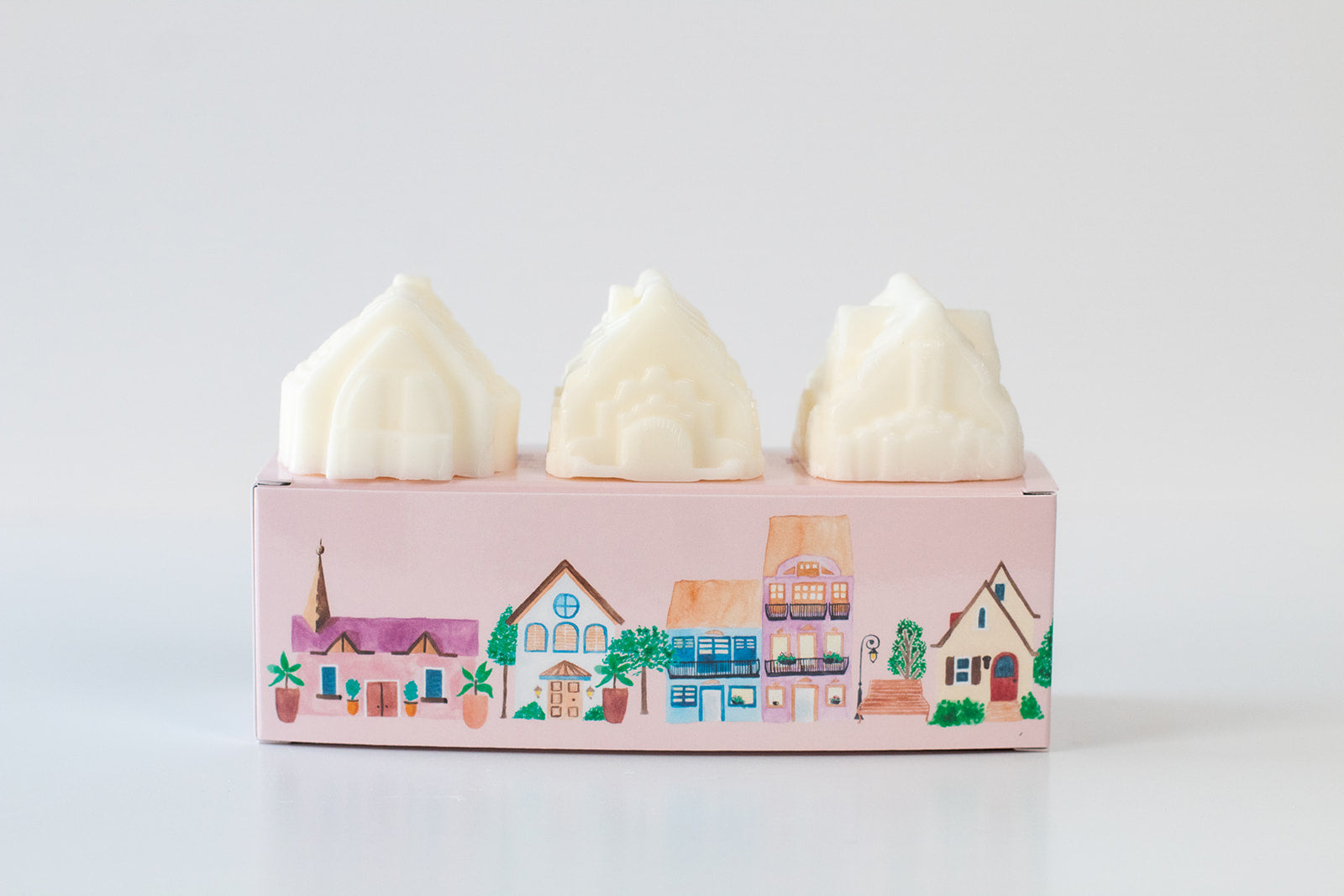 Small Town is apart of our Home Sweet Home Wax Melt Collection. Small Town contains 3 scented wax melts in the following fragrances: Sea Salt & Orchid, Grapefruit & Mint and Volcano Dupe. These can be used with tea-light warmers or electric warmers approved for wax melts.
