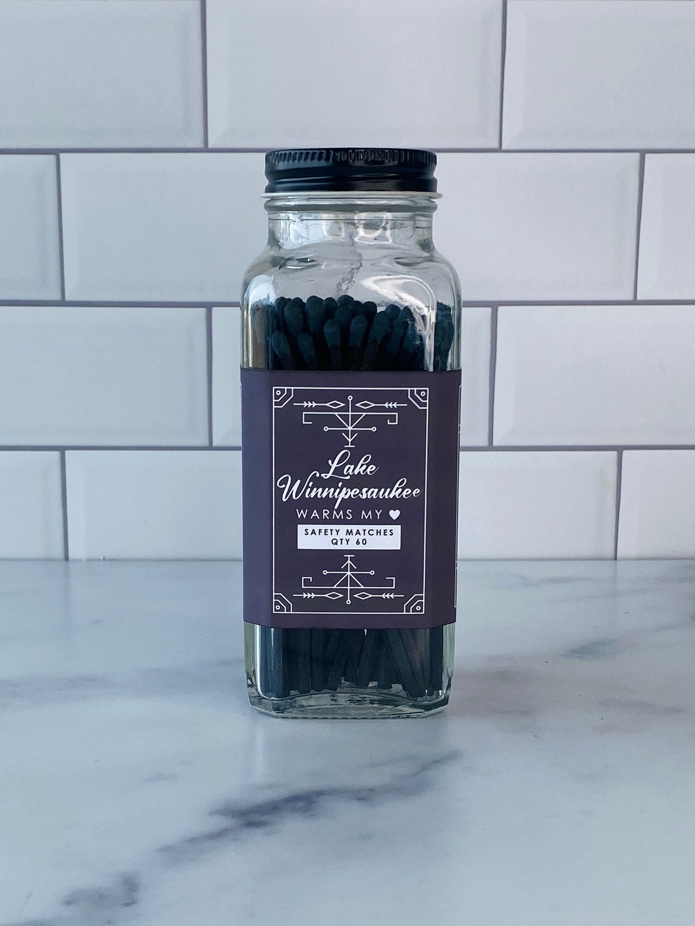 Our stylish safety matches are the perfect gift along side one of our soy coconut wax candles. Each clear jar contains 60 matches with a striker located on the bottom. Be sure to use caution and handle with care. Close the bottle before striking the match. Always keep out of reach of children and pets.
