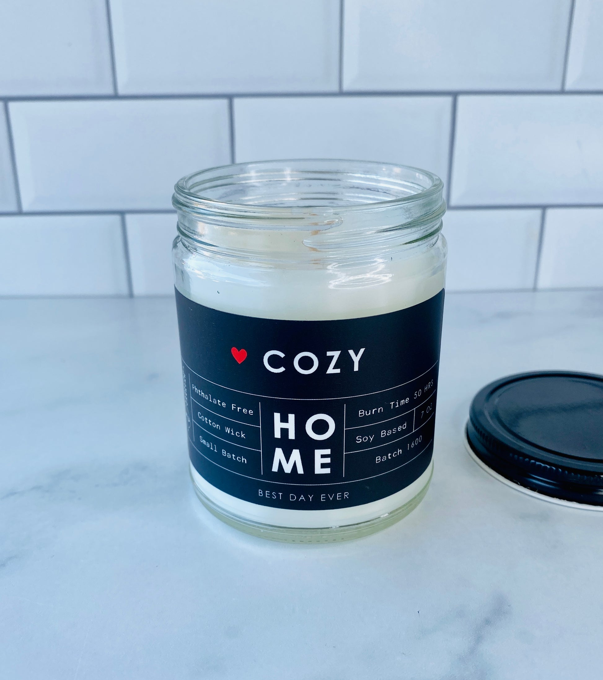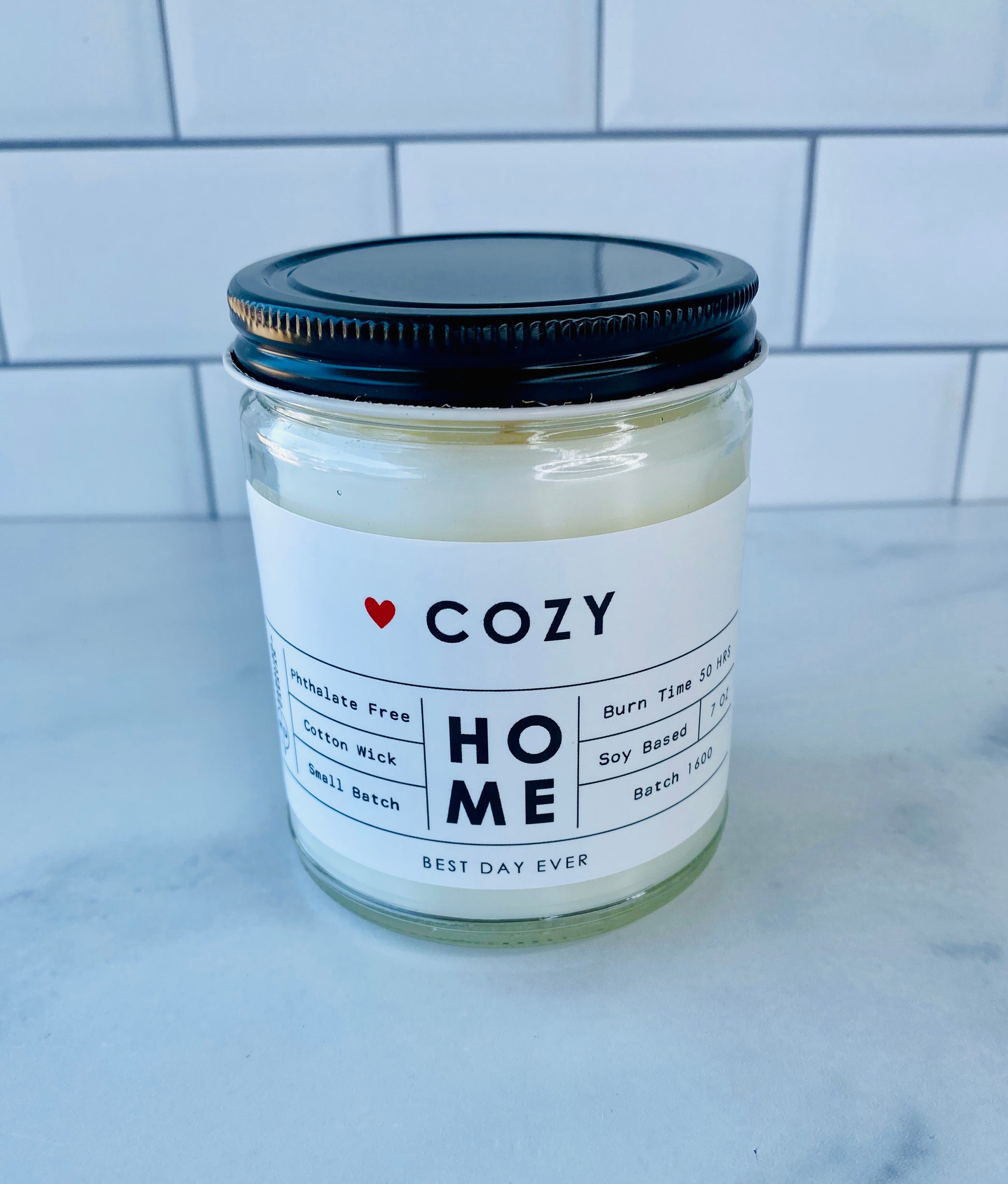 Cozy Candle - Rambling Caravan candles are inspired by home, travel and adventure. Made from a soy/coconut based wax blend, the candles are hand poured in Virginia Beach, Virginia. We use phthalate free fragrances and have an assortment of fragrances from which to choose. Many of our candles have different color labels to choose from as well. We use cotton wicks with no zinc or lead. We do not use additives, nor scent enhancers or UV blockers. The burn time is approximately 50 hours.