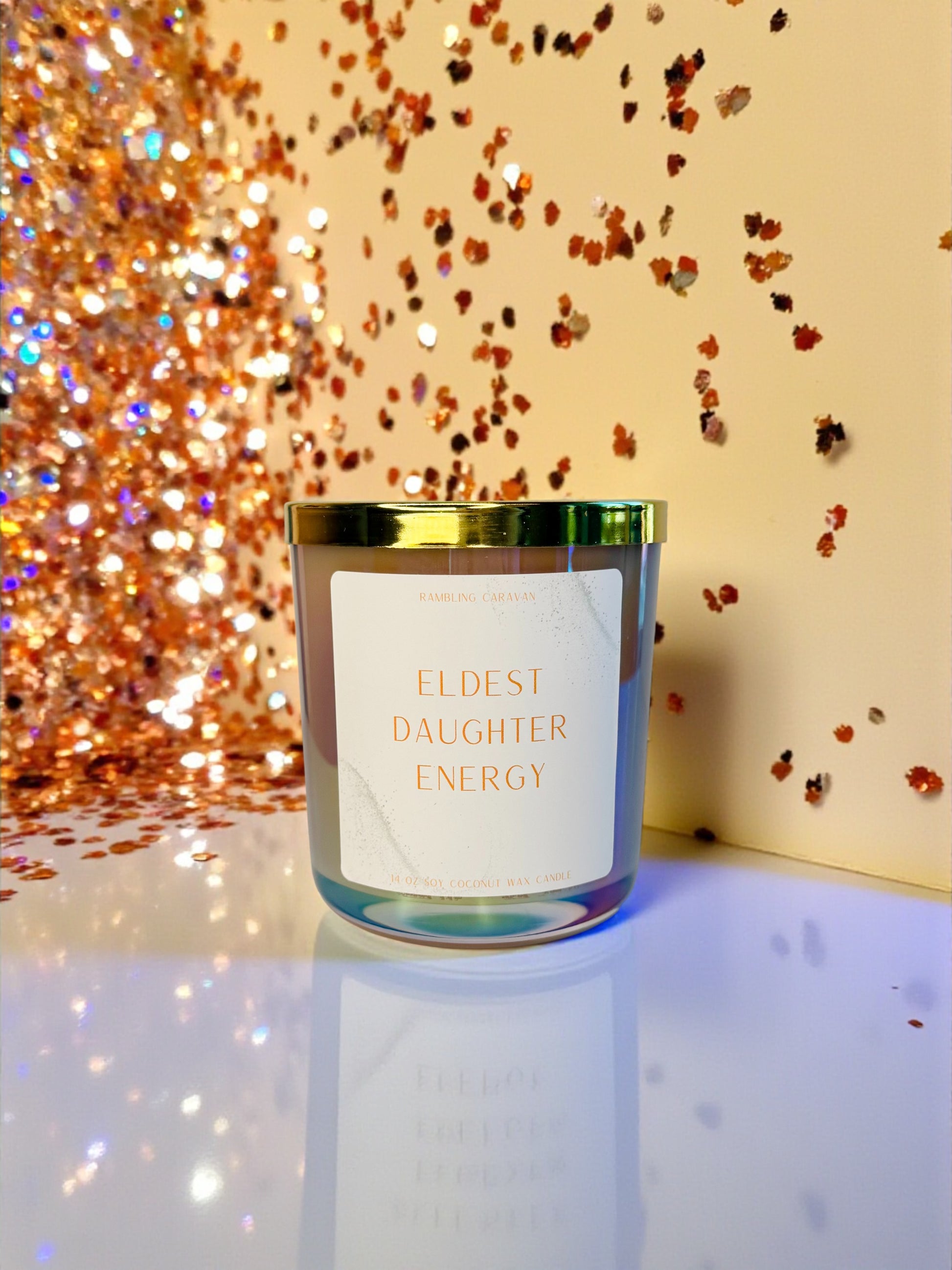 Eldest Daughter Energy Candle | Taylor Swift Inspired | Color: Iridescent Blush | 14 oz Soy Coconut Wax Blend | Luxe Gold Lid