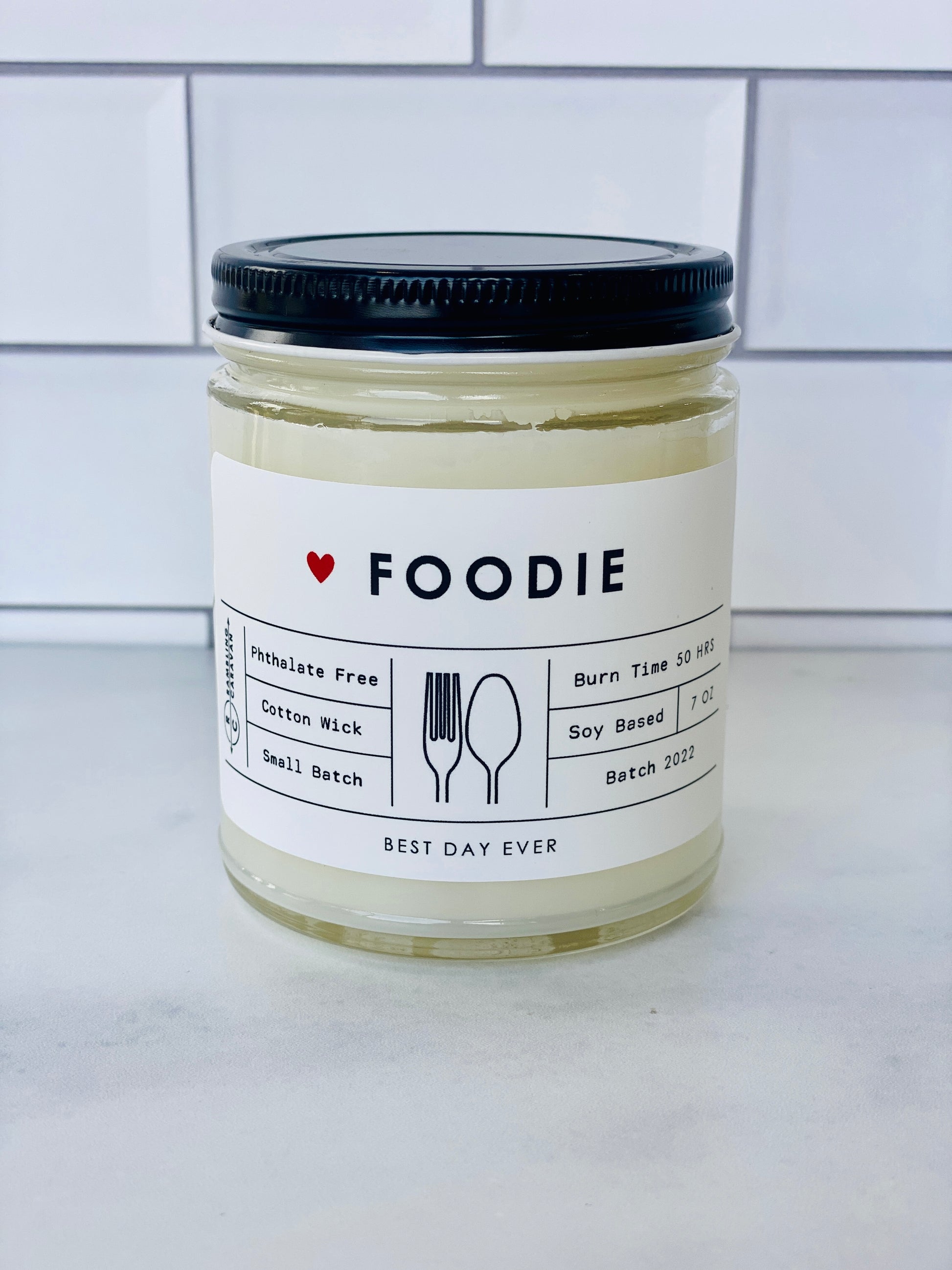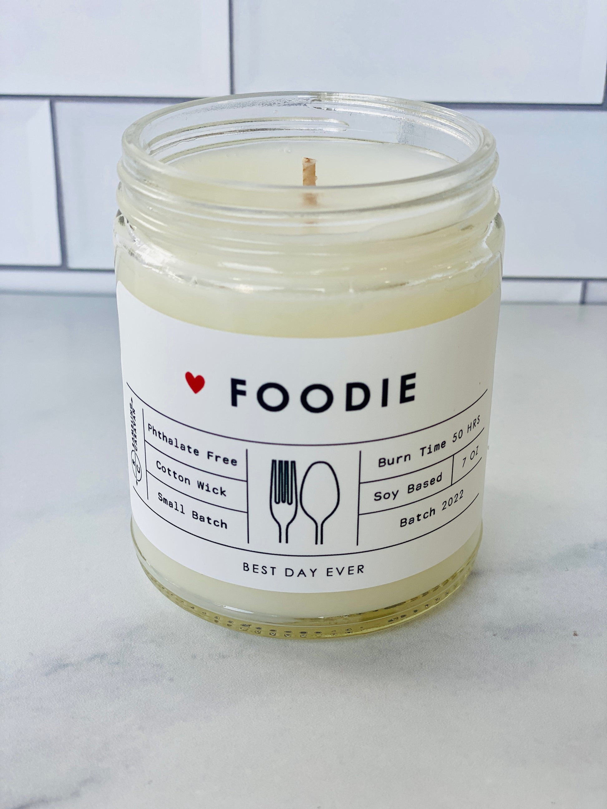 Foodie Candle - Rambling Caravan candles are inspired by home, travel and adventure. Made from a soy/coconut based wax blend, the candles are hand poured in Virginia Beach, Virginia. We use phthalate free fragrances and have an assortment of fragrances from which to choose. Many of our candles have different color labels to choose from as well. We use cotton wicks with no zinc or lead. We do not use additives, nor scent enhancers or UV blockers. The burn time is approximately 50 hours.