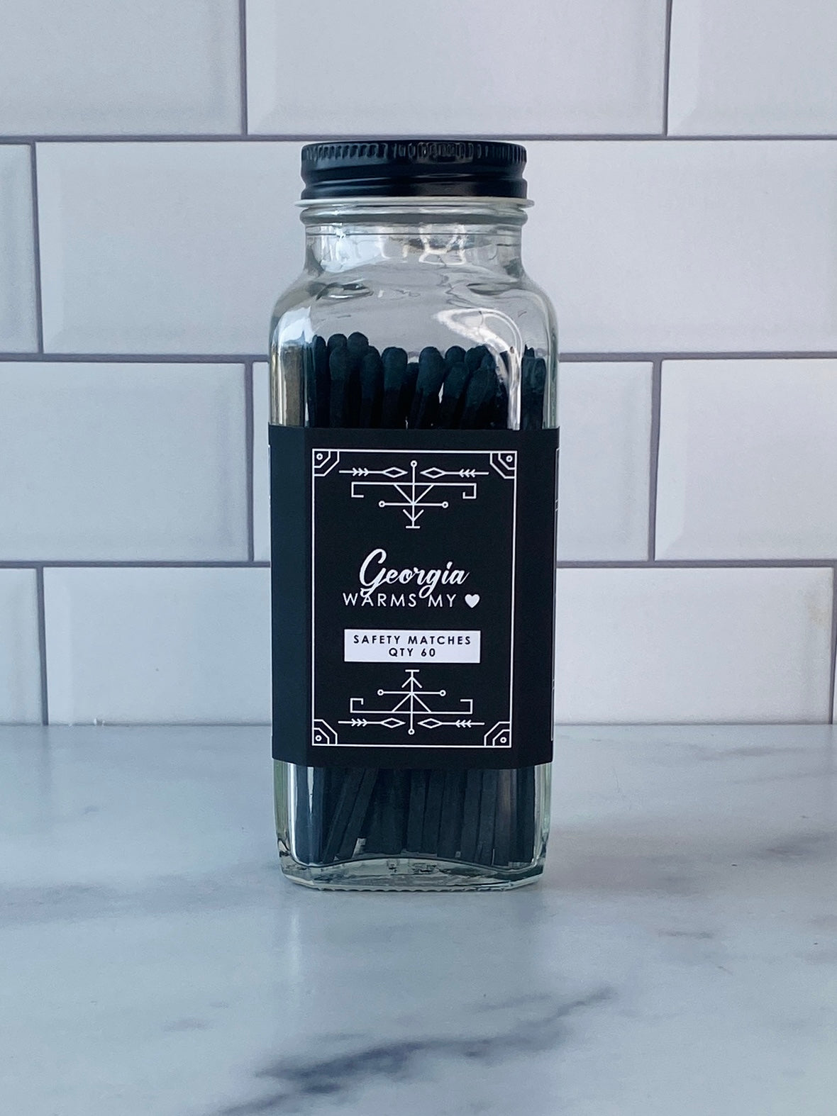 Our stylish safety matches are the perfect gift along side one of our soy coconut wax candles. Each clear jar contains 60 matches with a striker located on the bottom. Be sure to use caution and handle with care. Close the bottle before striking the match. Always keep out of reach of children and pets.