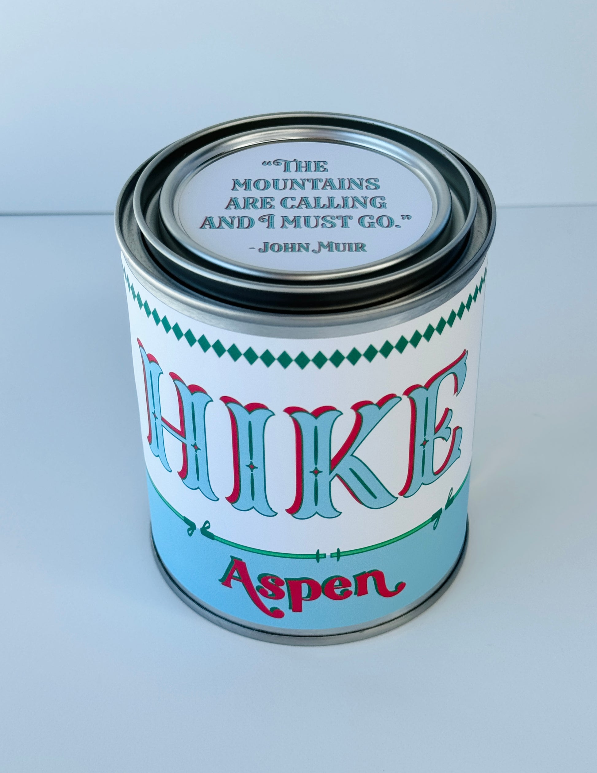 Our Outdoor Adventure Collection features different locations and activities. If you love to Bike, Ski, Hike or Surf a particular destination this candle is for you! These 12 oz paint can tins are hand poured in Virginia Beach, VA using a soy coconut wax blend with crackling wood wicks. These eco-friendly tins are also recyclable.