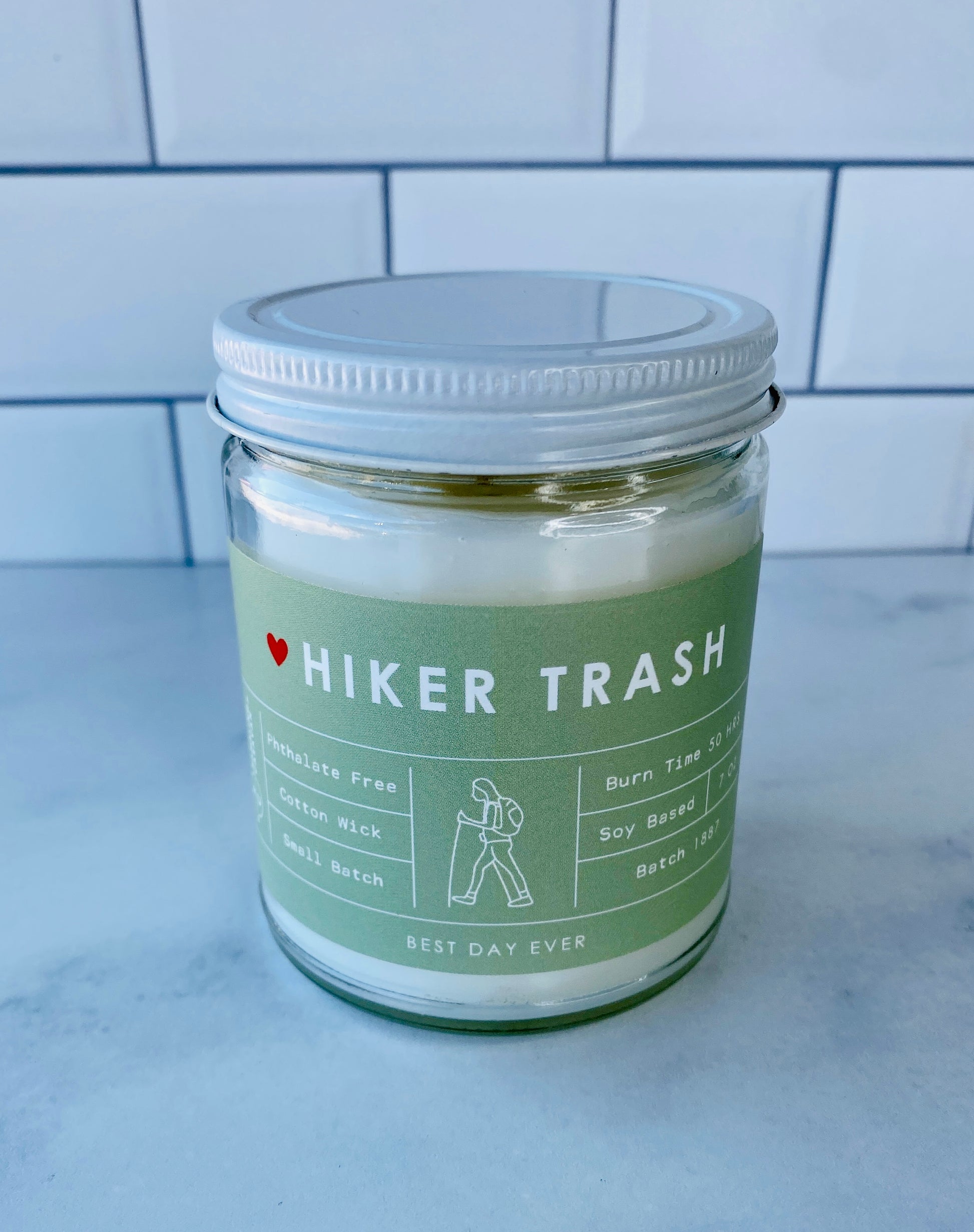 Hiker Trash Candle - Hiker Trash is an affectionate term used to describe how a hiker looks after being out on the trail for awhile. - Rambling Caravan candles are inspired by home, travel and adventure. Made from a soy/coconut based wax blend, the candles are hand poured in Virginia Beach, Virginia. We use phthalate free fragrances and have an assortment of fragrances from which to choose. Many of our candles have different color labels to choose from as well. We use cotton wicks with no zinc or lead. We do not use additives, nor scent enhancers or UV blockers. The burn time is approximately 50 hours.