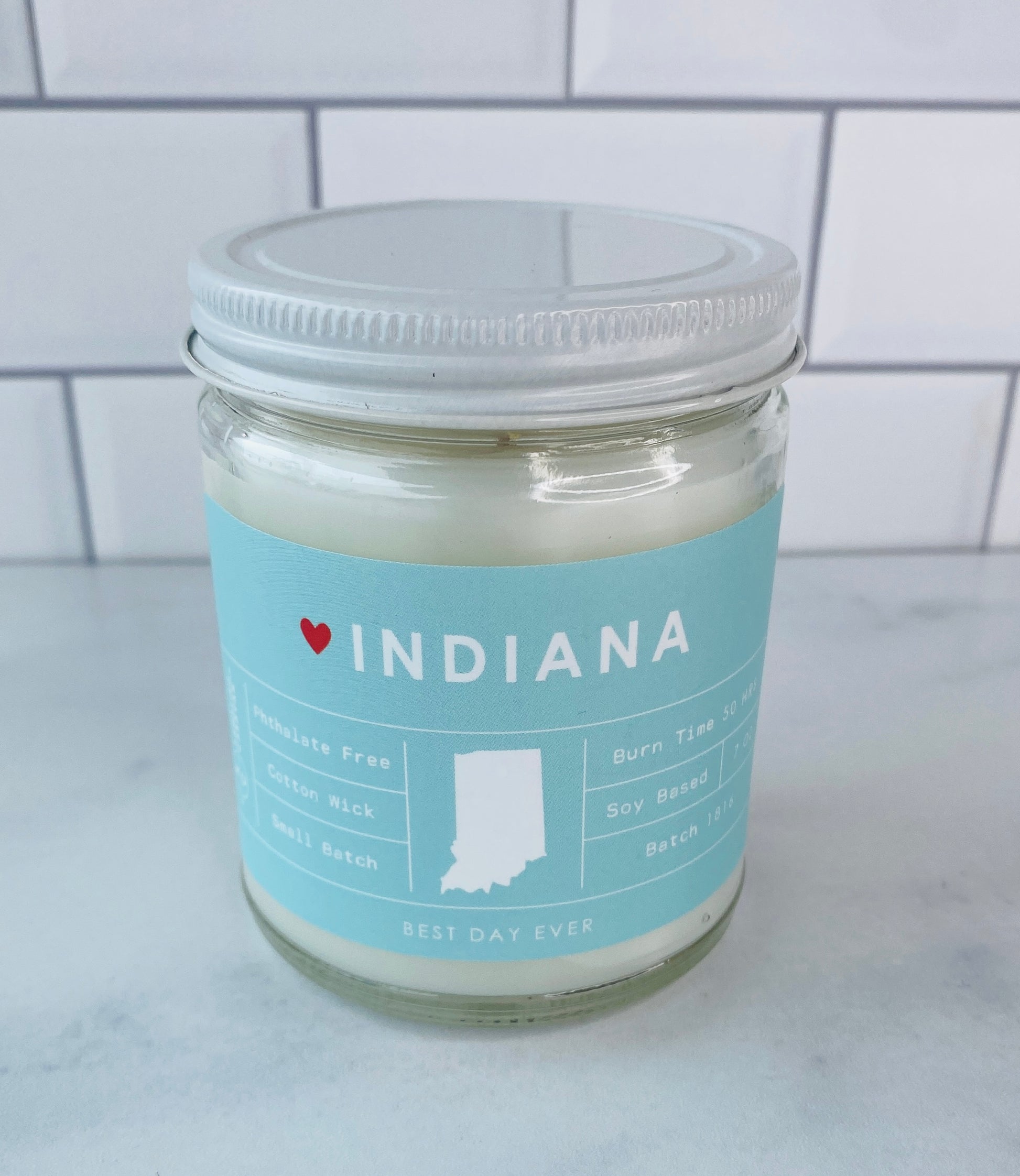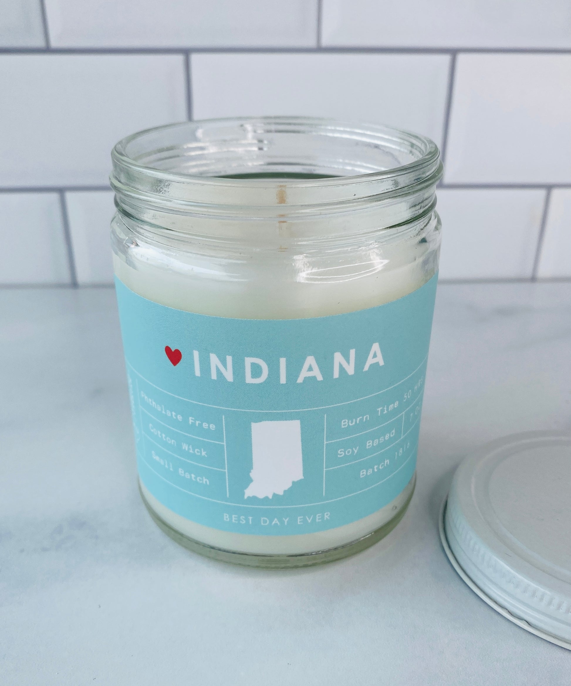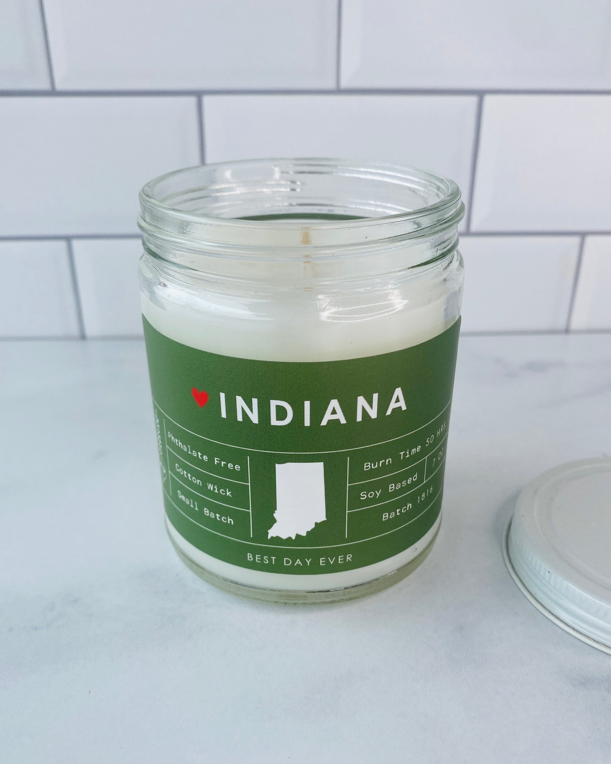 Indiana Candle - Rambling Caravan candles are inspired by home, travel and adventure. Made from a soy/coconut based wax blend, the candles are hand poured in Virginia Beach, Virginia. We use phthalate free fragrances and have an assortment of fragrances from which to choose. Many of our candles have different color labels to choose from as well. We use cotton wicks with no zinc or lead. We do not use additives, nor scent enhancers or UV blockers. The burn time is approximately 50 hours.