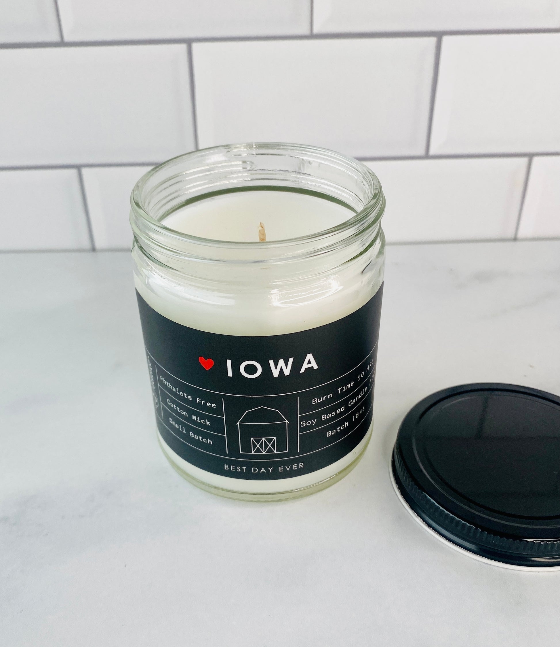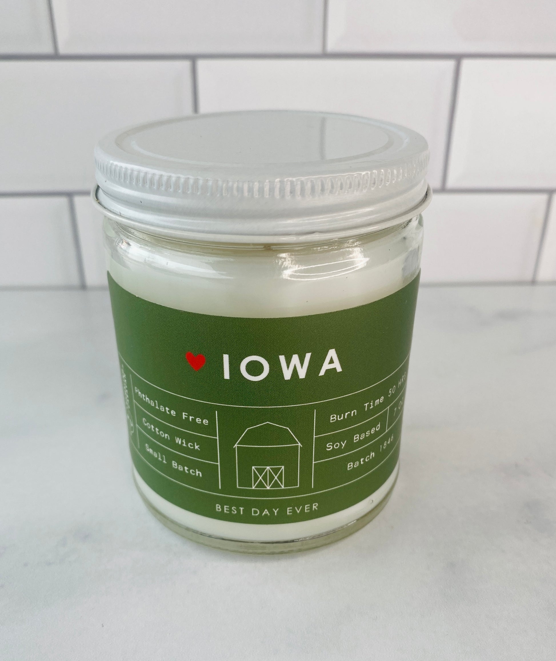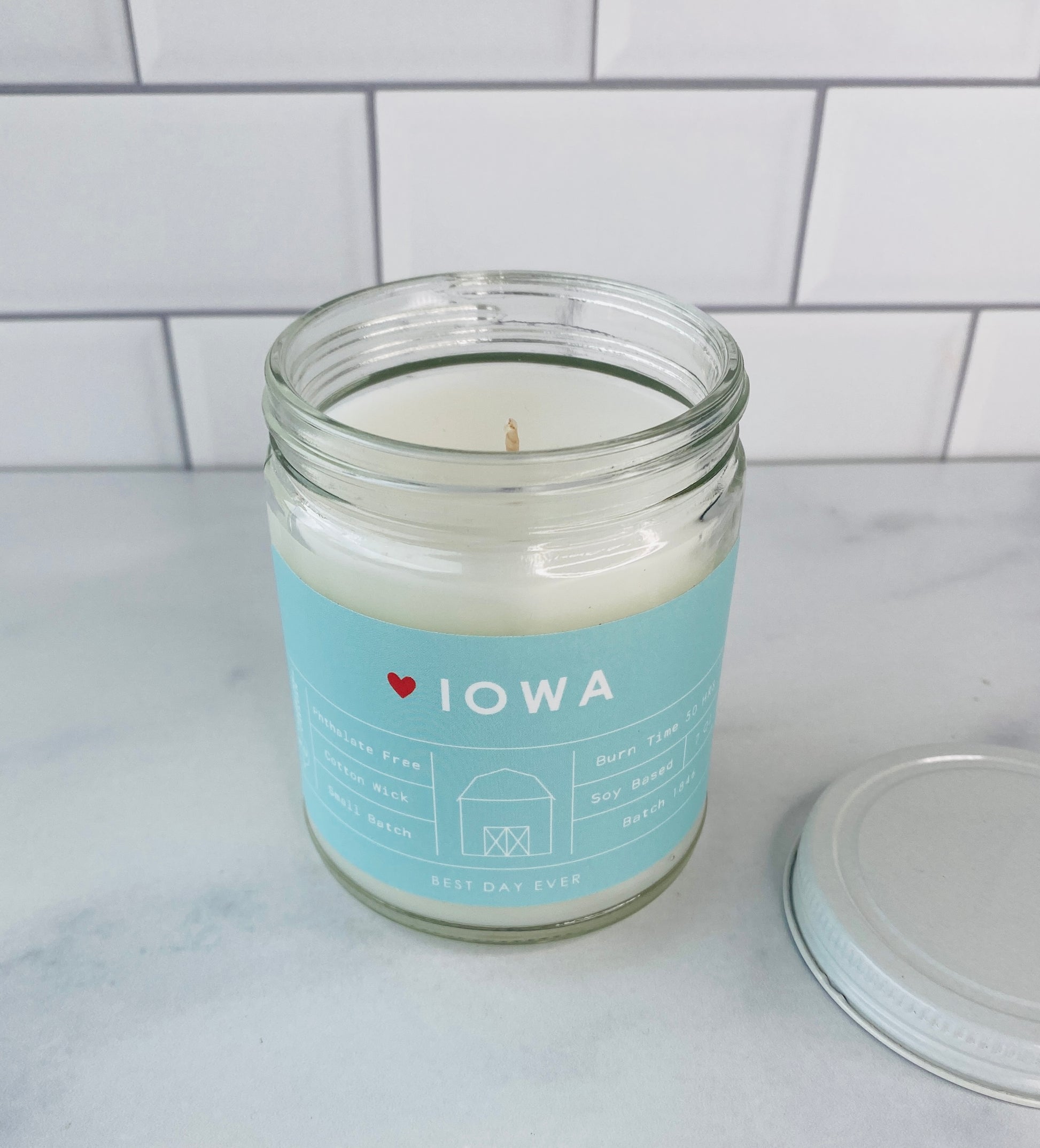 Iowa Candle - Rambling Caravan candles are inspired by home, travel and adventure. Made from a soy/coconut based wax blend, the candles are hand poured in Virginia Beach, Virginia. We use phthalate free fragrances and have an assortment of fragrances from which to choose. Many of our candles have different color labels to choose from as well. We use cotton wicks with no zinc or lead. We do not use additives, nor scent enhancers or UV blockers. The burn time is approximately 50 hours.