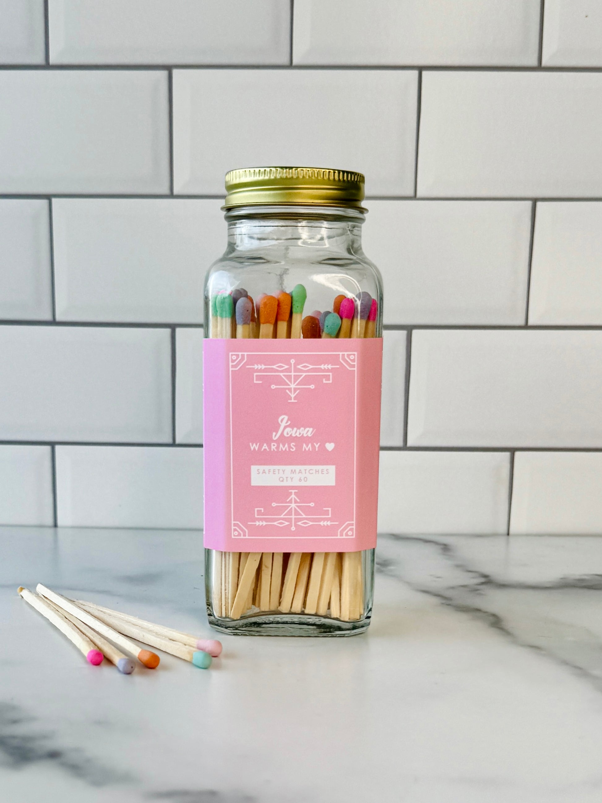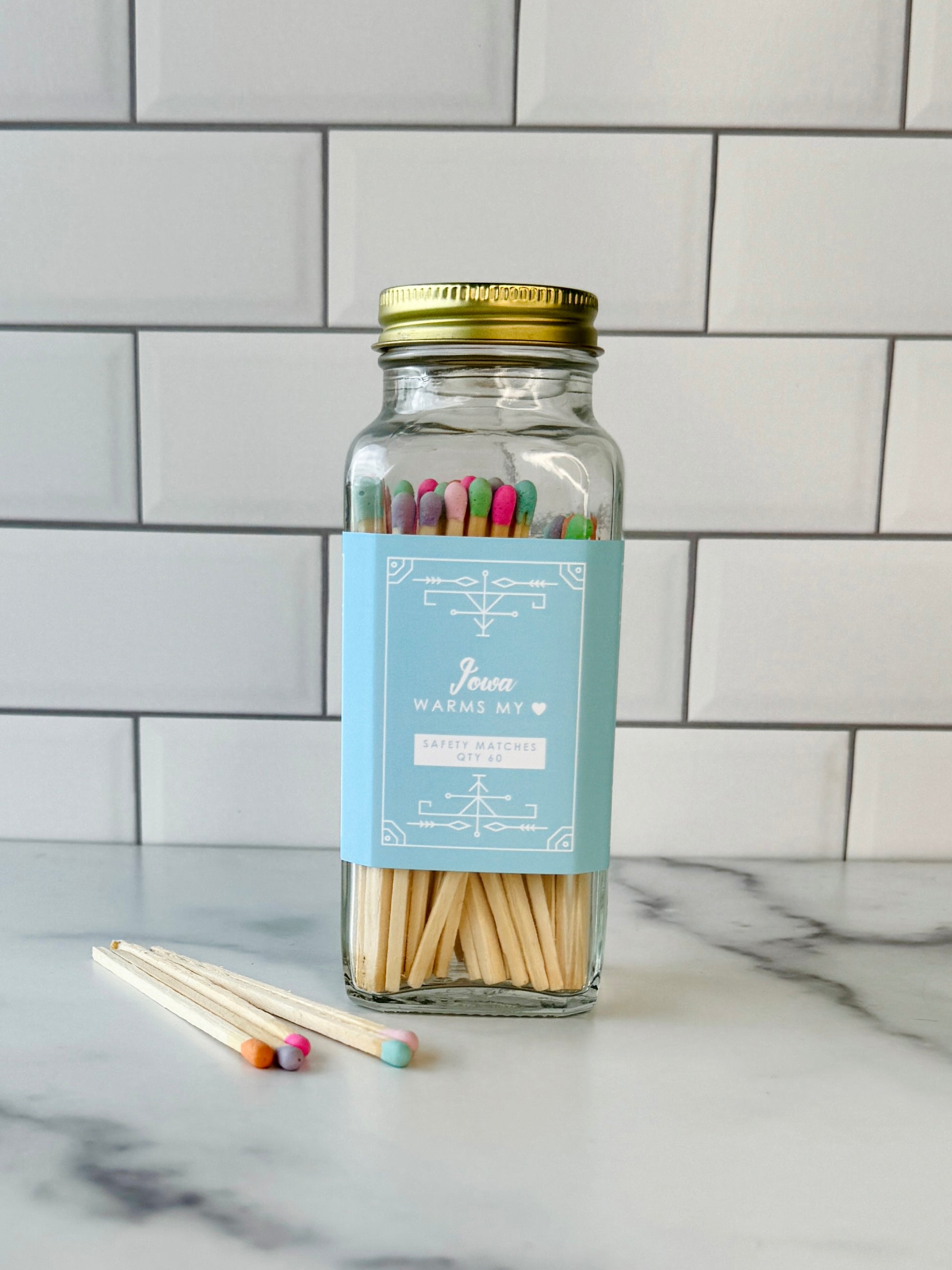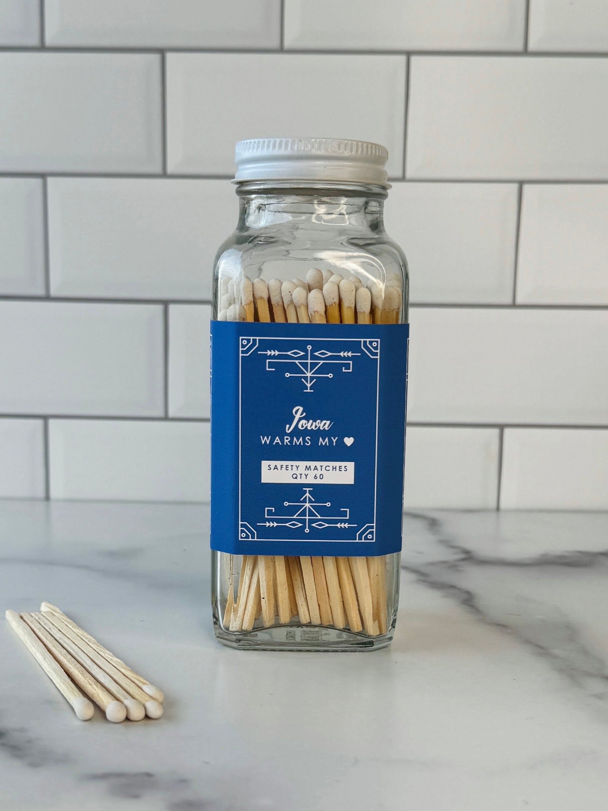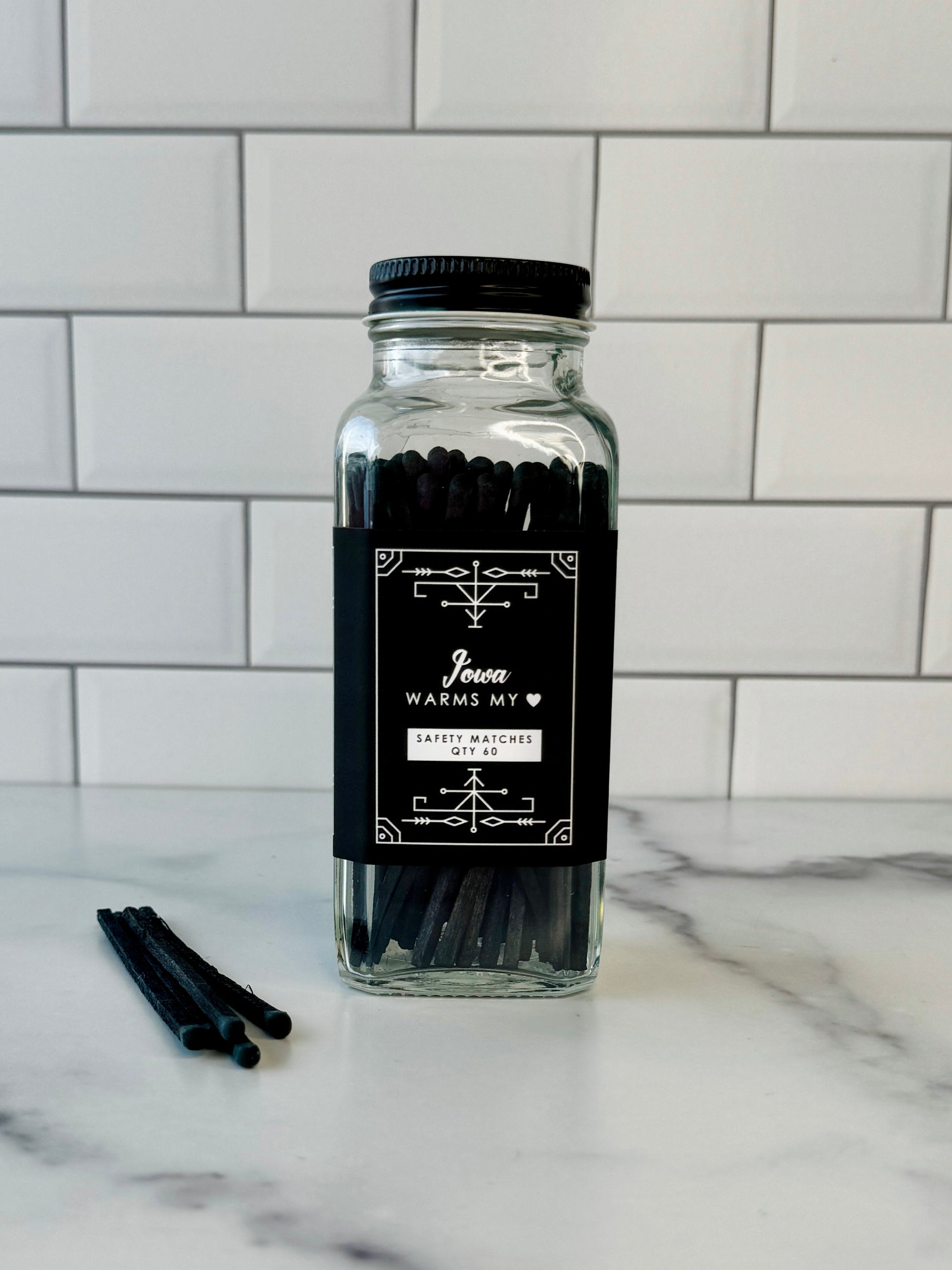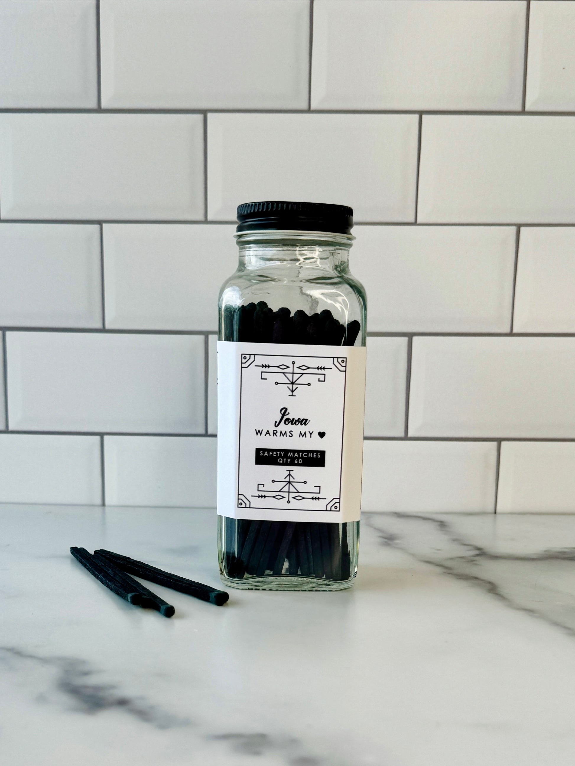 Our stylish safety matches are the perfect gift along side one of our soy coconut wax candles. Each clear jar contains 60 matches with a striker located on the bottom. Be sure to use caution and handle with care. Close the bottle before striking the match. Always keep out of reach of children and pets.