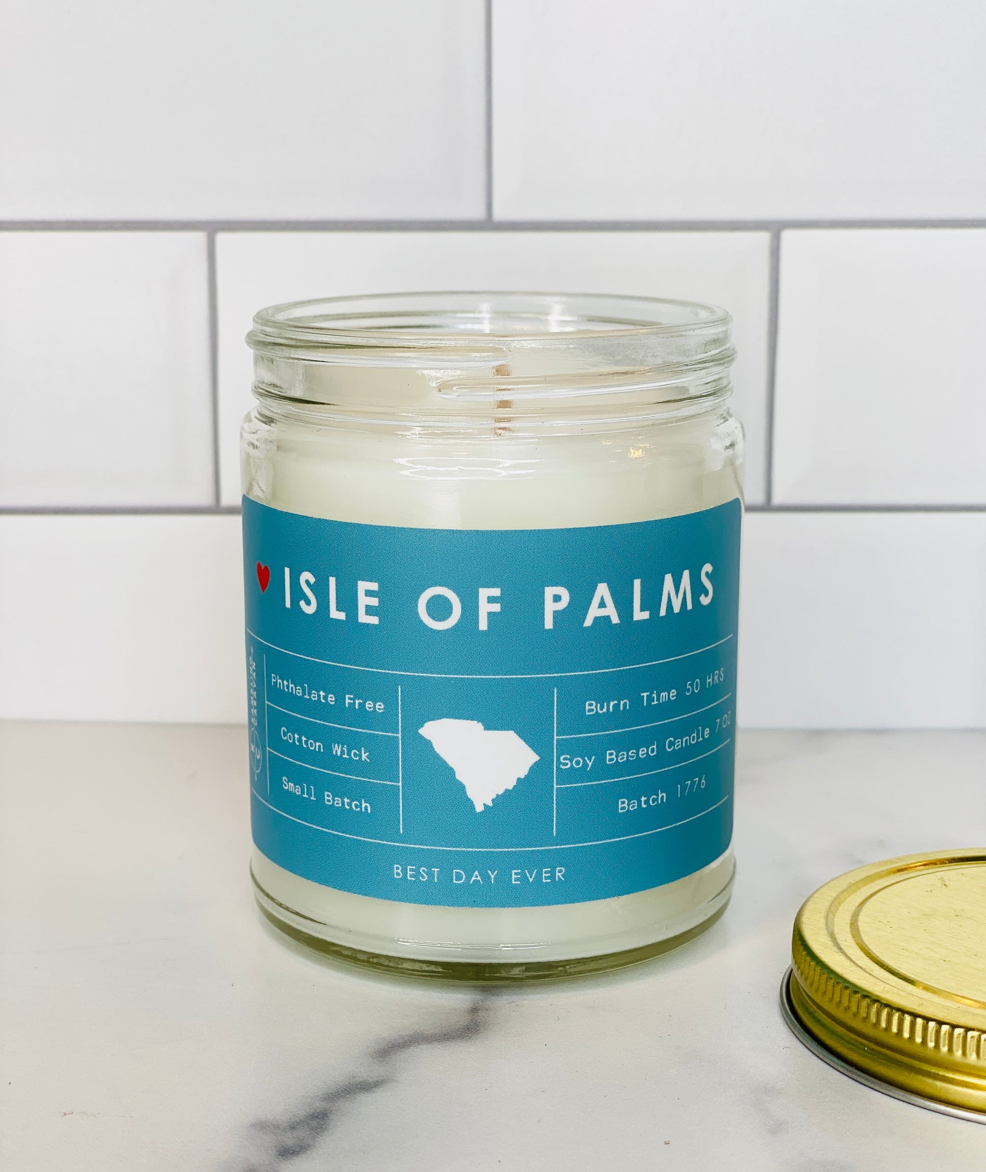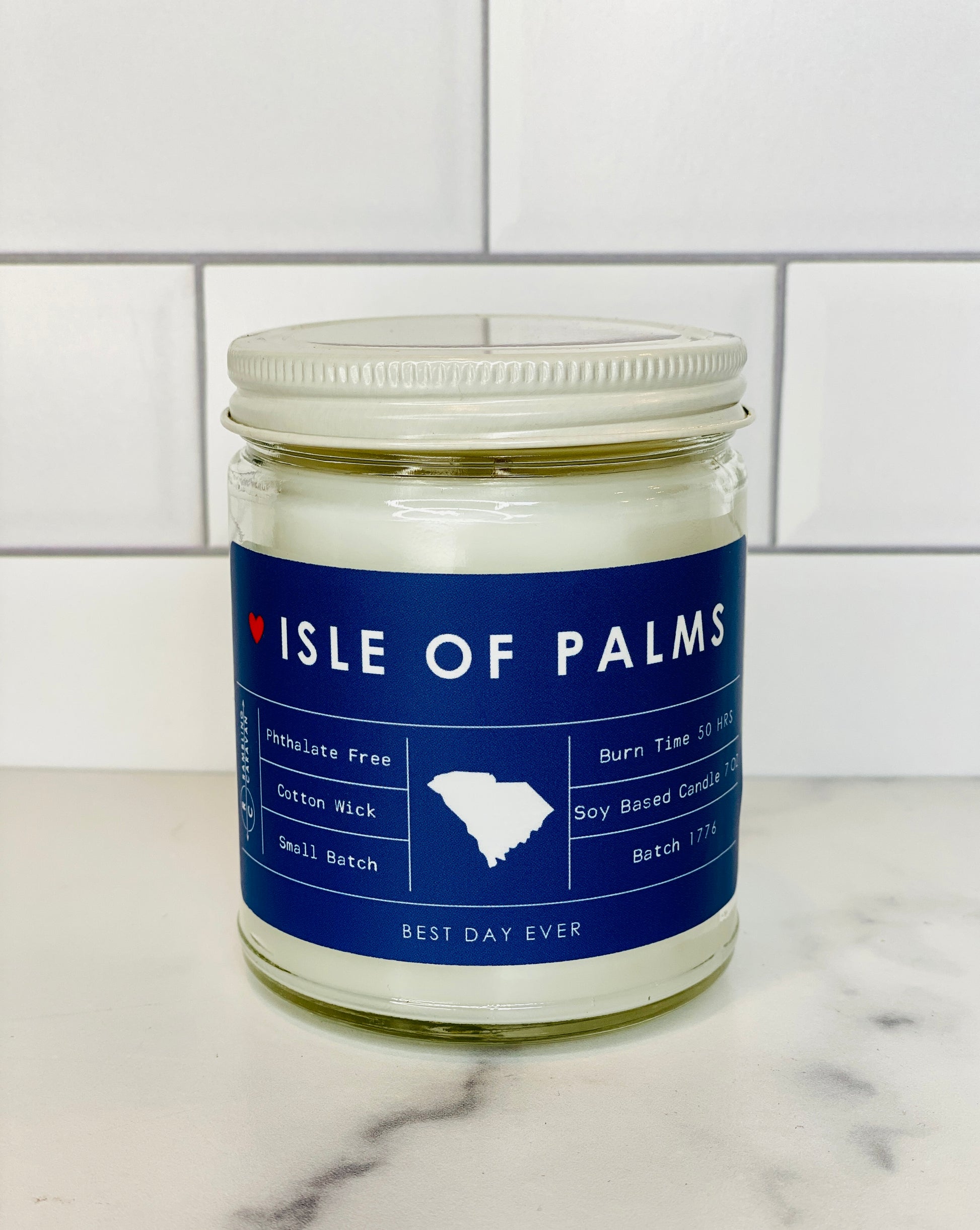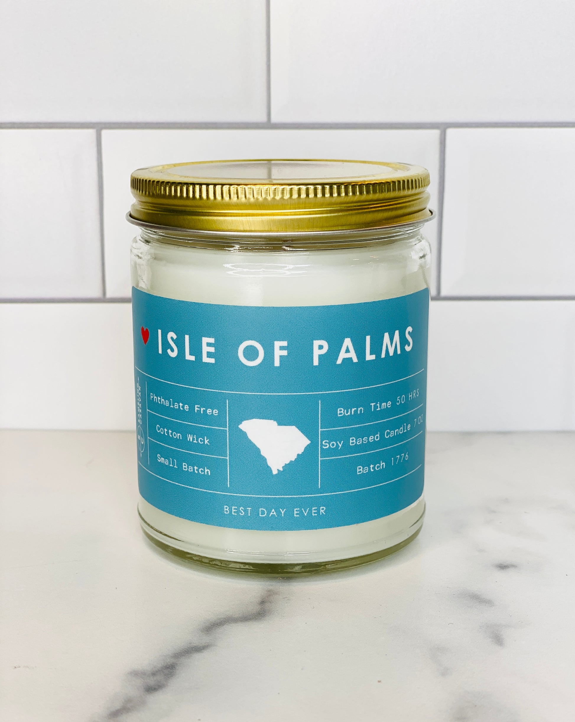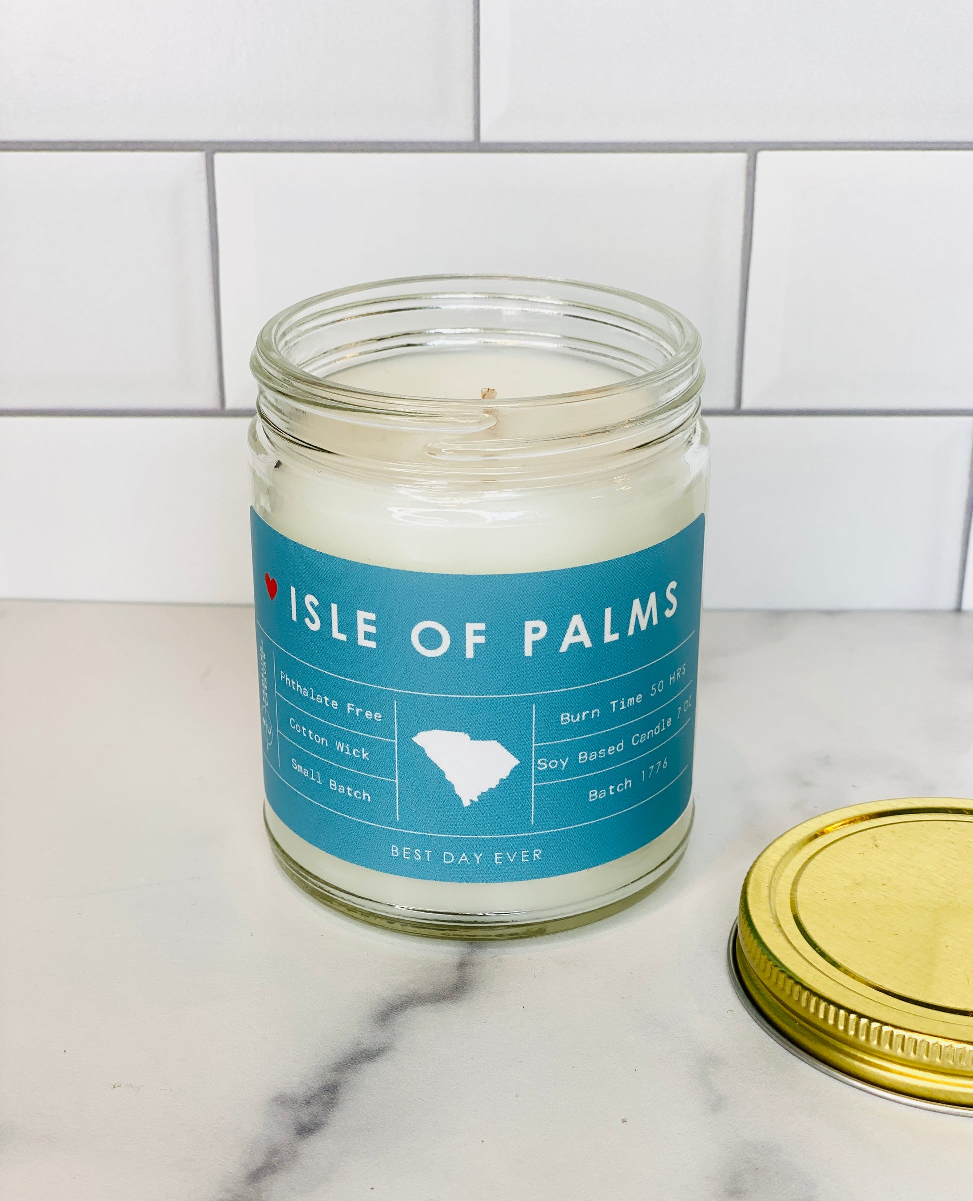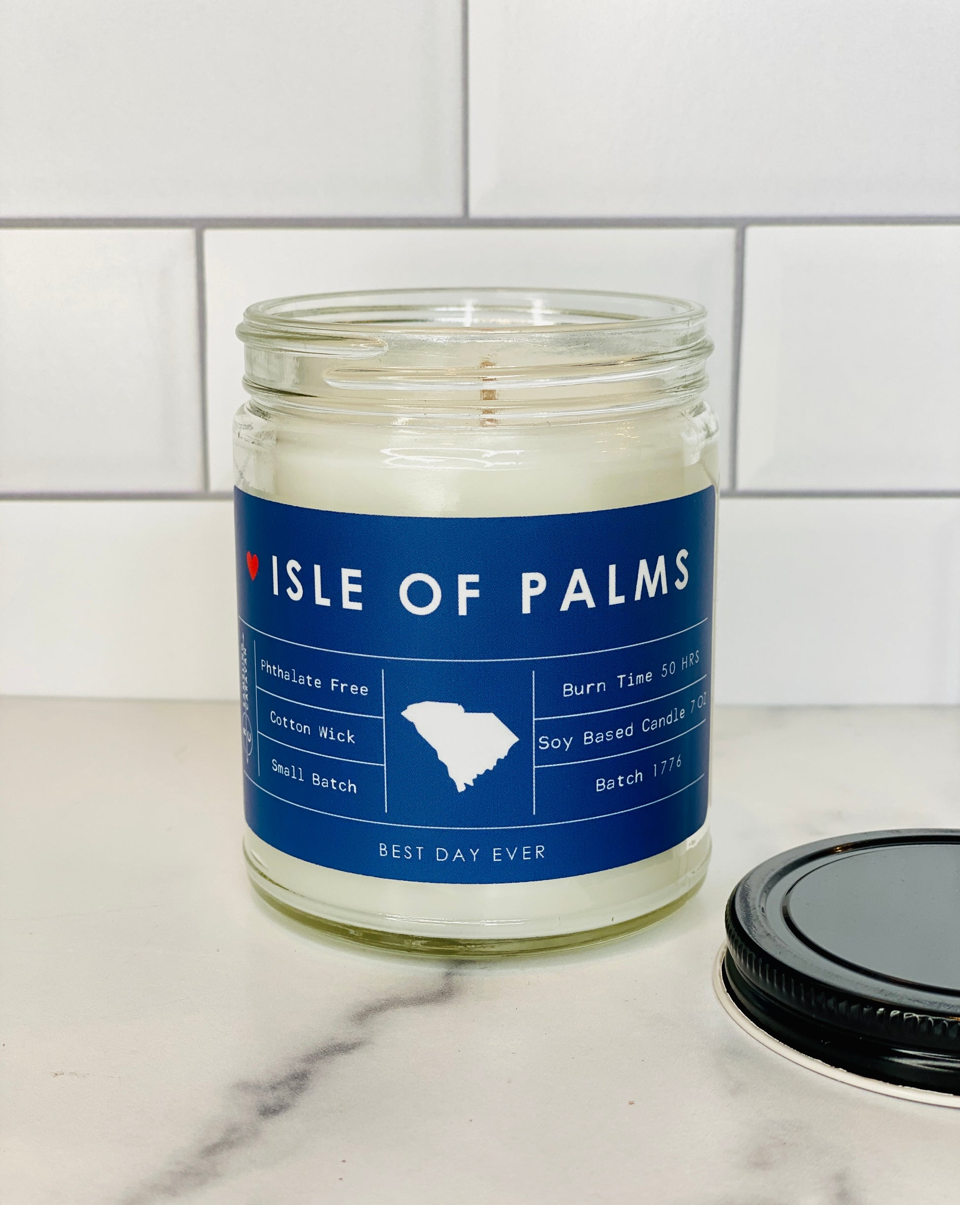 Isle of Palms, South Carolina Candle - Rambling Caravan candles are inspired by home, travel and adventure. Made from a soy/coconut based wax blend, the candles are hand poured in Virginia Beach, Virginia. We use phthalate free fragrances and have an assortment of fragrances from which to choose. Many of our candles have different color labels to choose from as well. We use cotton wicks with no zinc or lead. We do not use additives, nor scent enhancers or UV blockers. The burn time is approximately 50 hours.