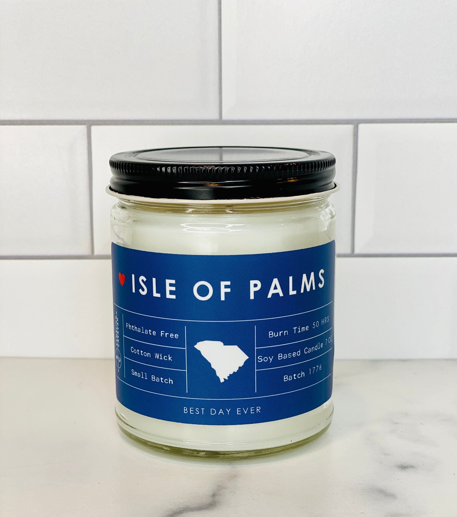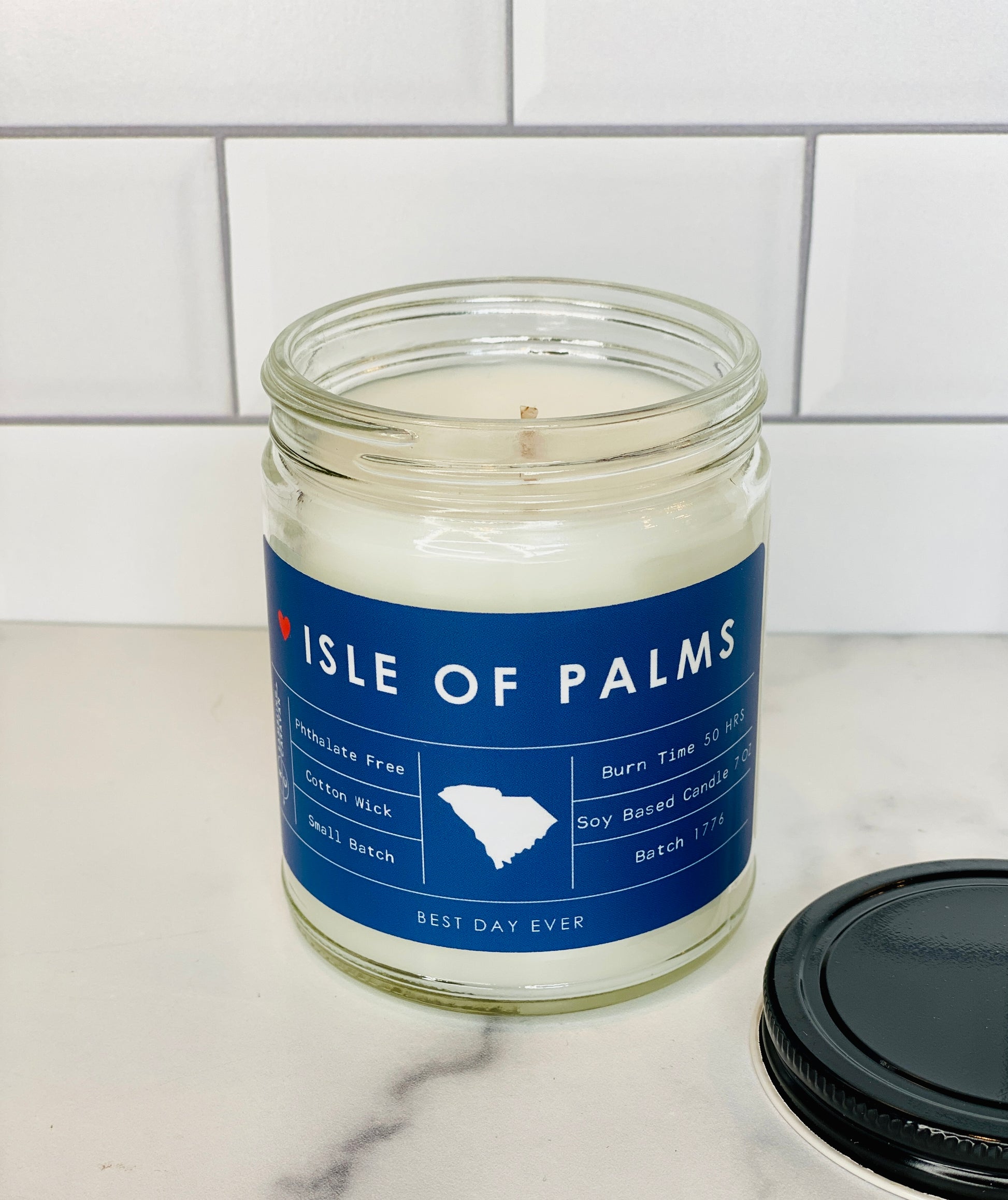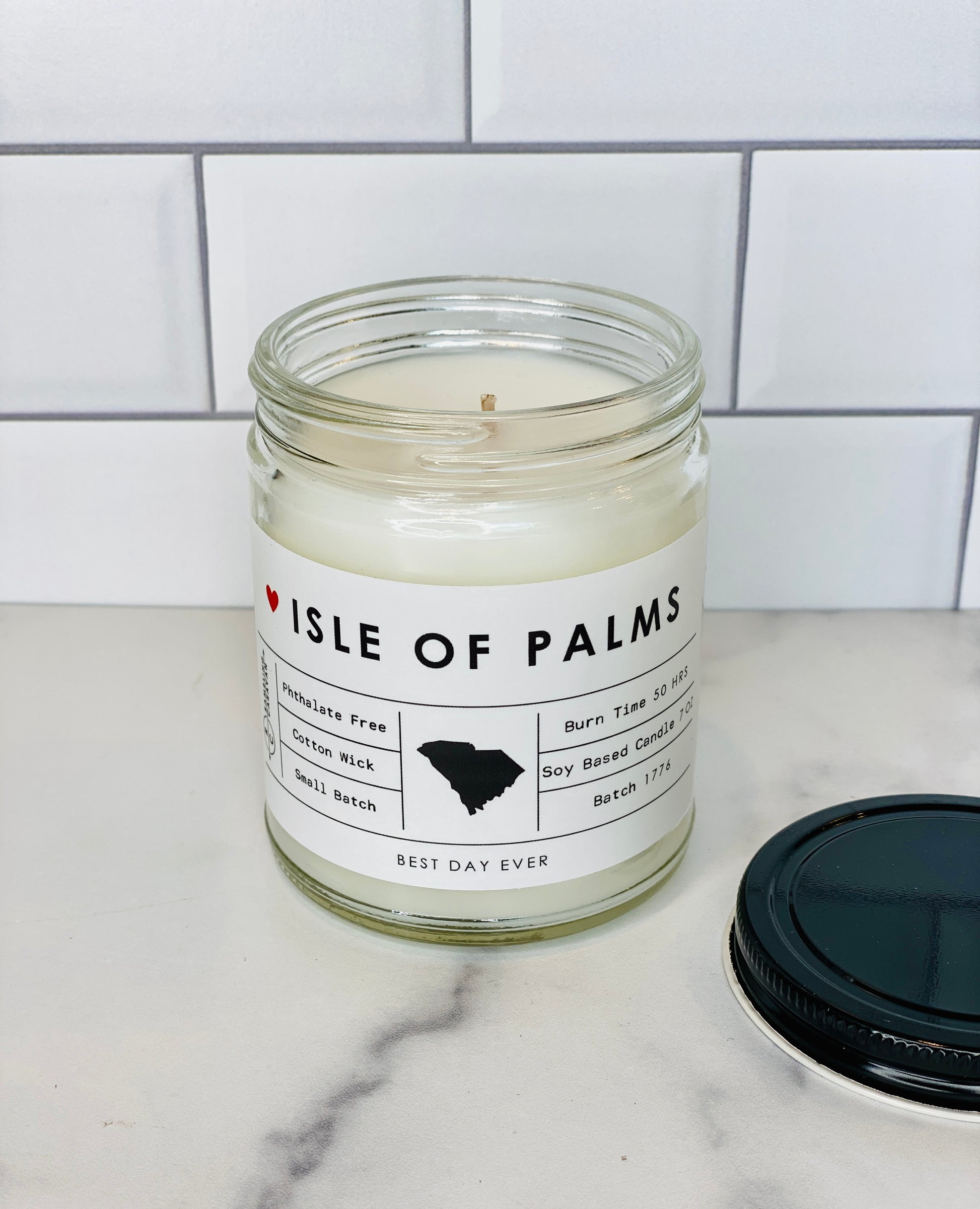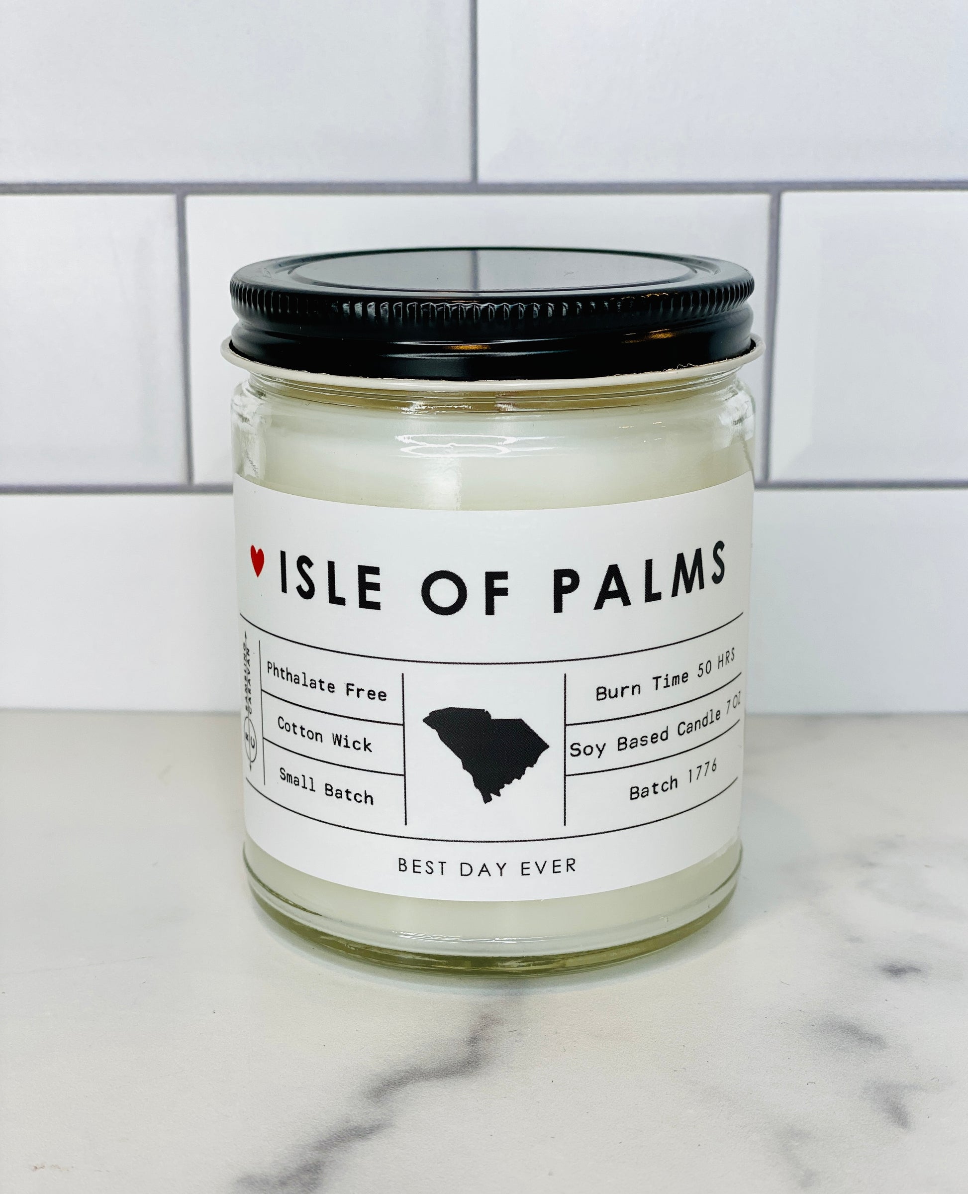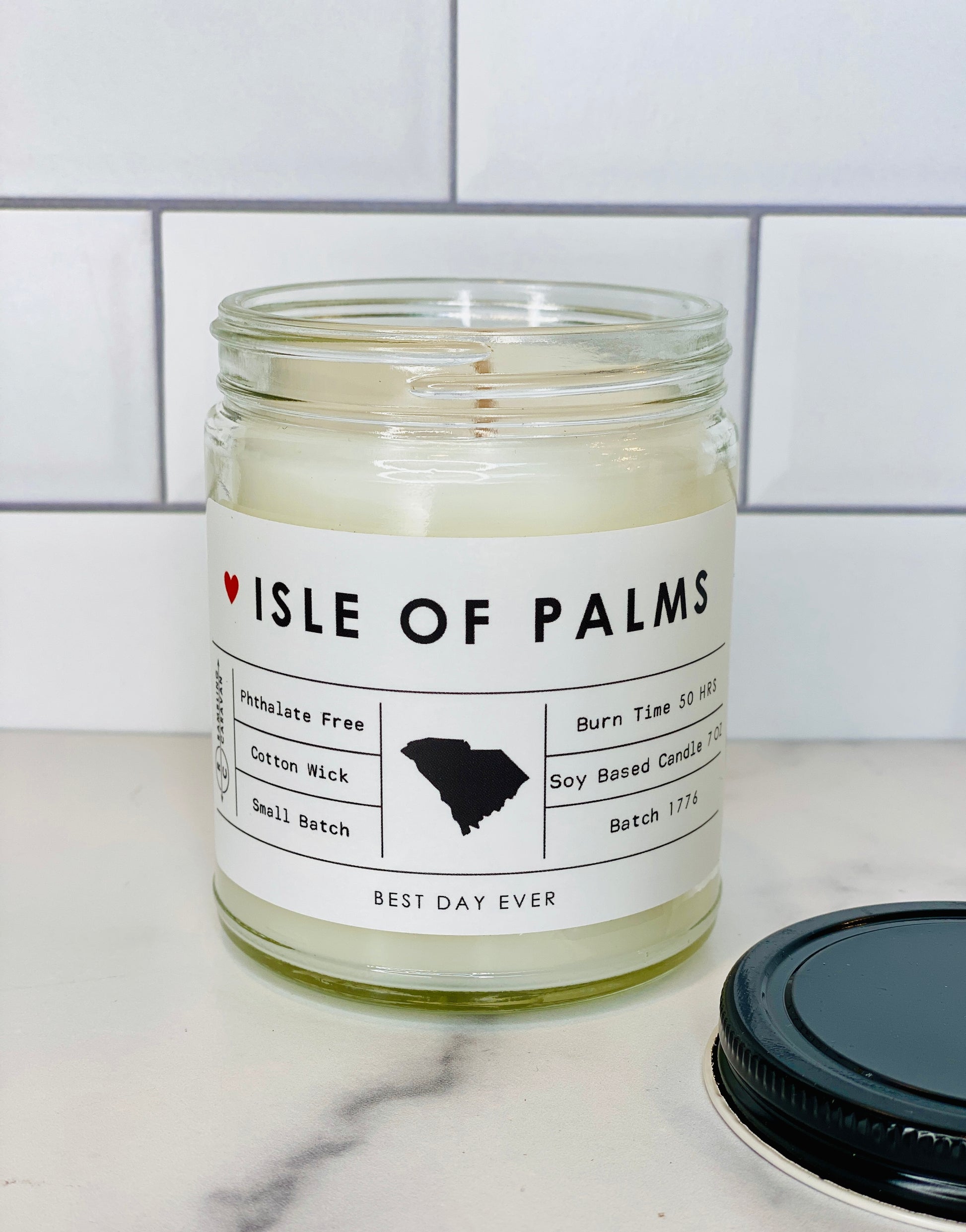 Isle of Palms, South Carolina Candle - Rambling Caravan candles are inspired by home, travel and adventure. Made from a soy/coconut based wax blend, the candles are hand poured in Virginia Beach, Virginia. We use phthalate free fragrances and have an assortment of fragrances from which to choose. Many of our candles have different color labels to choose from as well. We use cotton wicks with no zinc or lead. We do not use additives, nor scent enhancers or UV blockers. The burn time is approximately 50 hours.