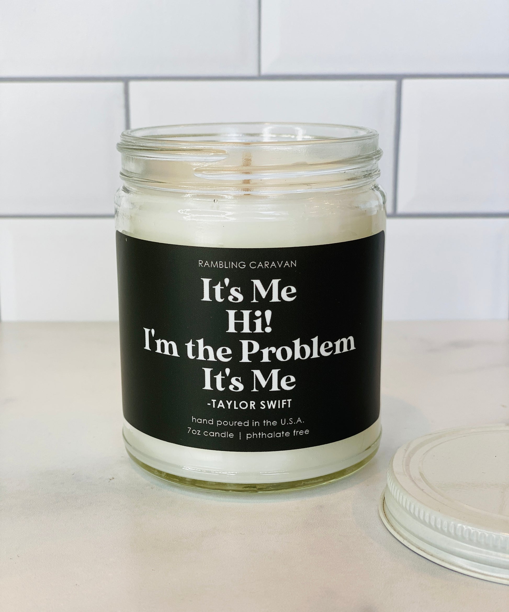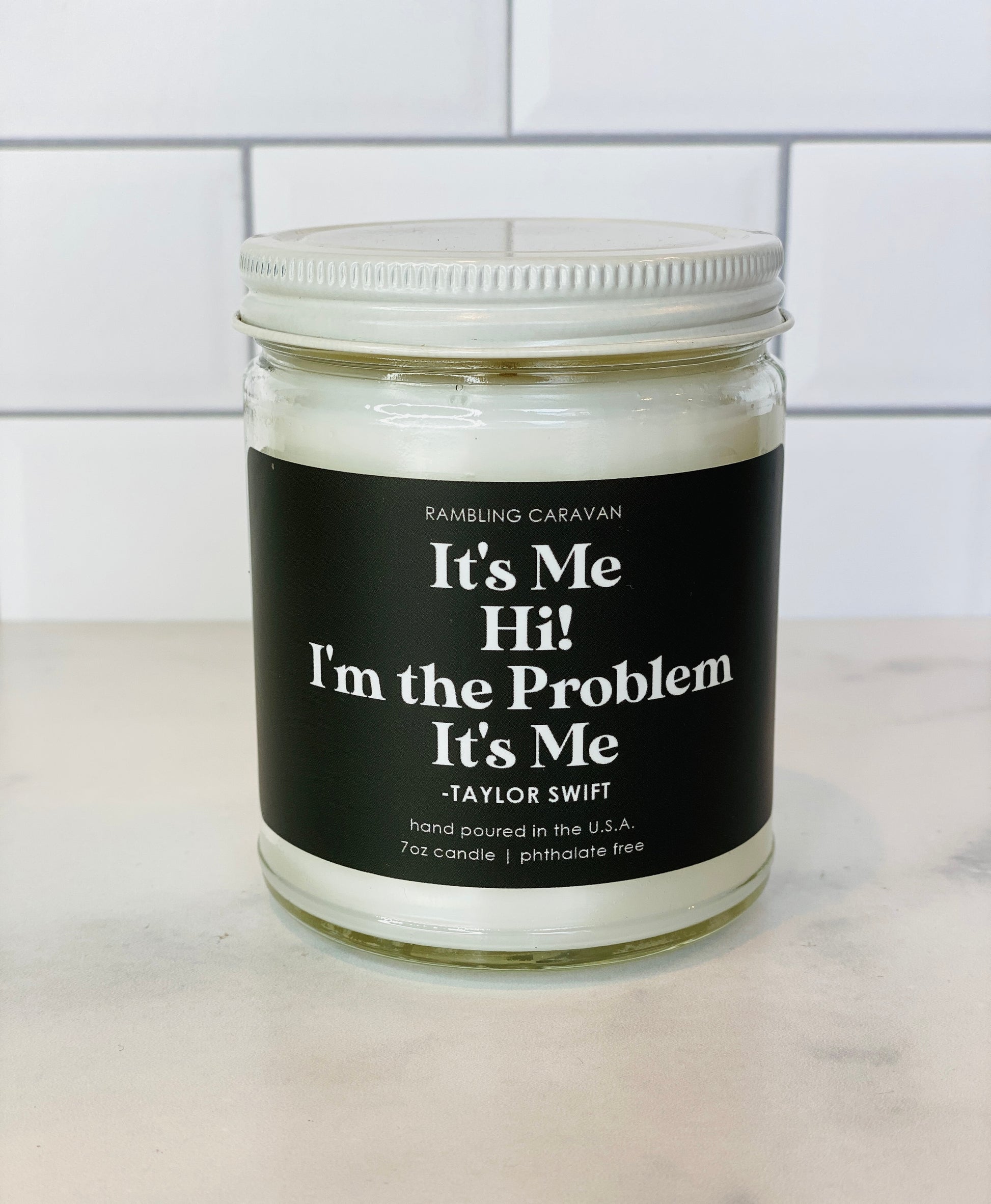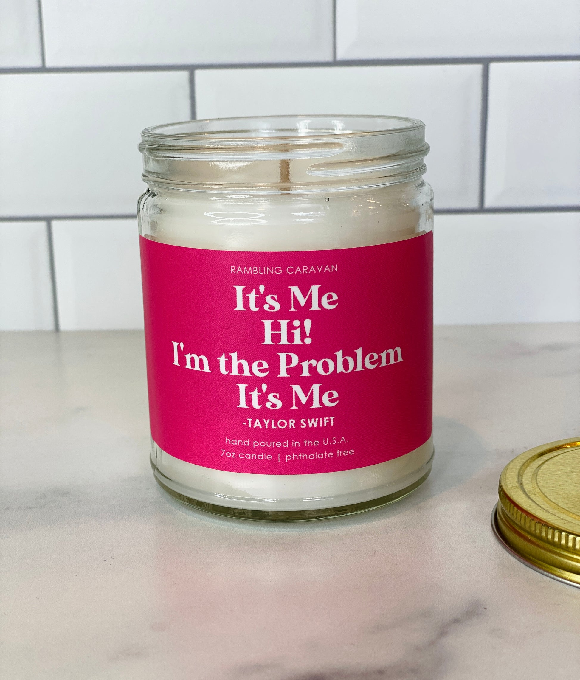 It's Me Hi! I'm The Problem It's Me Candle - Rambling Caravan candles are inspired by home, travel and adventure. Made from a soy/coconut based wax blend, the candles are hand poured in Virginia Beach, Virginia. We use phthalate free fragrances and have an assortment of fragrances from which to choose. Many of our candles have different color labels to choose from as well. We use cotton wicks with no zinc or lead. We do not use additives, nor scent enhancers or UV blockers. The burn time is approximately 50 hours.
