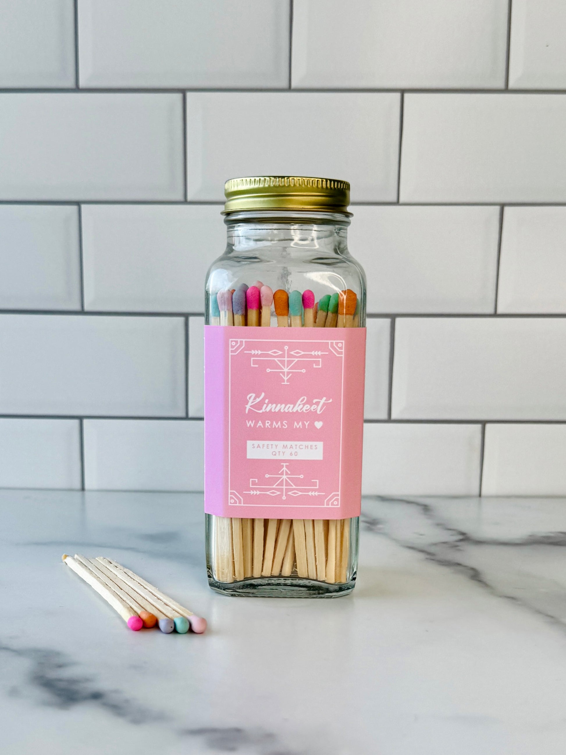 Our stylish safety matches are the perfect gift along side one of our soy coconut wax candles. Each clear jar contains 60 matches with a striker located on the bottom. Be sure to use caution and handle with care. Close the bottle before striking the match. Always keep out of reach of children and pets.
