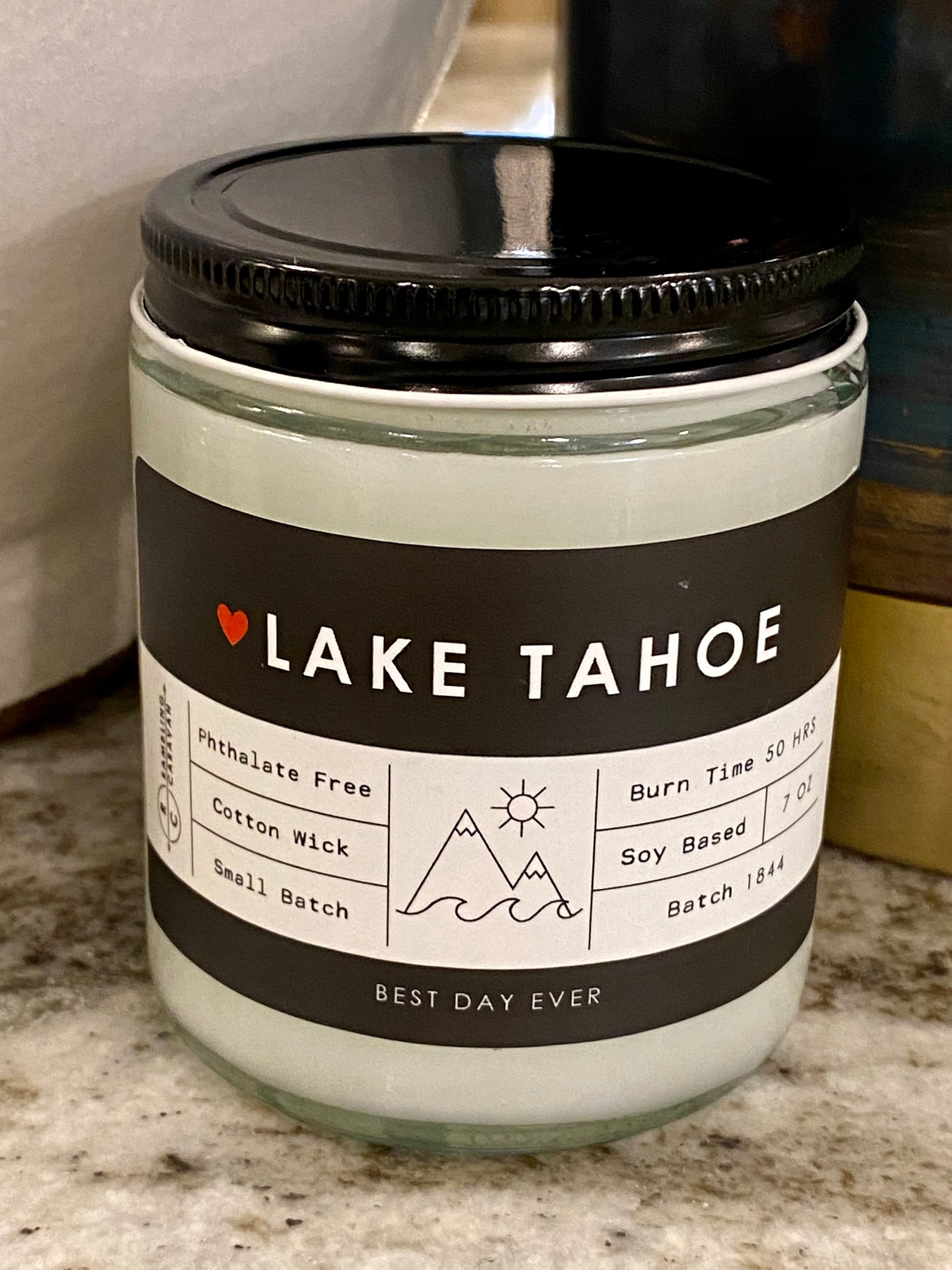 Lake Tahoe, Nevada Candle - Rambling Caravan candles are inspired by home, travel and adventure. Made from a soy/coconut based wax blend, the candles are hand poured in Virginia Beach, Virginia. We use phthalate free fragrances and have an assortment of fragrances from which to choose. Many of our candles have different color labels to choose from as well. We use cotton wicks with no zinc or lead. We do not use additives, nor scent enhancers or UV blockers. The burn time is approximately 50 hours.