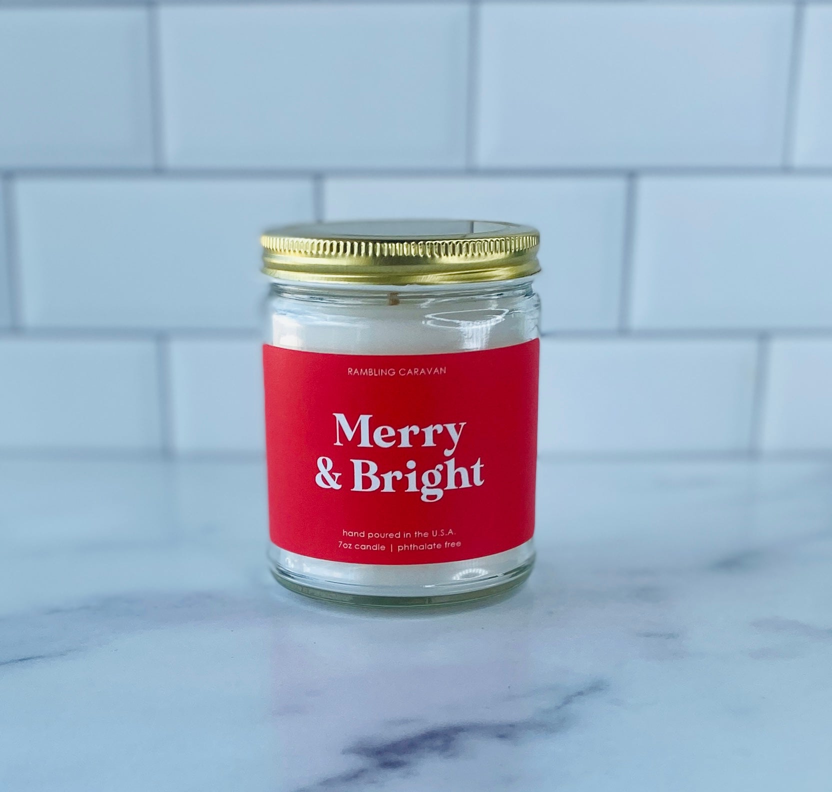 Merry & Bright Candle - Rambling Caravan candles are inspired by home, travel and adventure. Made from a soy/coconut based wax blend, the candles are hand poured in Virginia Beach, Virginia. We use phthalate free fragrances and have an assortment of fragrances from which to choose. Many of our candles have different color labels to choose from as well. We use cotton wicks with no zinc or lead. We do not use additives, nor scent enhancers or UV blockers. The burn time is approximately 50 hours.