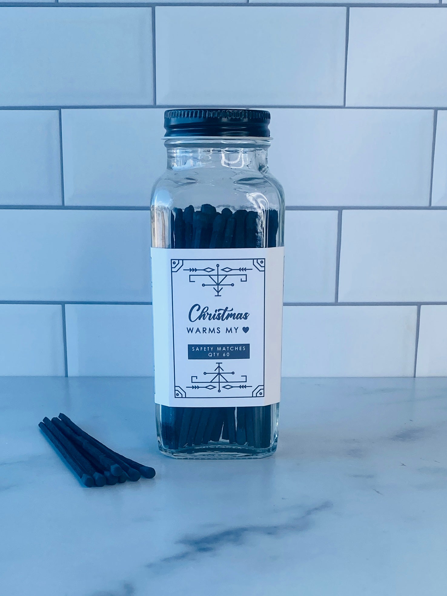 Our stylish safety matches are the perfect gift along side one of our soy coconut wax candles. Each clear jar contains 60 matches with a striker located on the bottom. Be sure to use caution and handle with care. Close the bottle before striking the match. Always keep out of reach of children and pets.