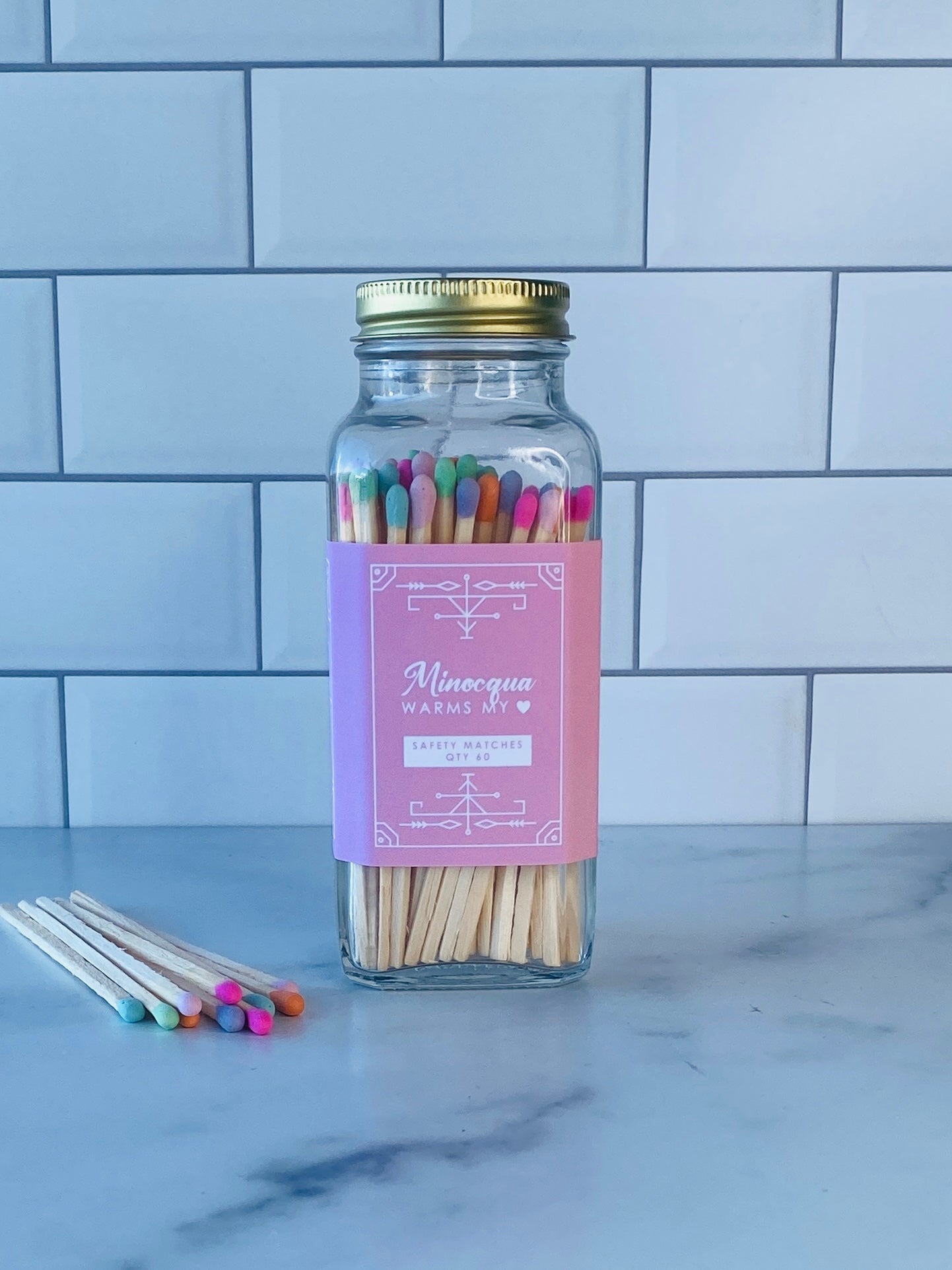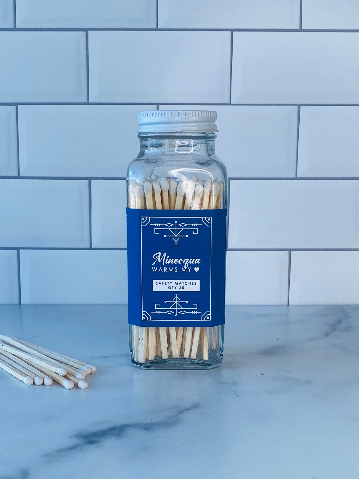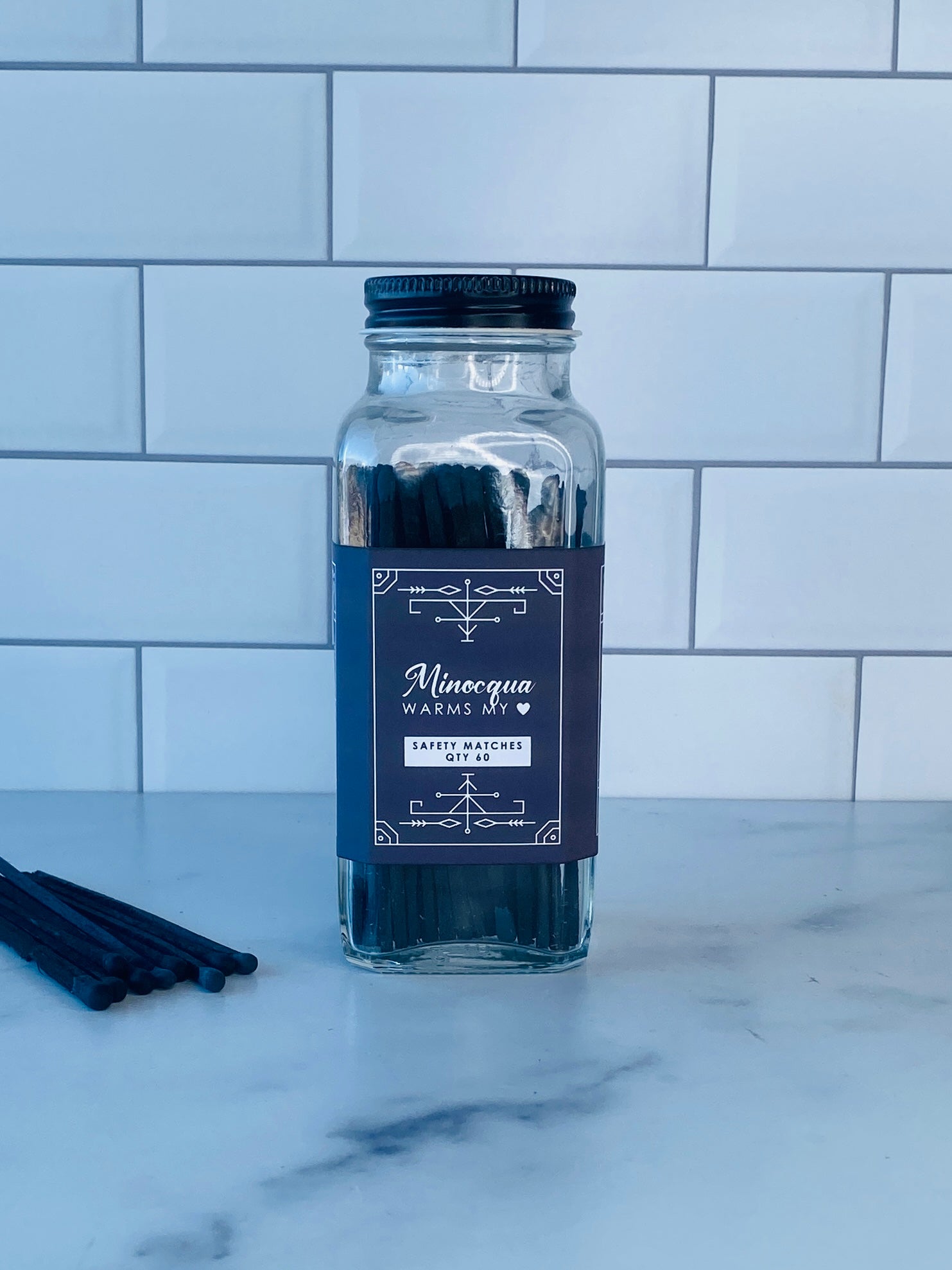 Our stylish safety matches are the perfect gift along side one of our soy coconut wax candles. Each clear jar contains 60 matches with a striker located on the bottom. Be sure to use caution and handle with care. Close the bottle before striking the match. Always keep out of reach of children and pets.