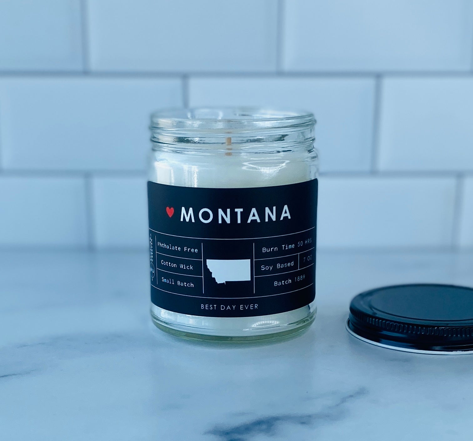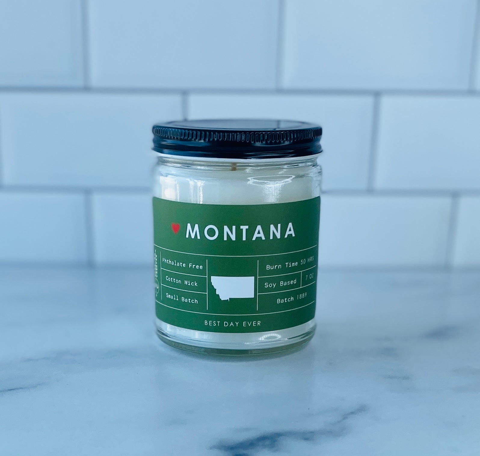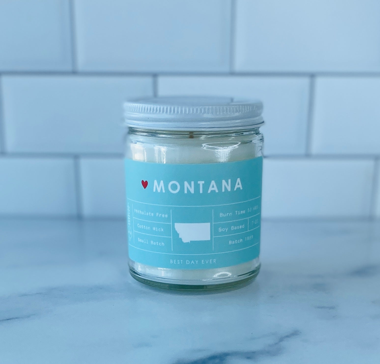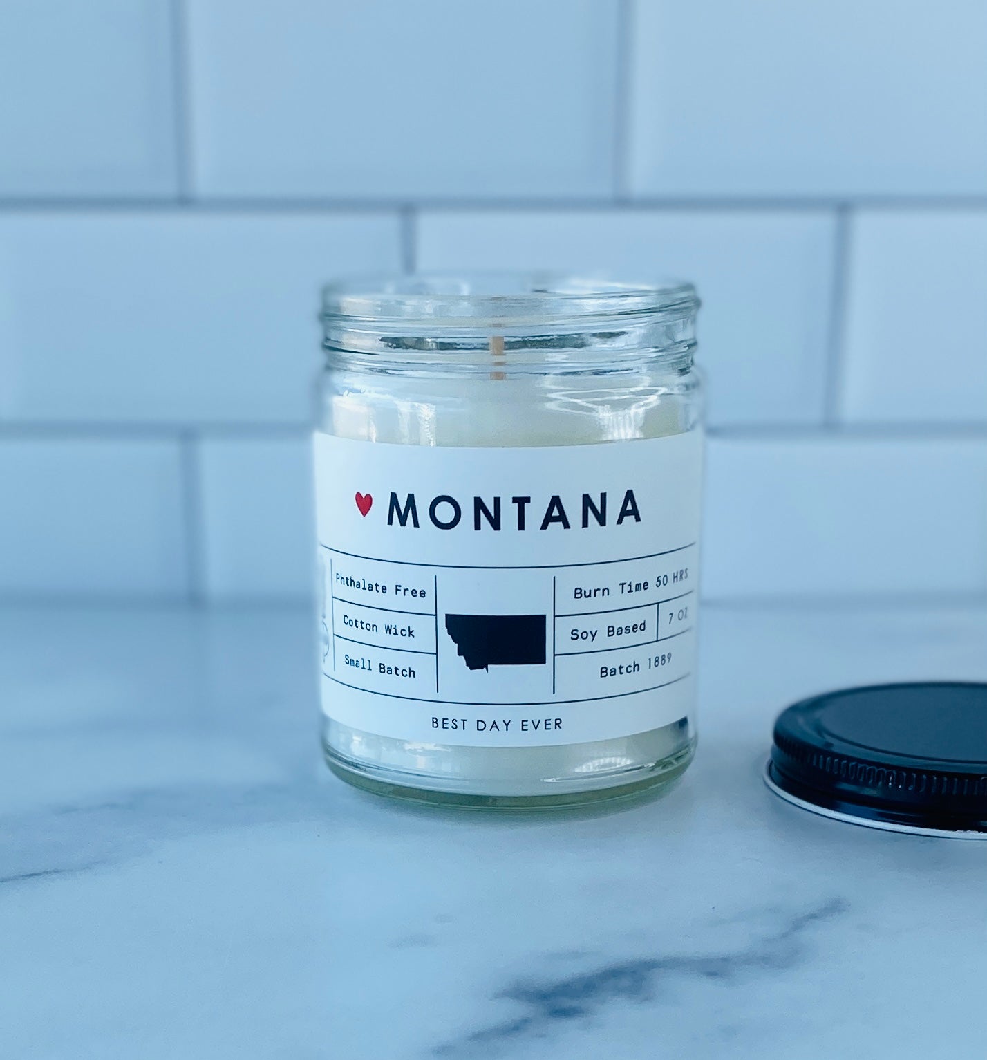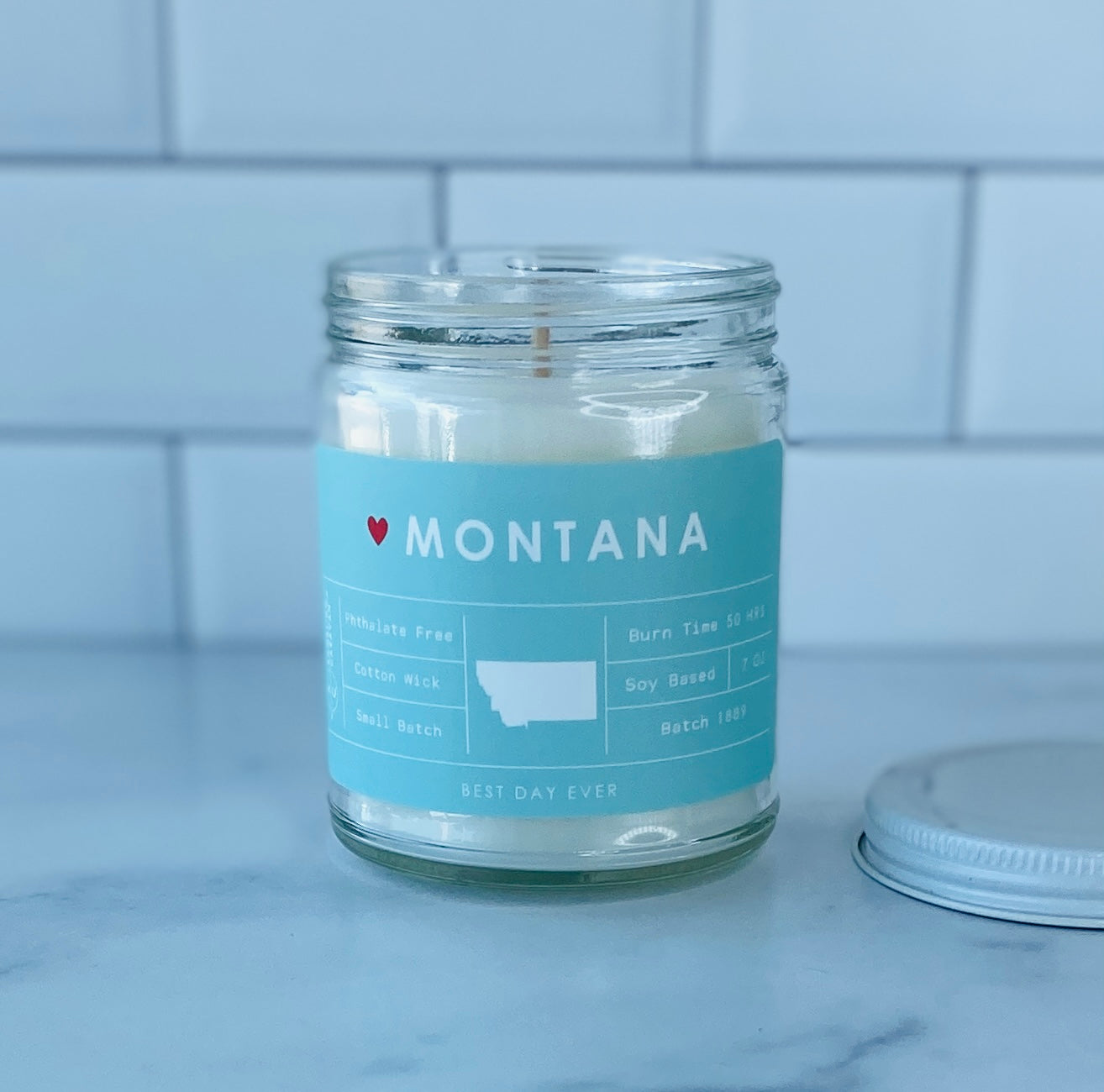 Montana Candle - Rambling Caravan candles are inspired by home, travel and adventure. Made from a soy/coconut based wax blend, the candles are hand poured in Virginia Beach, Virginia. We use phthalate free fragrances and have an assortment of fragrances from which to choose. Many of our candles have different color labels to choose from as well. We use cotton wicks with no zinc or lead. We do not use additives, nor scent enhancers or UV blockers. The burn time is approximately 50 hours.