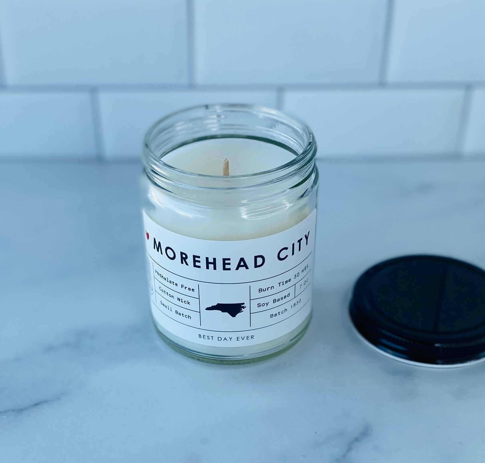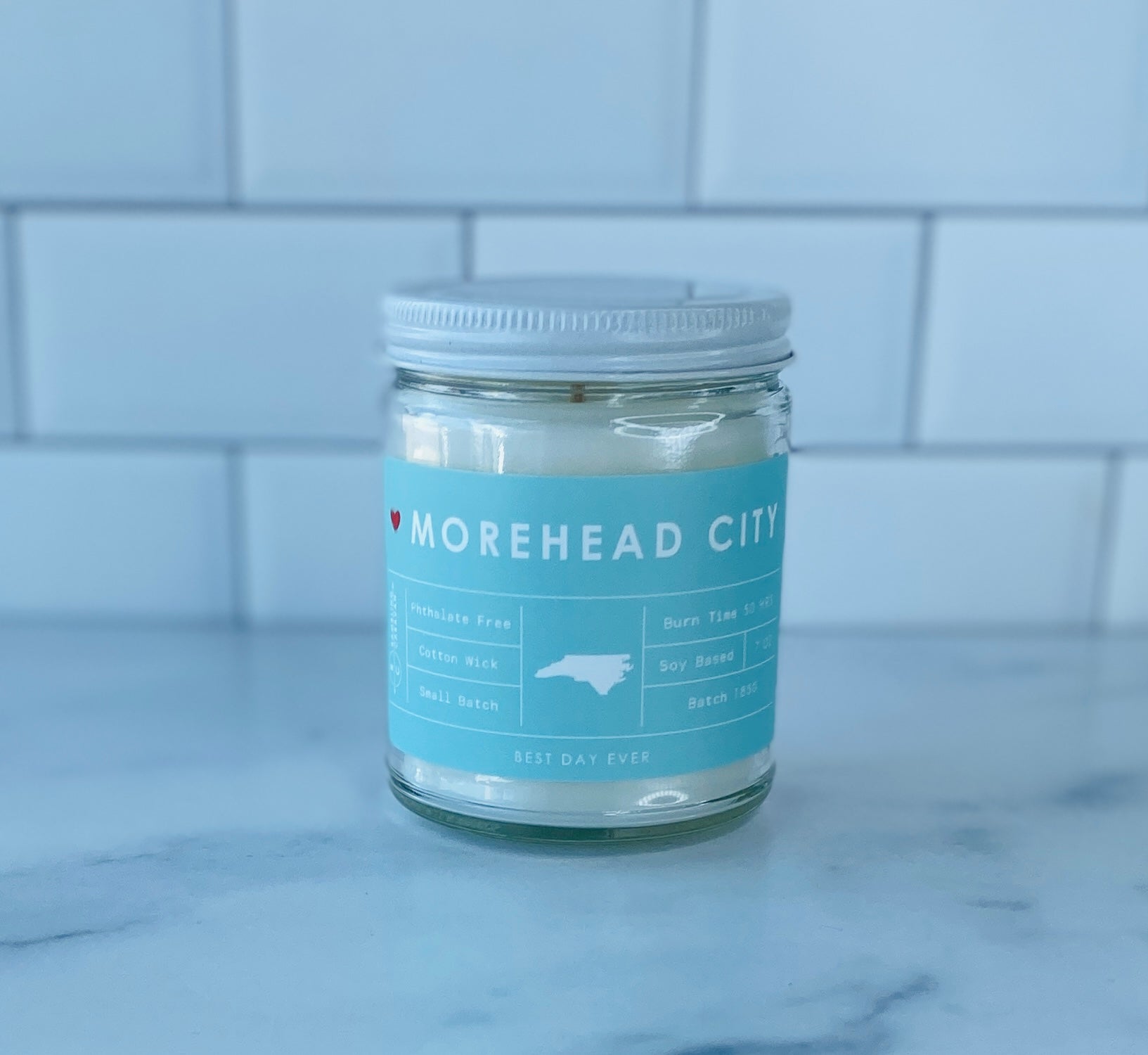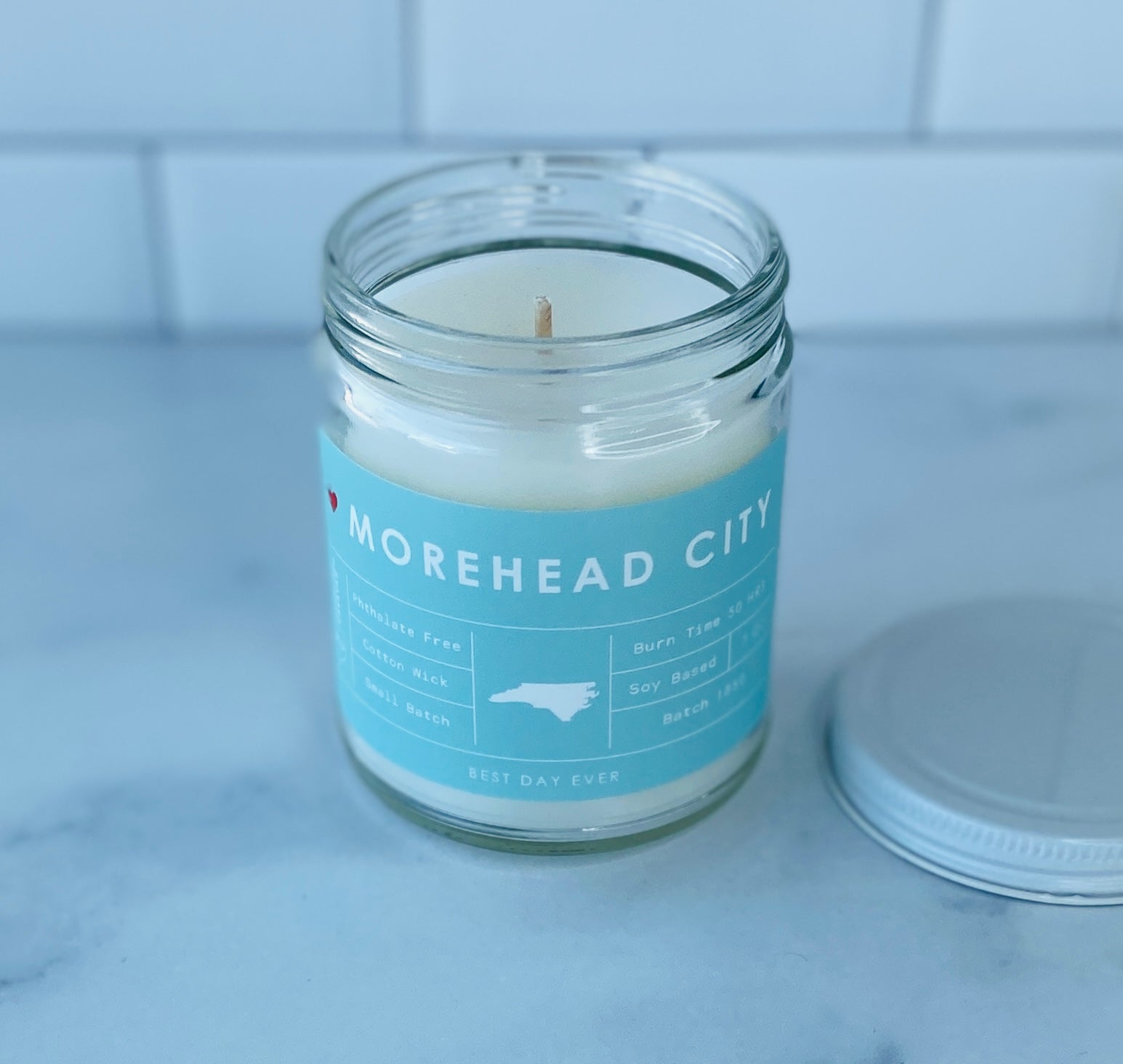 Morehead City, North Carolina Candle - Rambling Caravan candles are inspired by home, travel and adventure. Made from a soy/coconut based wax blend, the candles are hand poured in Virginia Beach, Virginia. We use phthalate free fragrances and have an assortment of fragrances from which to choose. Many of our candles have different color labels to choose from as well. We use cotton wicks with no zinc or lead. We do not use additives, nor scent enhancers or UV blockers. The burn time is approximately 50 hours.
