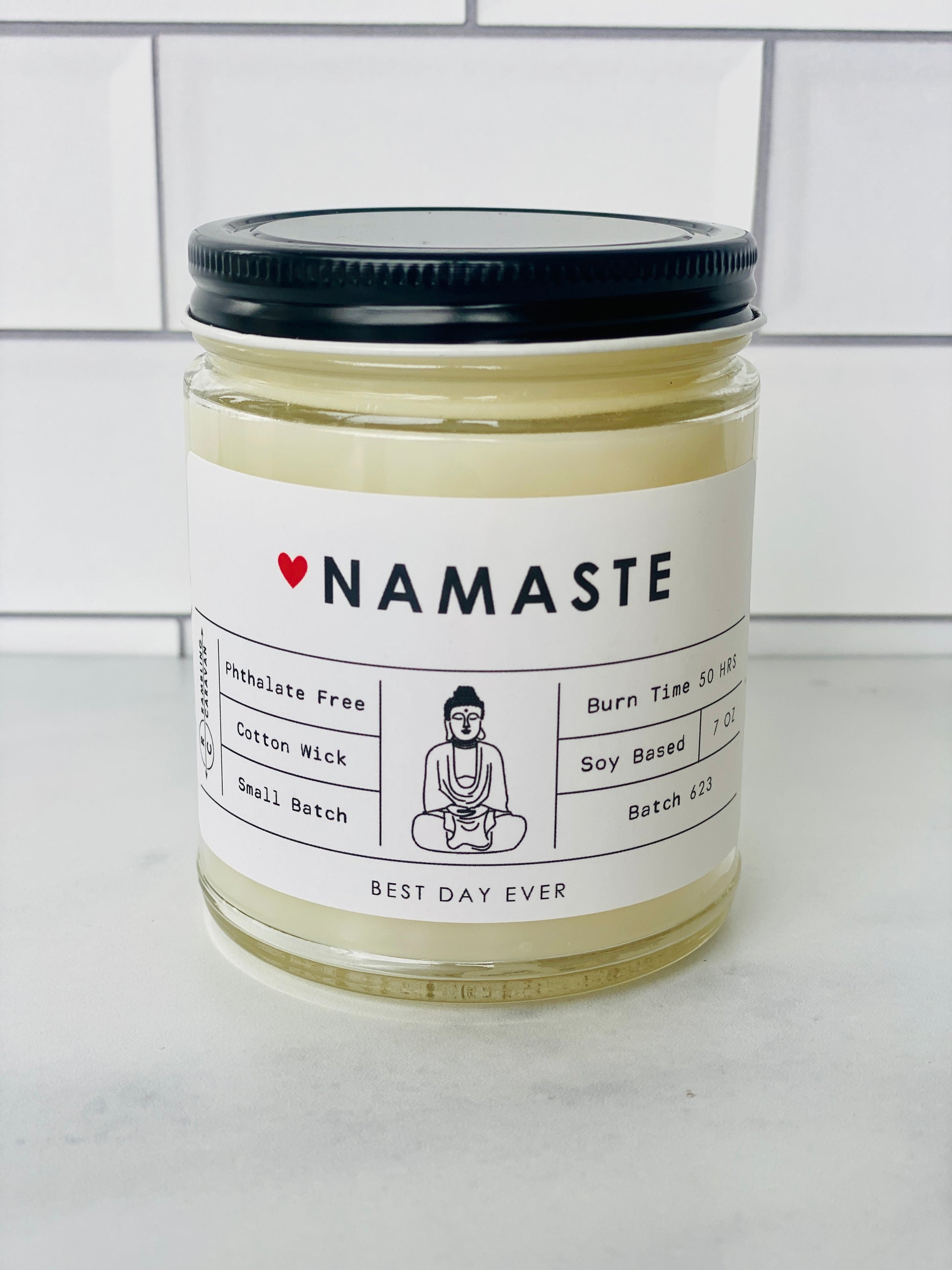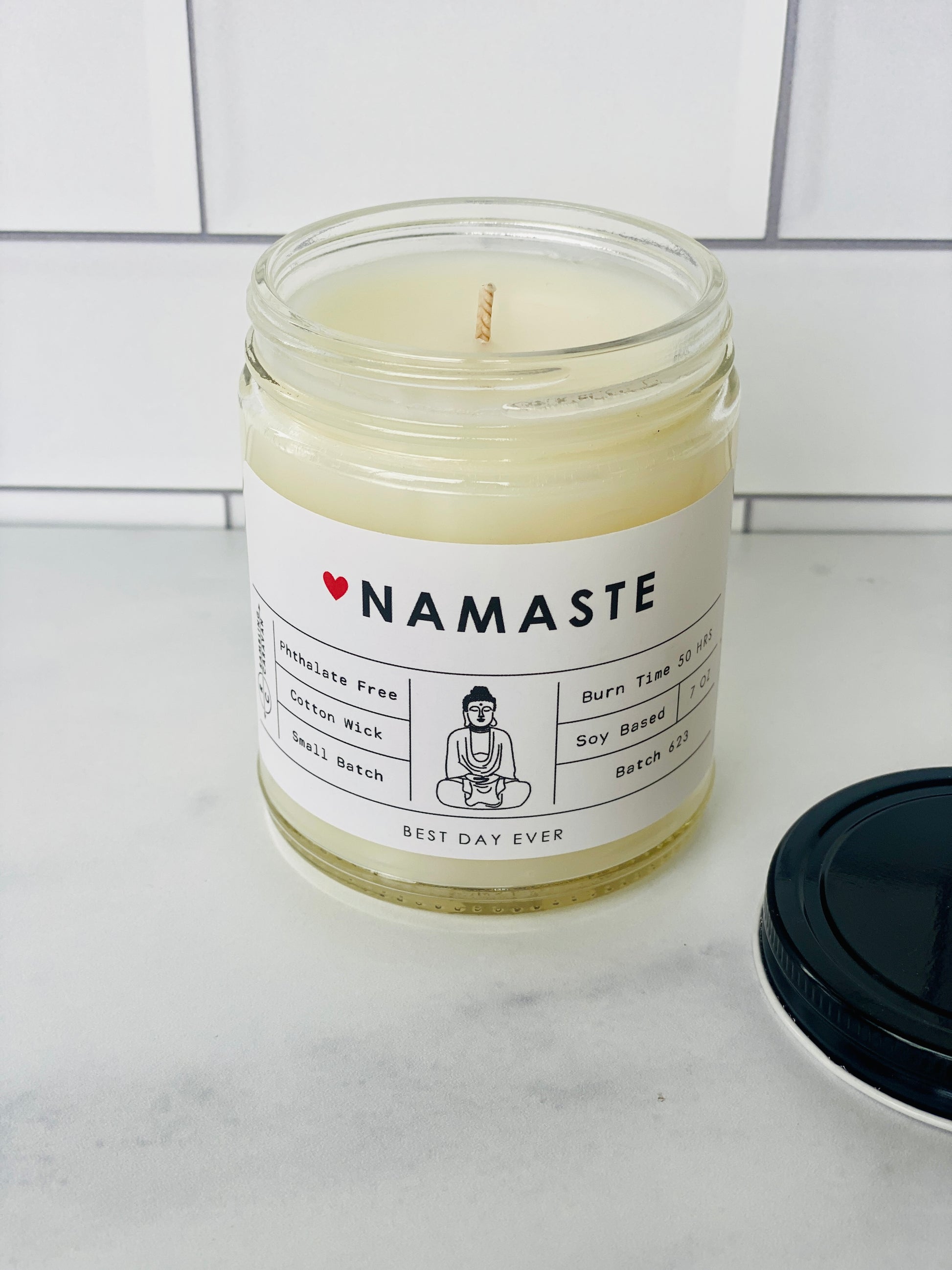 Namaste Candle - Namasté is a salutation of respect and reverence. A traditional Indian greeting, it literally translates to “I bow to you” (namah or namas, meaning bow, te meaning you). - Rambling Caravan candles are inspired by home, travel and adventure. Made from a soy/coconut based wax blend, the candles are hand poured in Virginia Beach, Virginia. We use phthalate free fragrances and have an assortment of fragrances from which to choose. Many of our candles have different color labels to choose from as well. We use cotton wicks with no zinc or lead. We do not use additives, nor scent enhancers or UV blockers. The burn time is approximately 50 hours.
