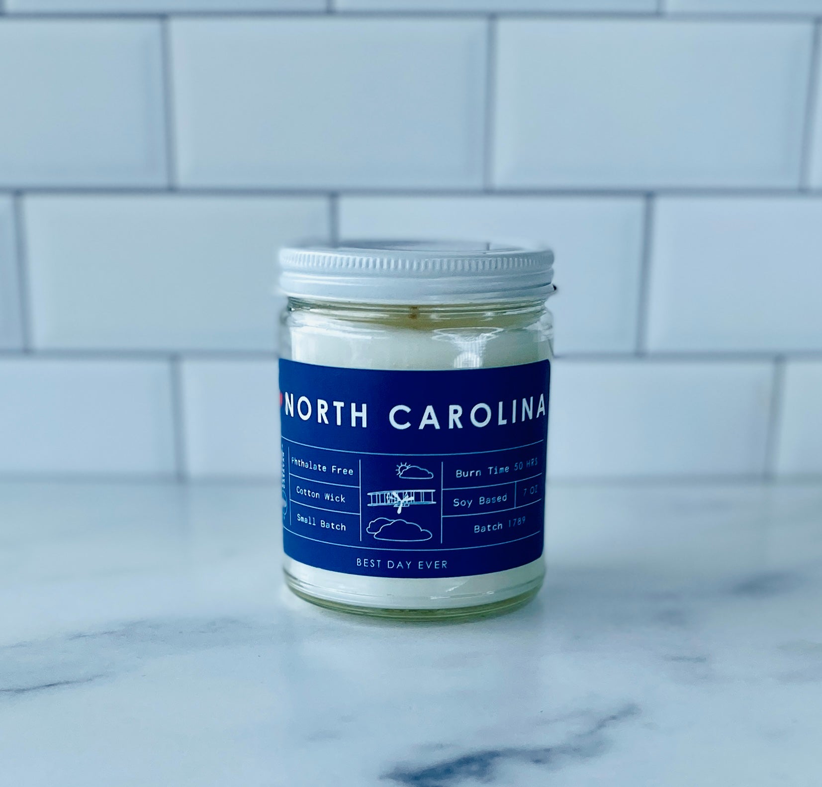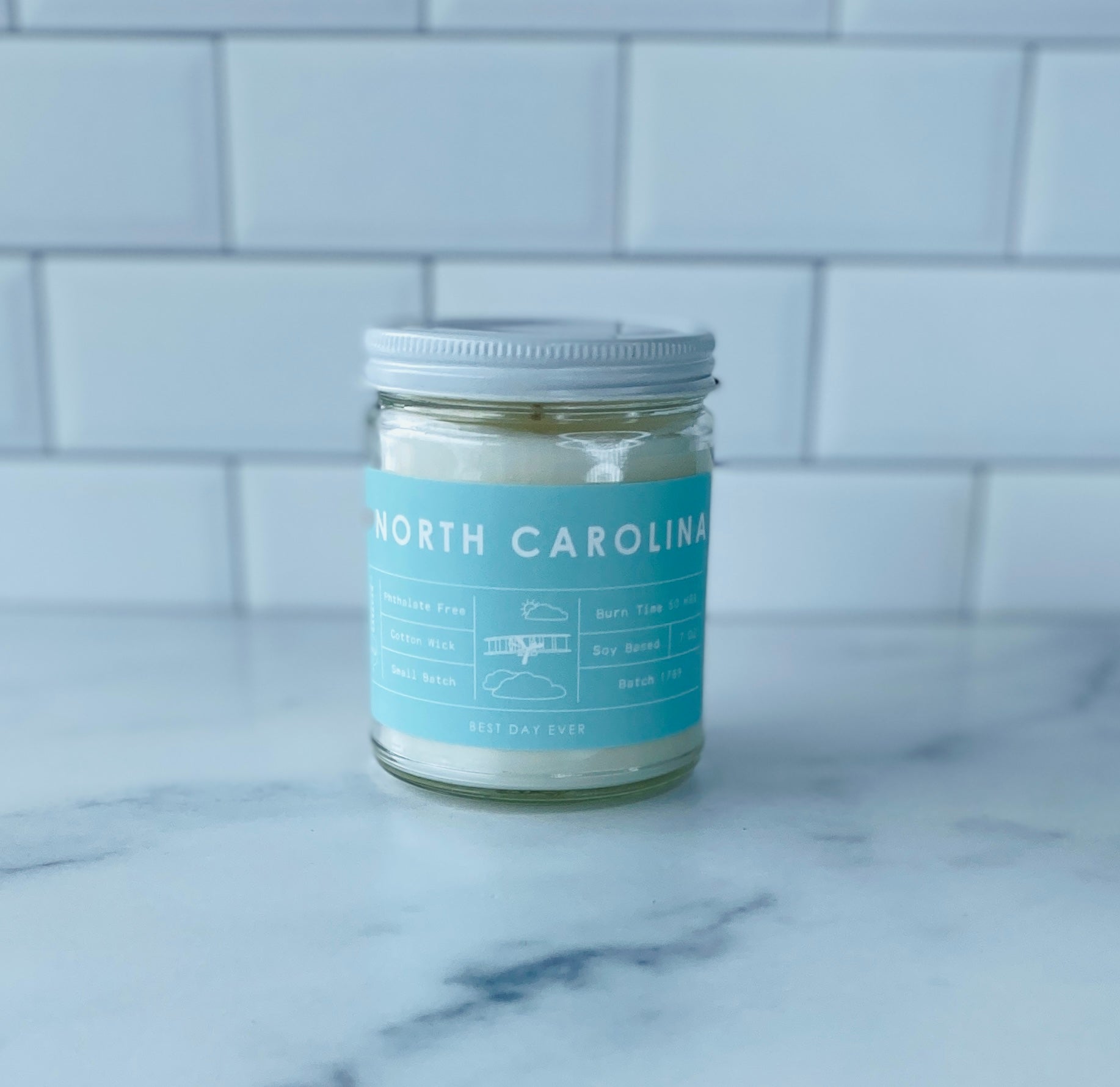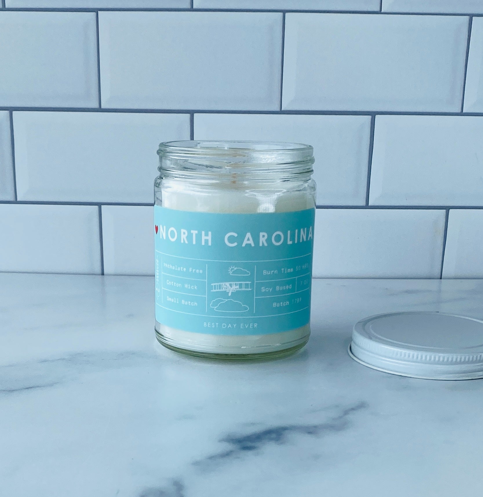 North Carolina Candle - Rambling Caravan candles are inspired by home, travel and adventure. Made from a soy/coconut based wax blend, the candles are hand poured in Virginia Beach, Virginia. We use phthalate free fragrances and have an assortment of fragrances from which to choose. Many of our candles have different color labels to choose from as well. We use cotton wicks with no zinc or lead. We do not use additives, nor scent enhancers or UV blockers. The burn time is approximately 50 hours.