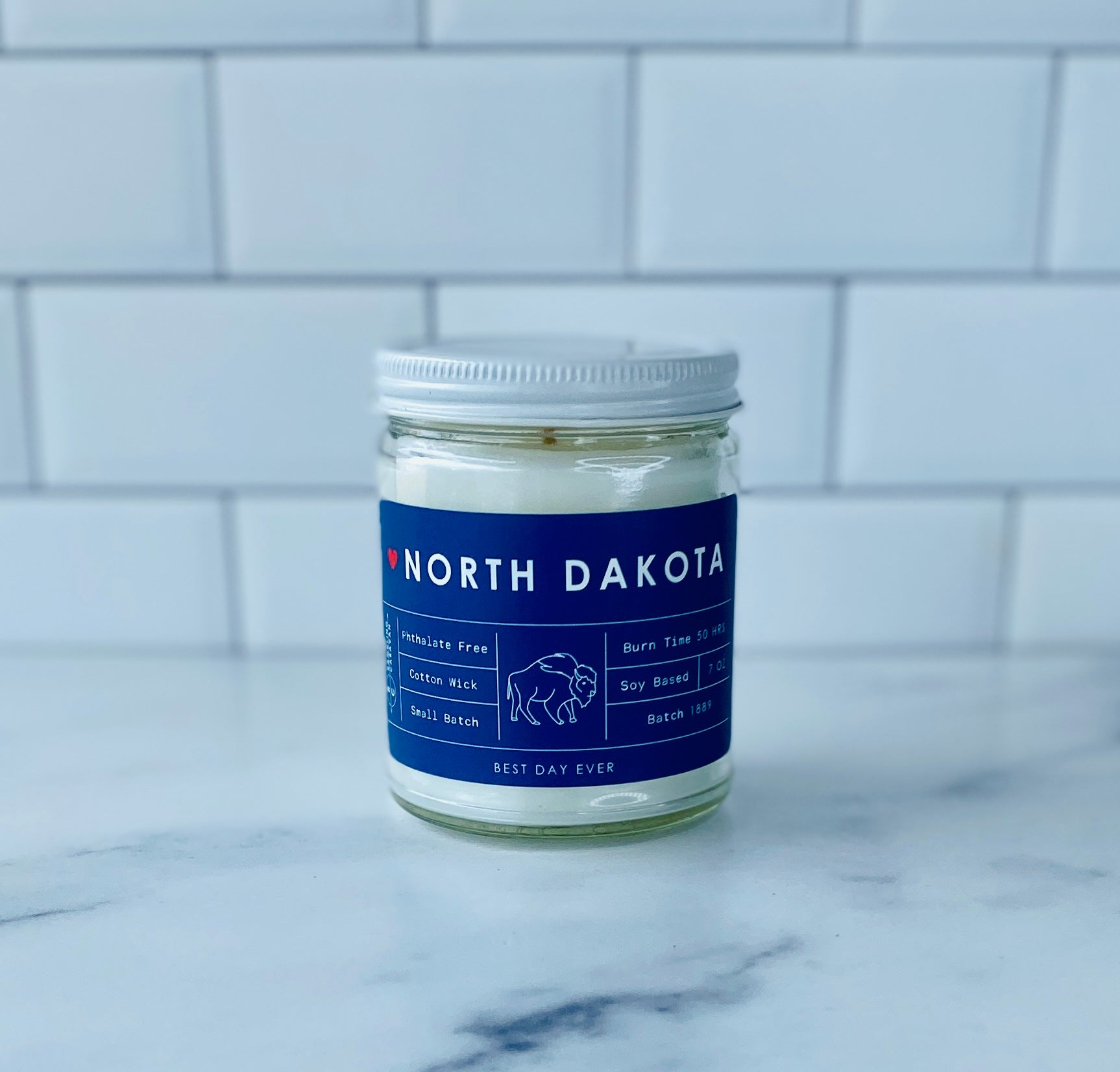 North Dakota Candle - Rambling Caravan candles are inspired by home, travel and adventure. Made from a soy/coconut based wax blend, the candles are hand poured in Virginia Beach, Virginia. We use phthalate free fragrances and have an assortment of fragrances from which to choose. Many of our candles have different color labels to choose from as well. We use cotton wicks with no zinc or lead. We do not use additives, nor scent enhancers or UV blockers. The burn time is approximately 50 hours.