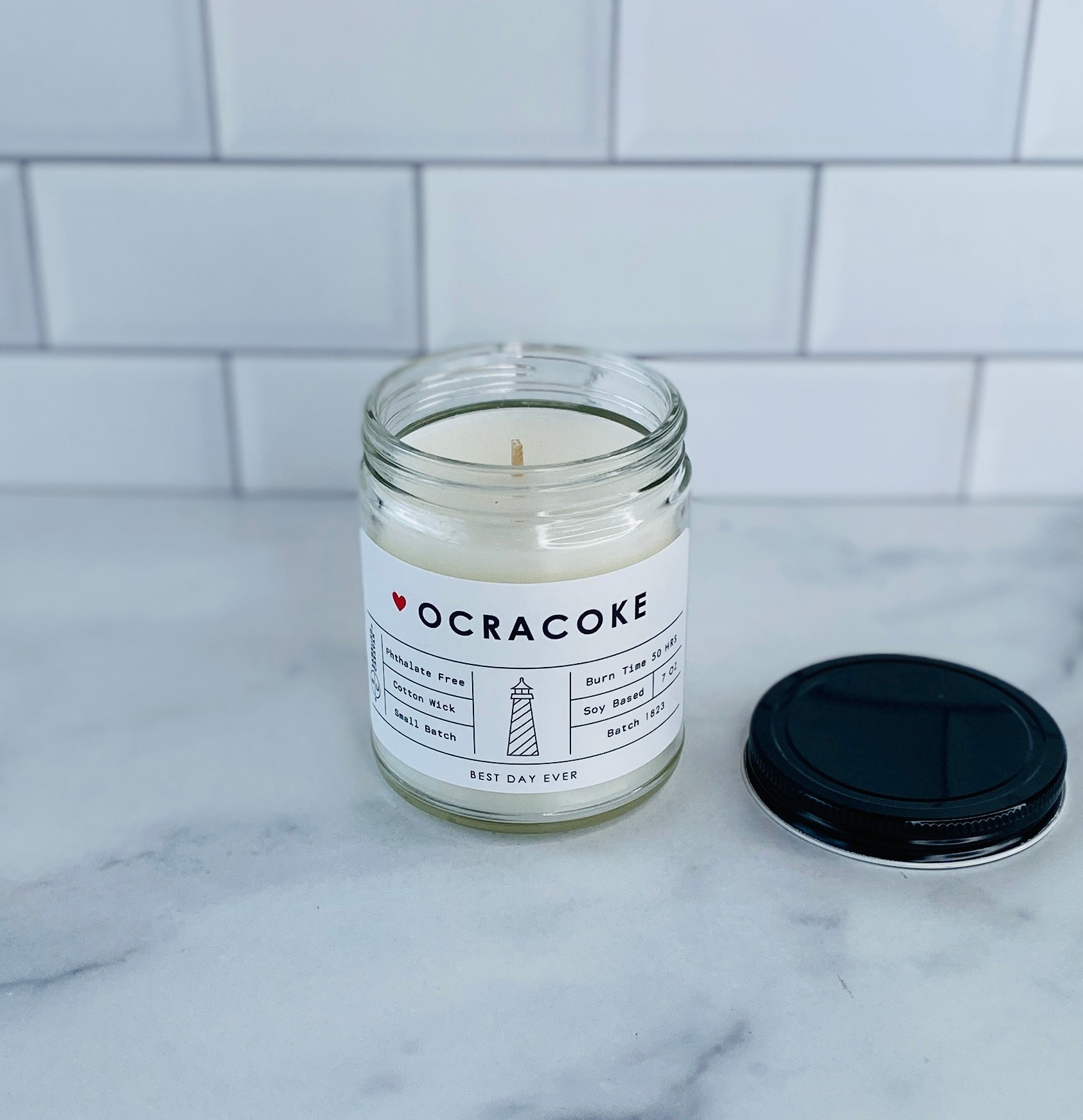 Ocracoke, Outer Banks, North Carolina Candle - Rambling Caravan candles are inspired by home, travel and adventure. Made from a soy/coconut based wax blend, the candles are hand poured in Virginia Beach, Virginia. We use phthalate free fragrances and have an assortment of fragrances from which to choose. Many of our candles have different color labels to choose from as well. We use cotton wicks with no zinc or lead. We do not use additives, nor scent enhancers or UV blockers. The burn time is approximately 50 hours.