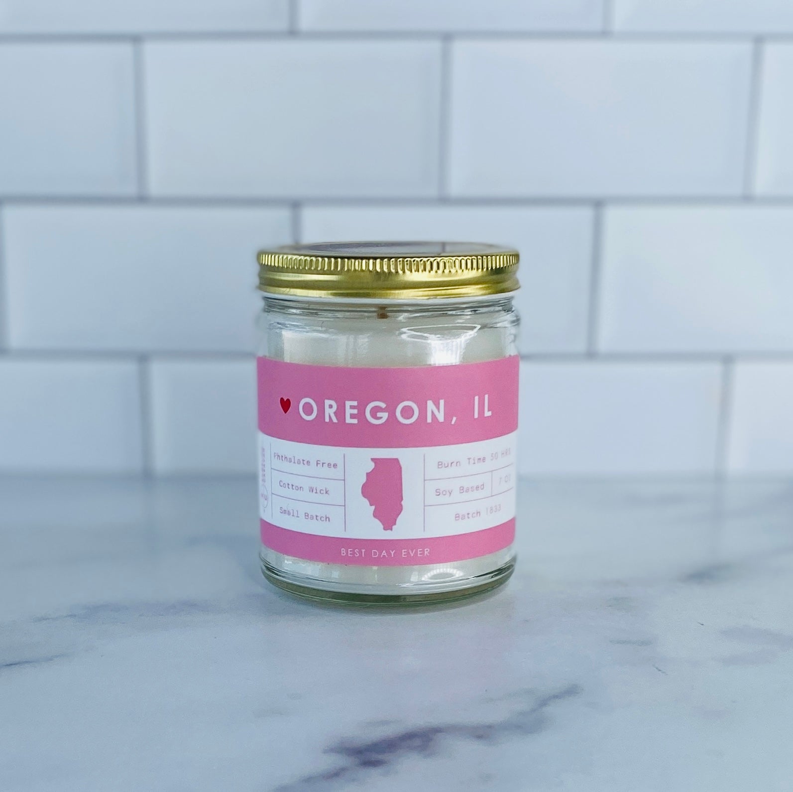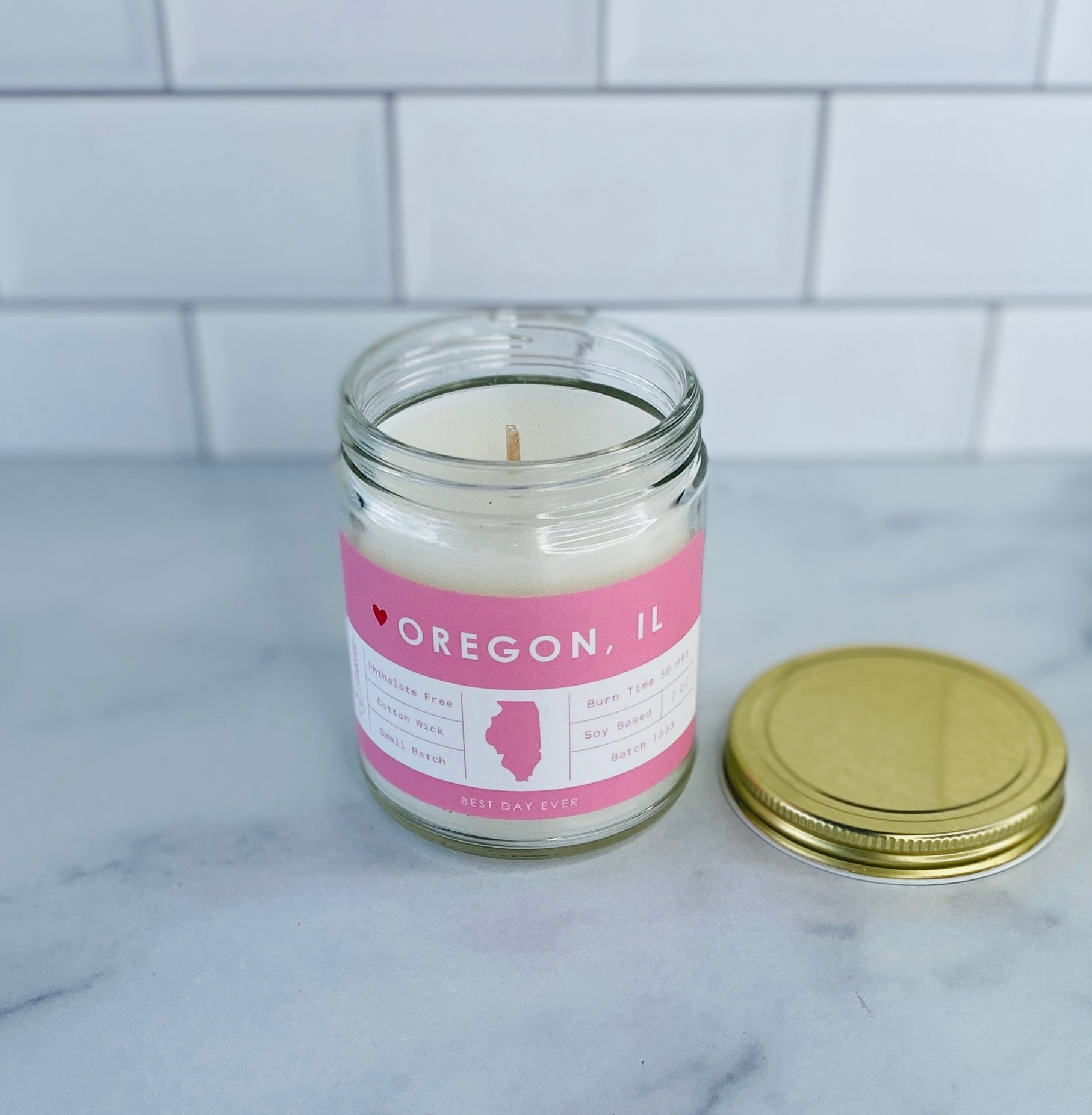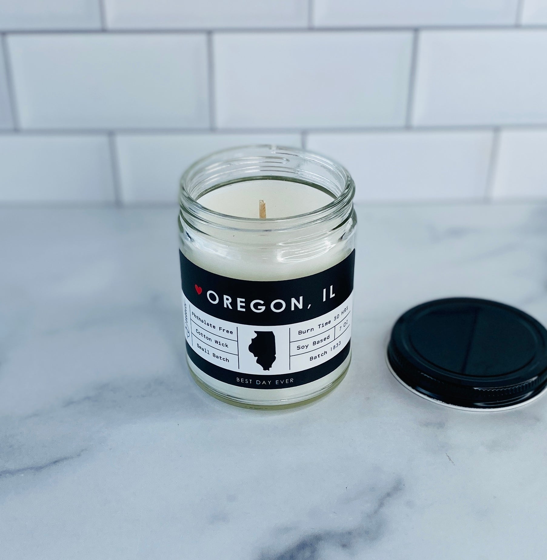 Oregon, Illinois Candle - Rambling Caravan candles are inspired by home, travel and adventure. Made from a soy/coconut based wax blend, the candles are hand poured in Virginia Beach, Virginia. We use phthalate free fragrances and have an assortment of fragrances from which to choose. Many of our candles have different color labels to choose from as well. We use cotton wicks with no zinc or lead. We do not use additives, nor scent enhancers or UV blockers. The burn time is approximately 50 hours.