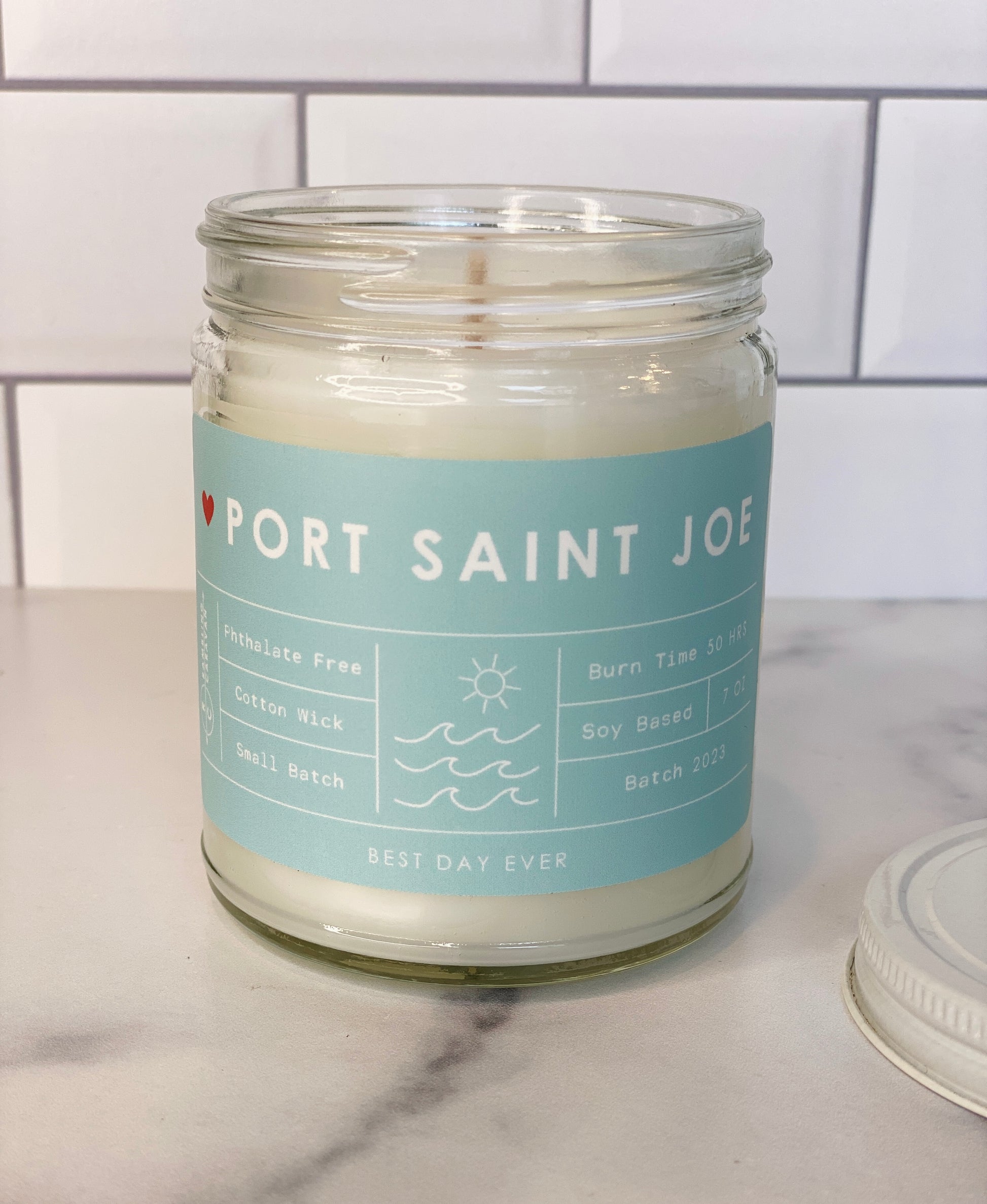 Port Saint Joe, Florida Candle - Rambling Caravan candles are inspired by home, travel and adventure. Made from a soy/coconut based wax blend, the candles are hand poured in Virginia Beach, Virginia. We use phthalate free fragrances and have an assortment of fragrances from which to choose. Many of our candles have different color labels to choose from as well. We use cotton wicks with no zinc or lead. We do not use additives, nor scent enhancers or UV blockers. The burn time is approximately 50 hours.