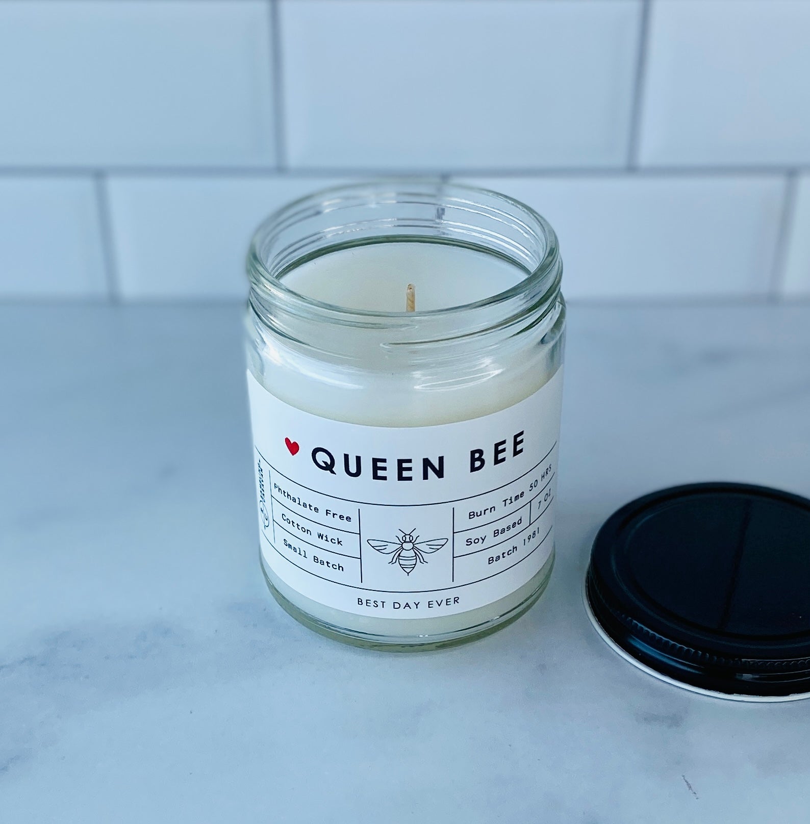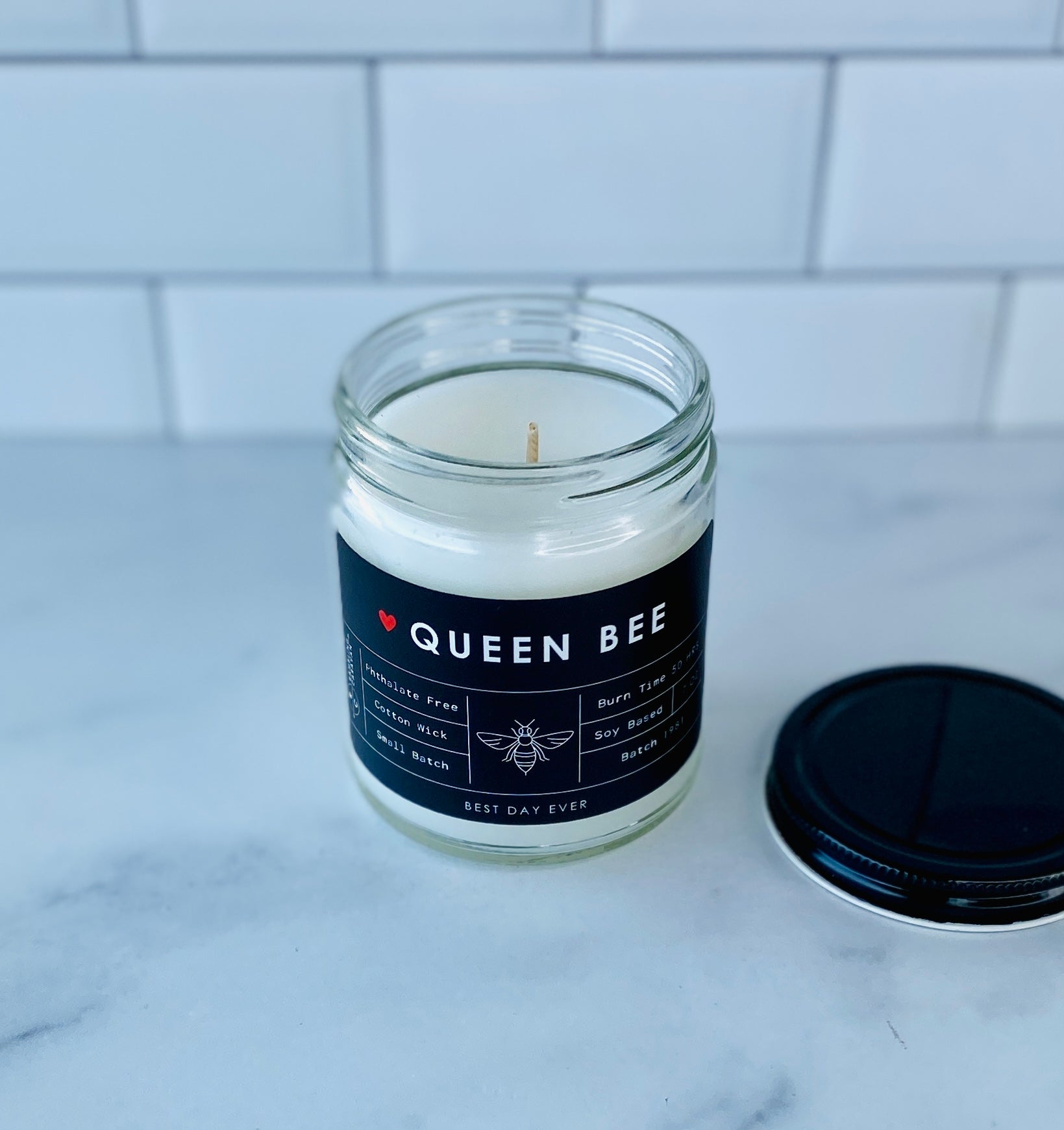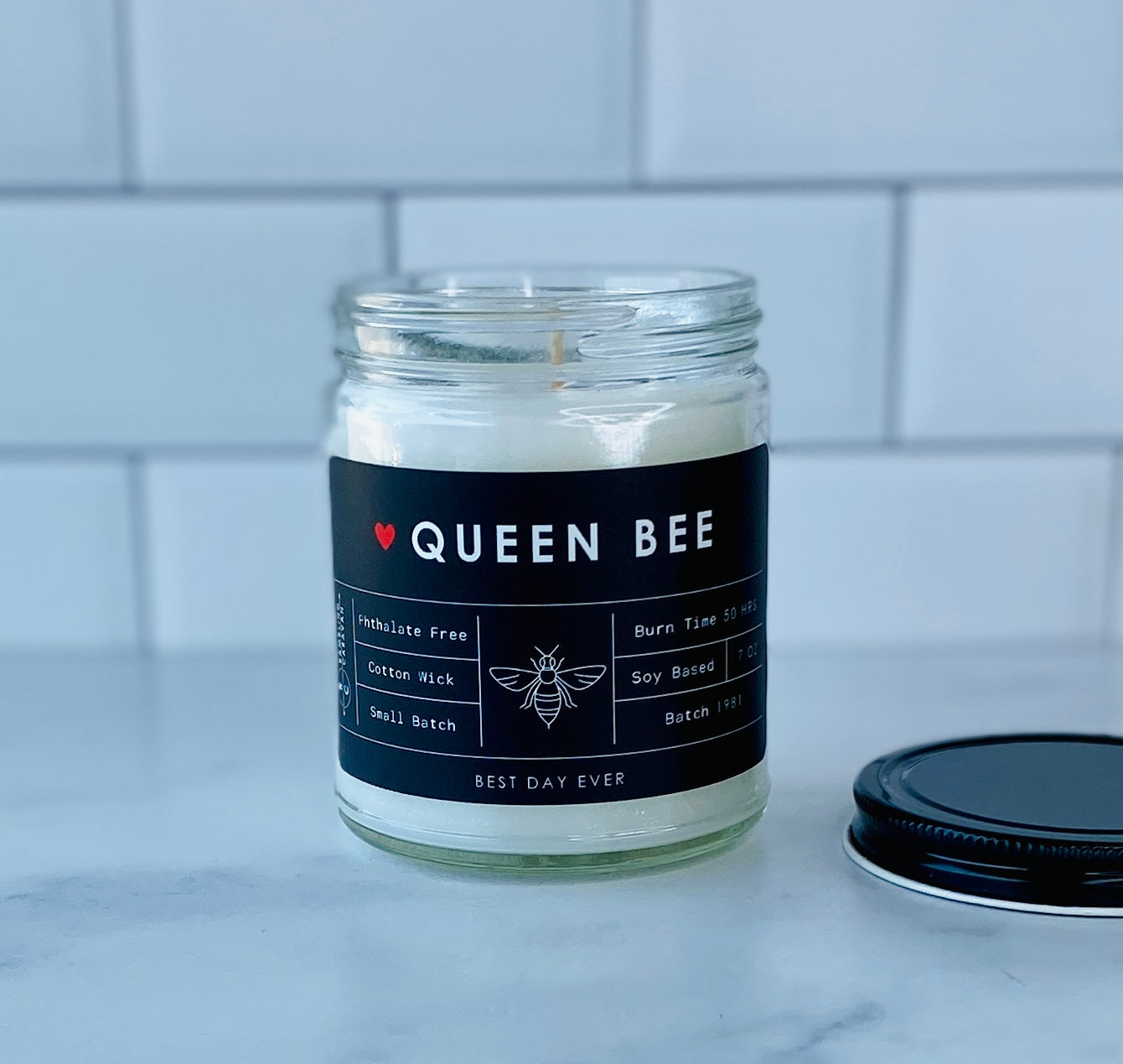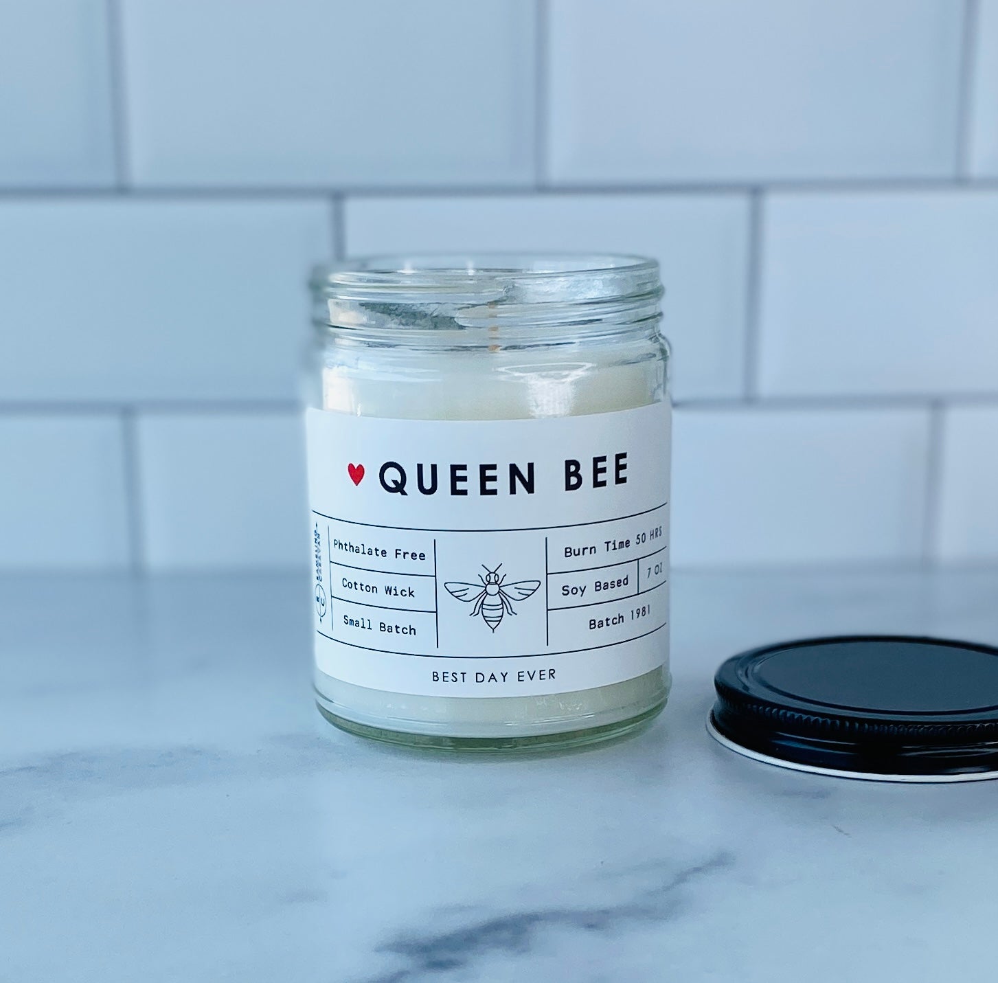 Queen Bee Candle - Rambling Caravan candles are inspired by home, travel and adventure. Made from a soy/coconut based wax blend, the candles are hand poured in Virginia Beach, Virginia. We use phthalate free fragrances and have an assortment of fragrances from which to choose. Many of our candles have different color labels to choose from as well. We use cotton wicks with no zinc or lead. We do not use additives, nor scent enhancers or UV blockers. The burn time is approximately 50 hours.