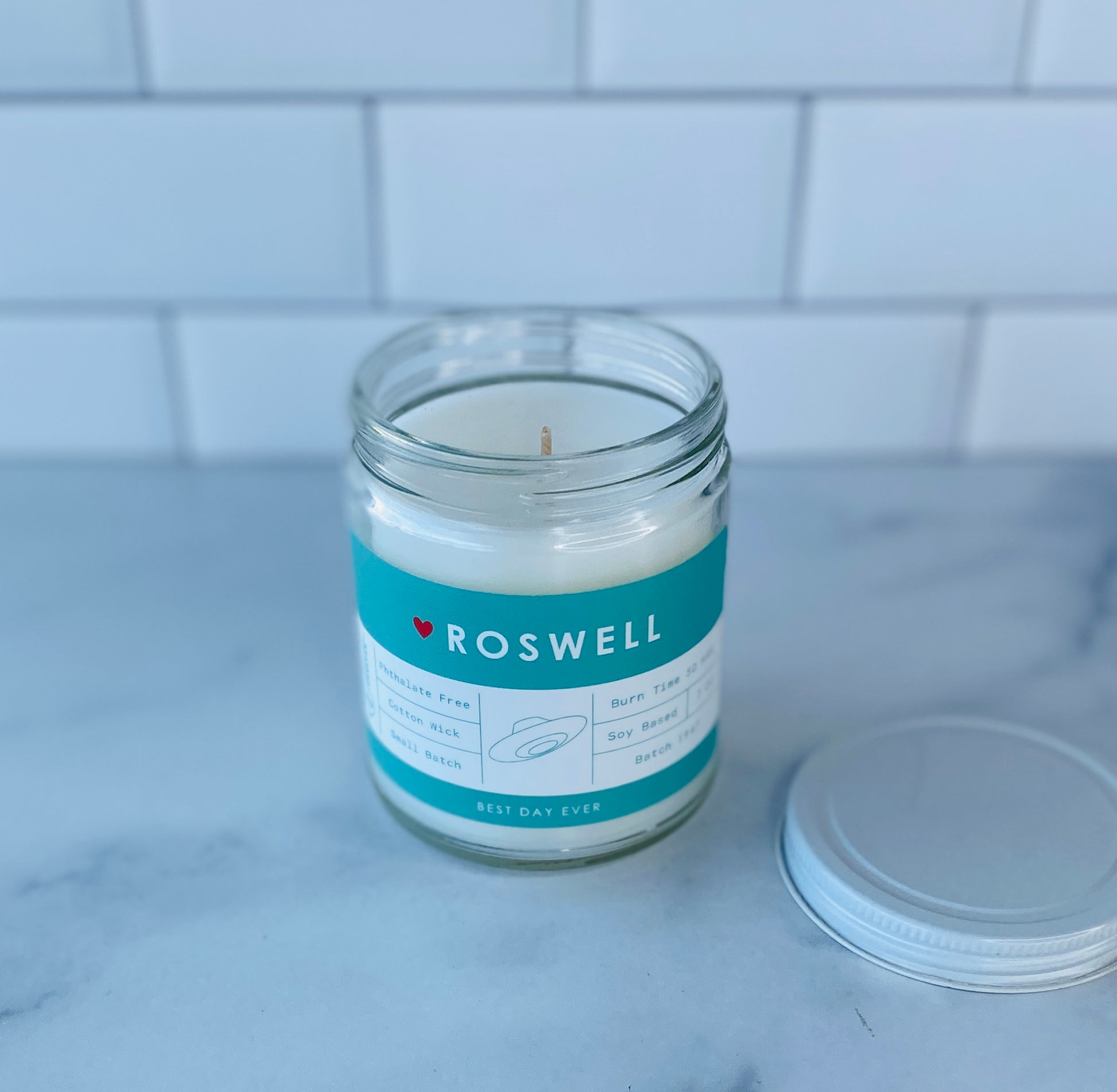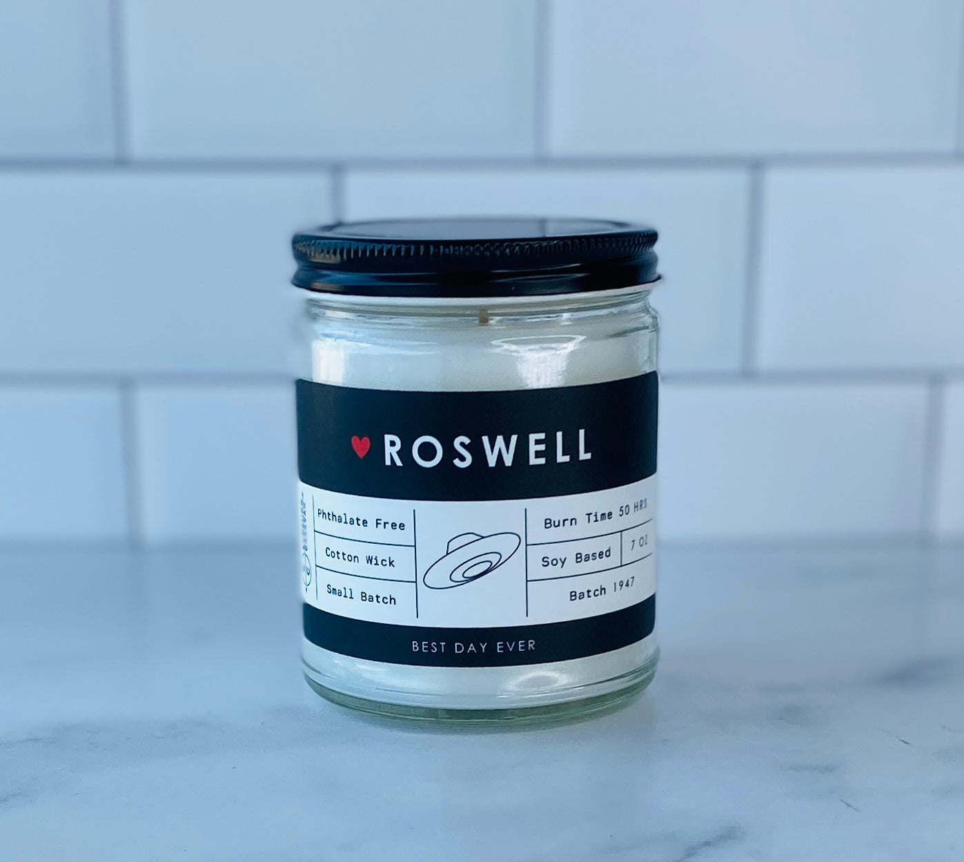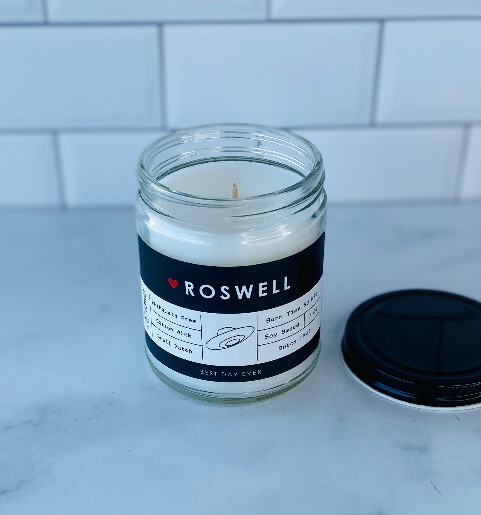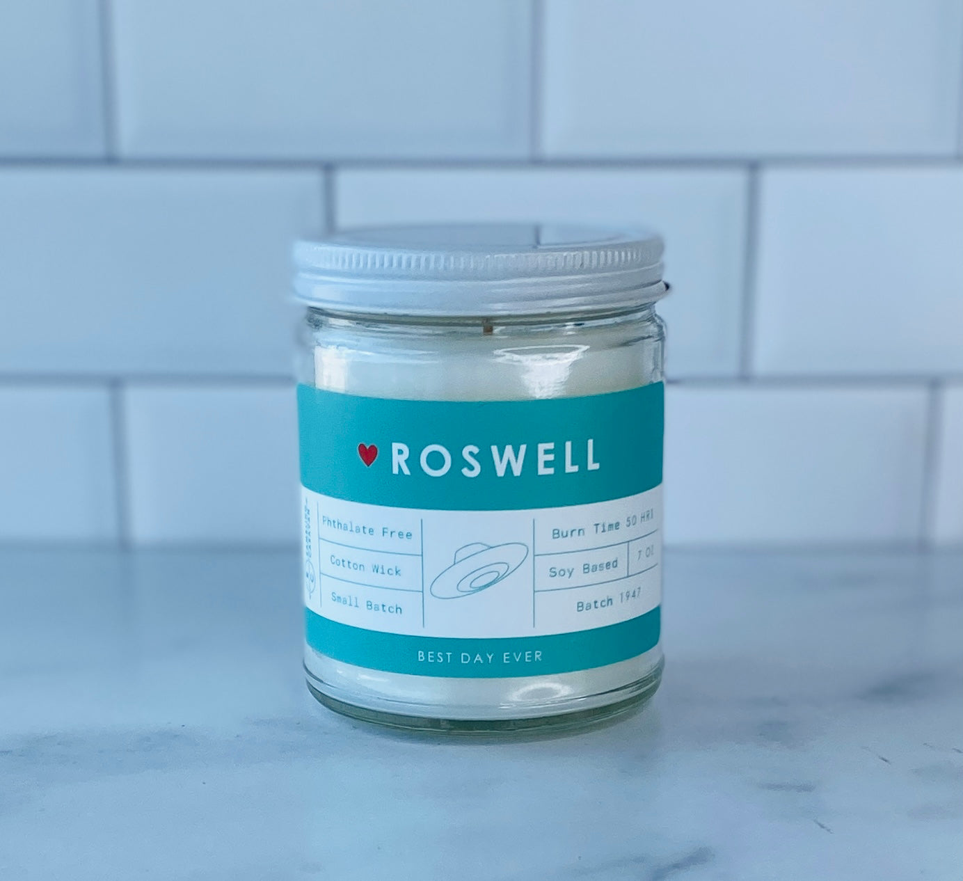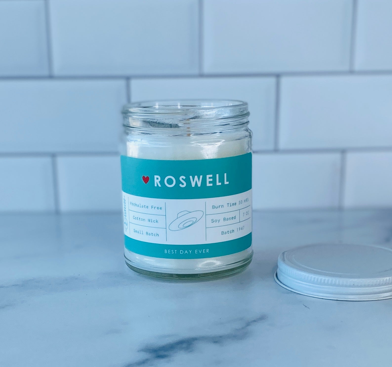 Roswell, New Mexico Candle - Rambling Caravan candles are inspired by home, travel and adventure. Made from a soy/coconut based wax blend, the candles are hand poured in Virginia Beach, Virginia. We use phthalate free fragrances and have an assortment of fragrances from which to choose. Many of our candles have different color labels to choose from as well. We use cotton wicks with no zinc or lead. We do not use additives, nor scent enhancers or UV blockers. The burn time is approximately 50 hours.
